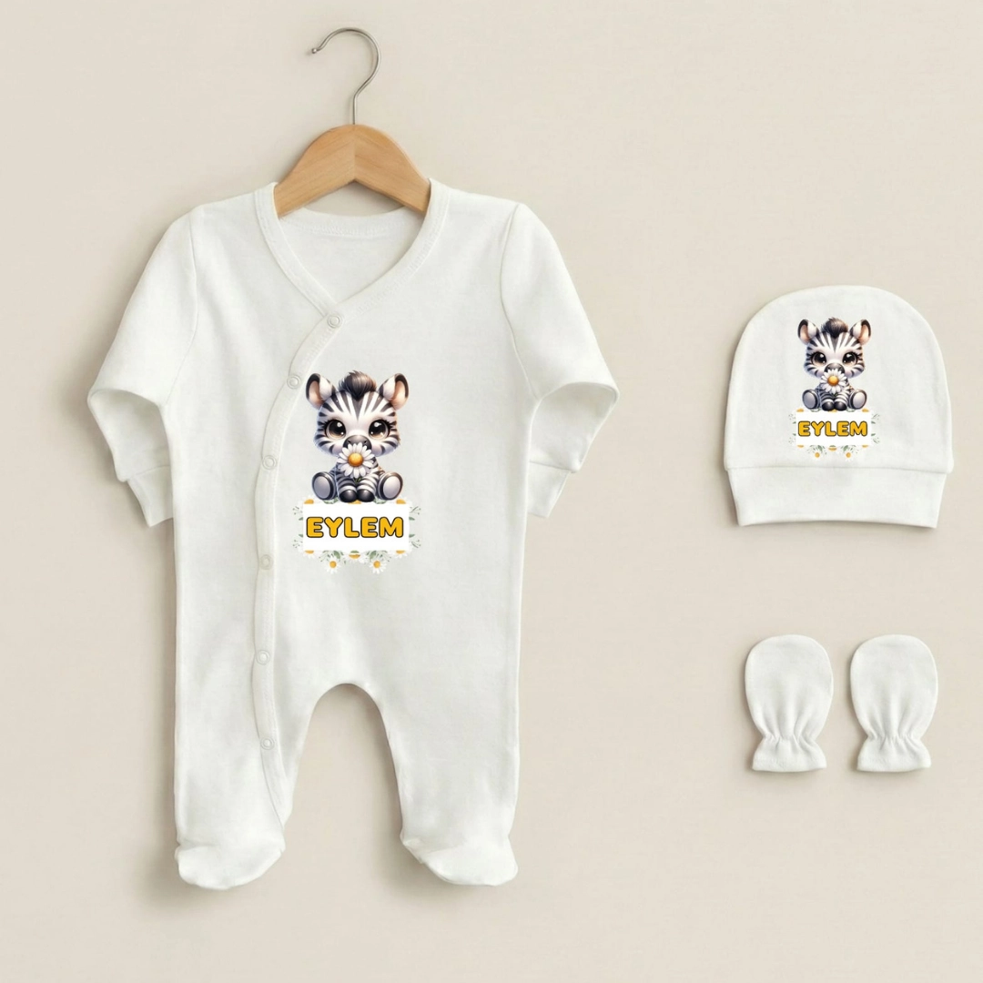 3’lü İsimli Tulum Seti – %100 Pamuk, Yenidoğan İçin Özel Tasarım