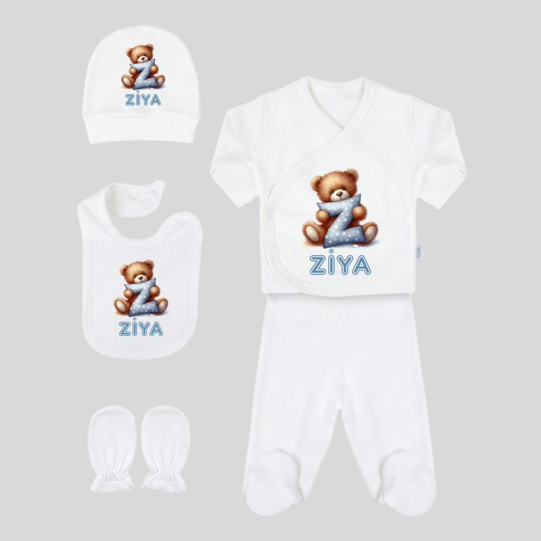 5’li Hastane Çıkış Seti Sevimli Ayıcık ve Harf Yastık Baskılı