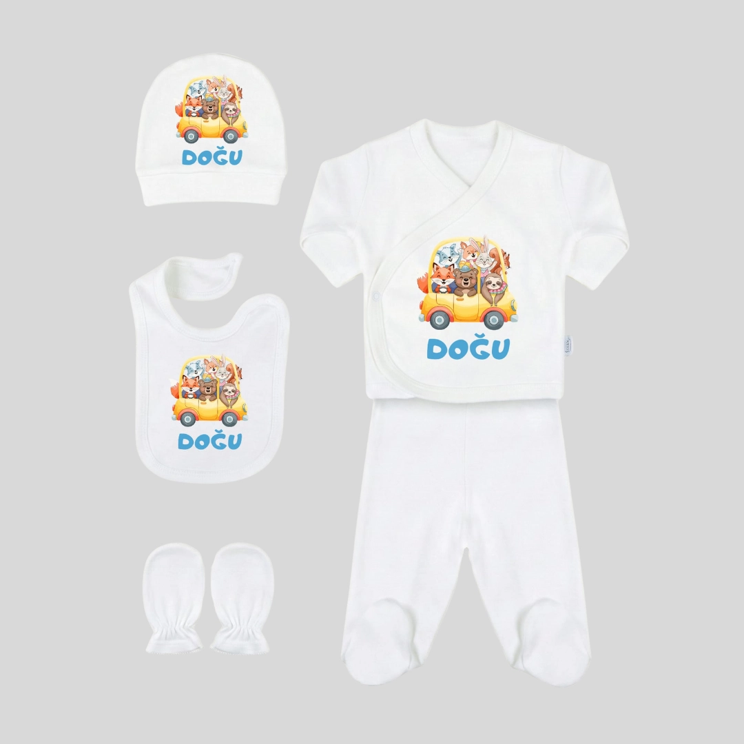 5’li Hastane Çıkış Seti Sevimli Hayvanlar Araba Desenli