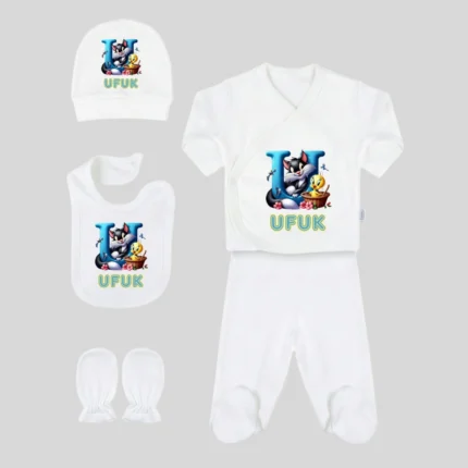 5’li İsimli Hastane Çıkış Seti – %100 Pamuk, Yenidoğan İçin Özel Tasarım