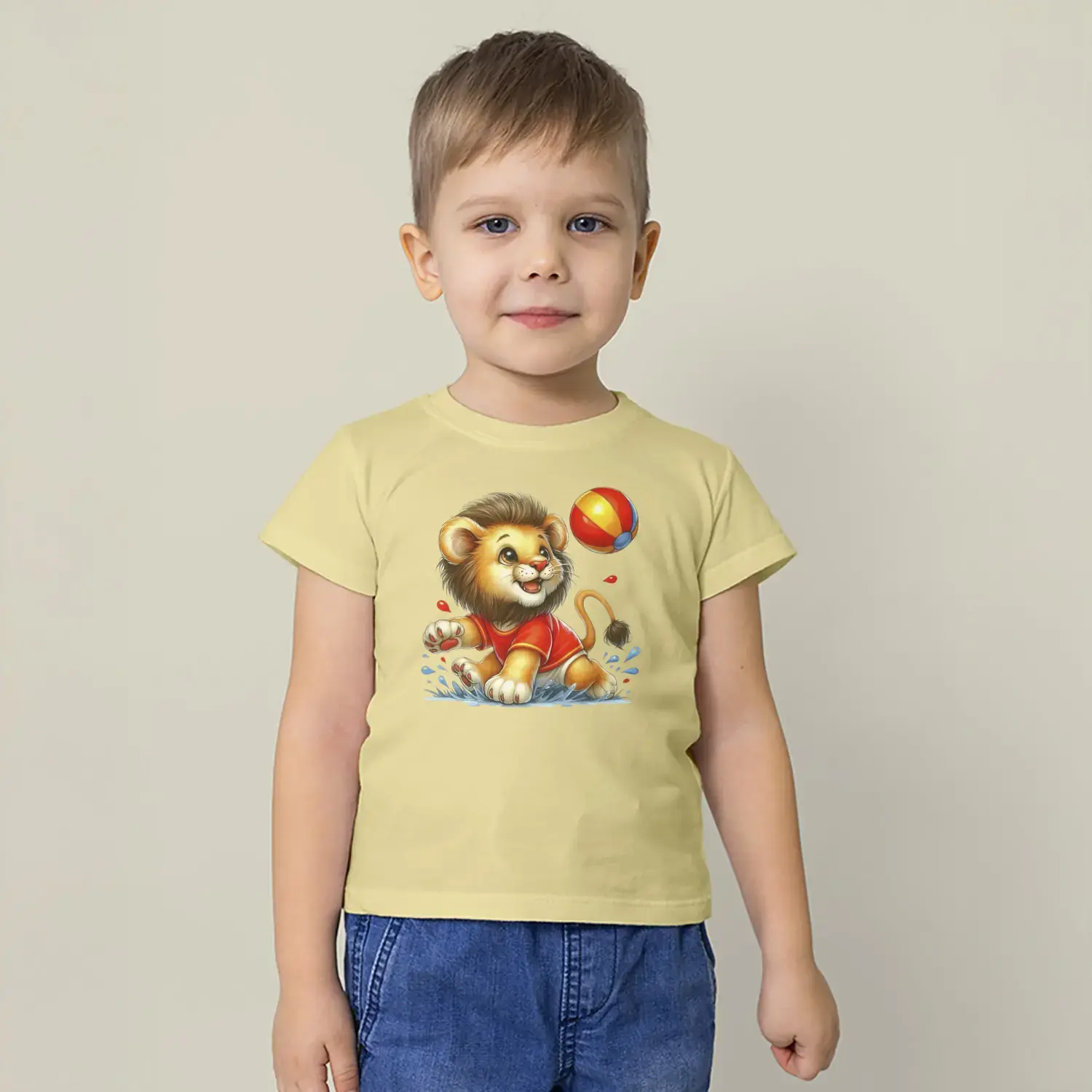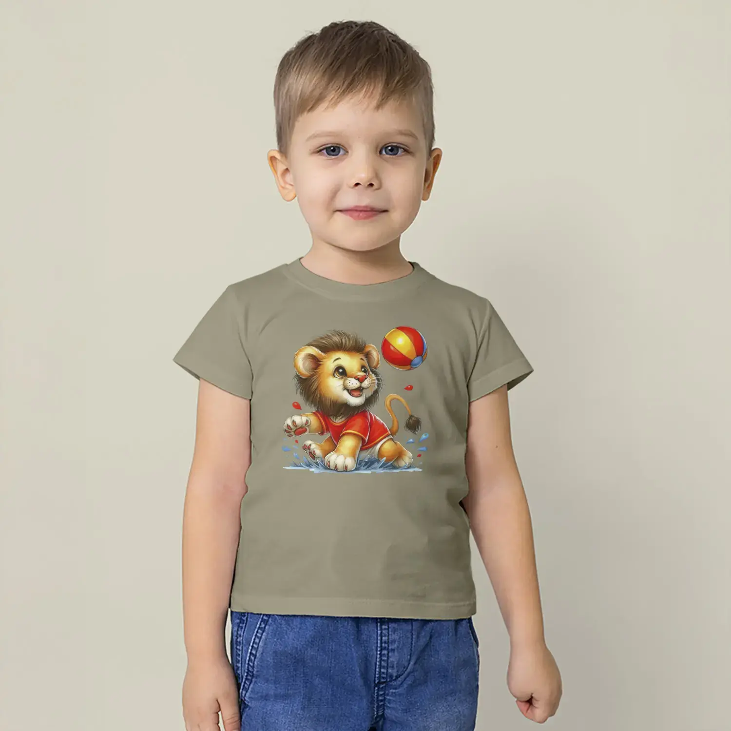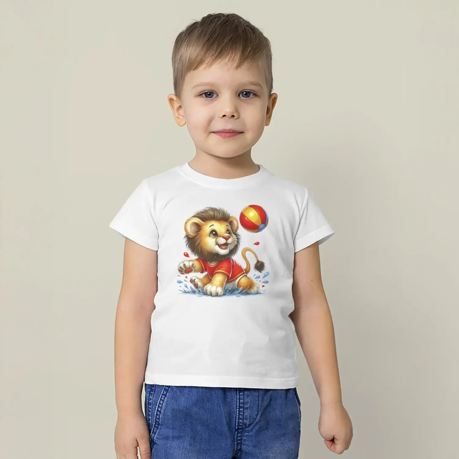 Aslan Yavrusu Topla Oynuyor Baskılı Erkek Çocuk Tişört