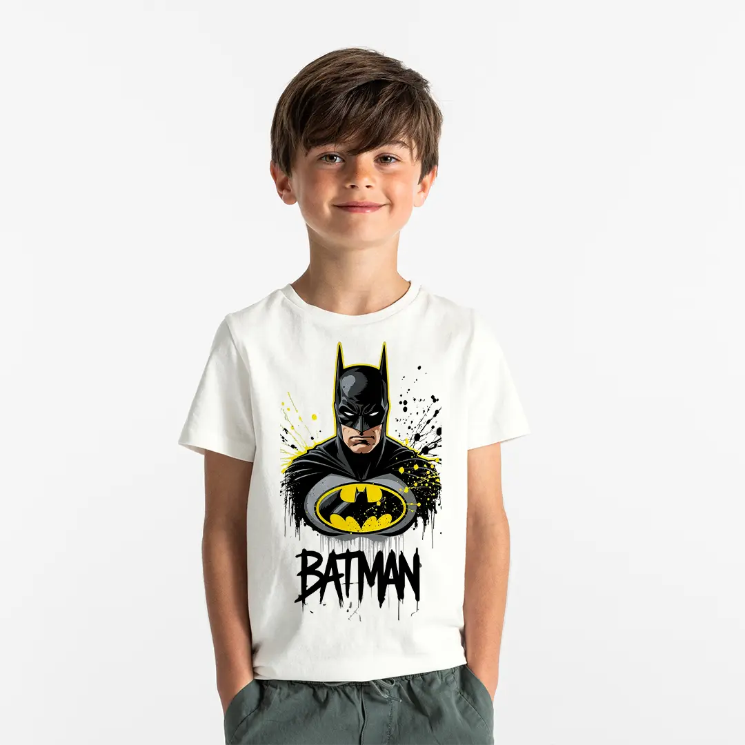 Batman Grafiti Baskılı Çocuk Tişörtü – DC Süper Kahraman Desenli Erkek Çocuk T-Shirt