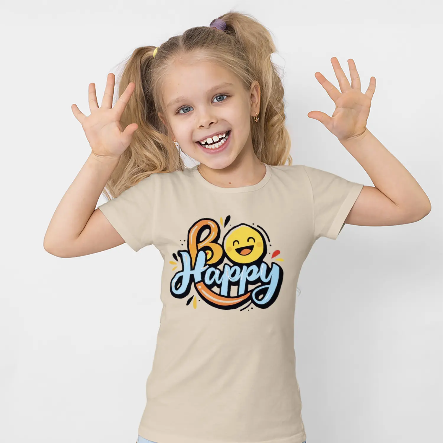 Be Happy Yazılı Gülen Emoji Figürlü Baskılı Kız Çocuk Tişörtü