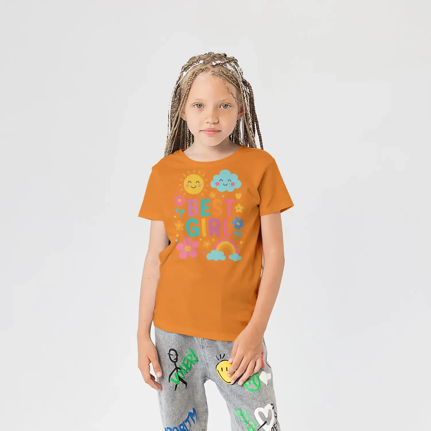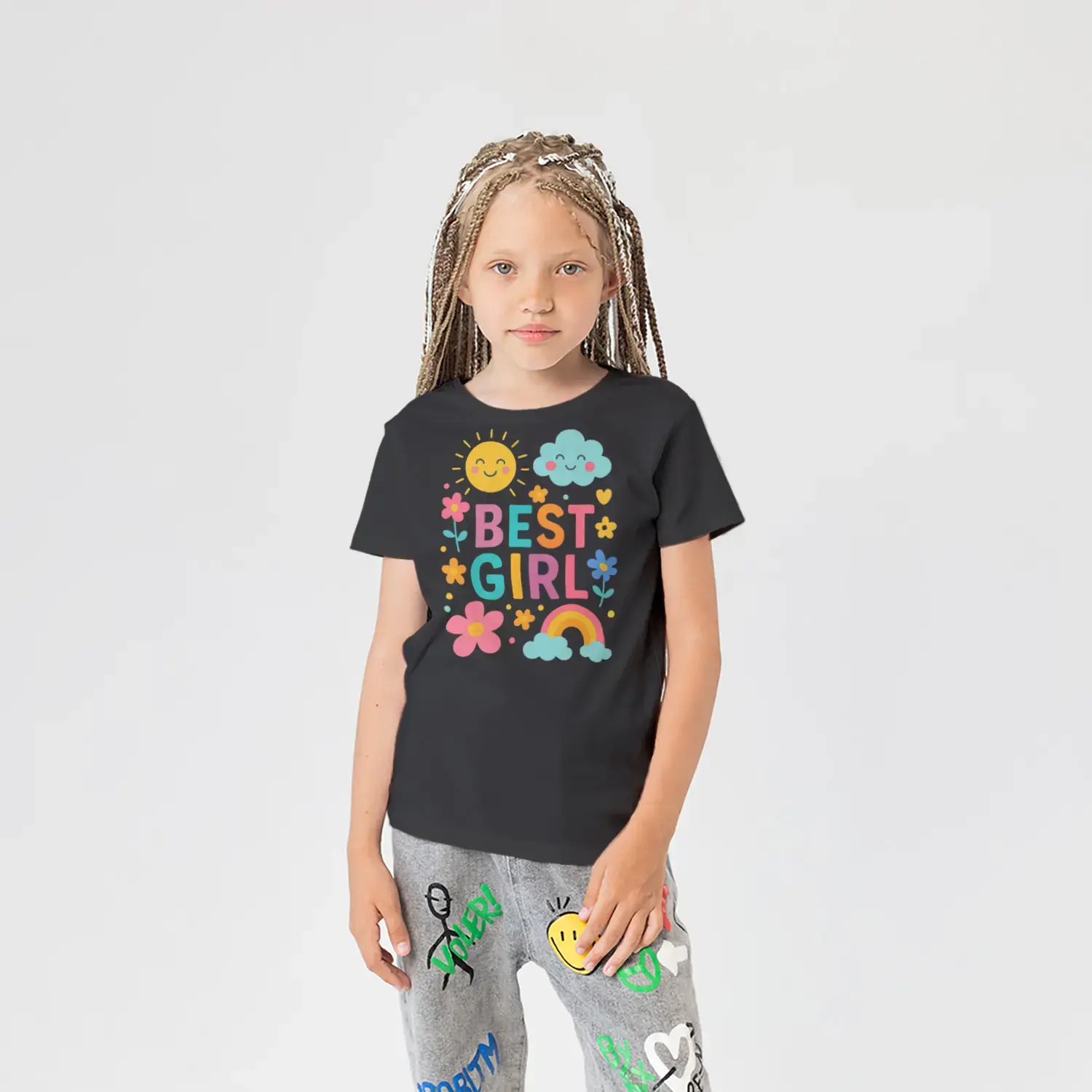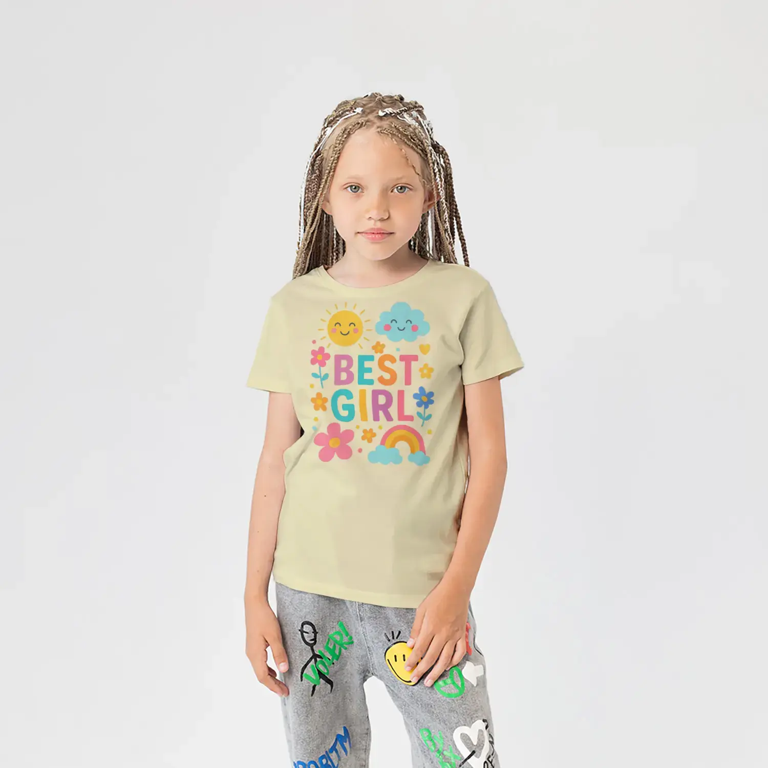 Best Girl Güneş ve Gökkuşağı Baskılı Kız Çocuk Tişörtü