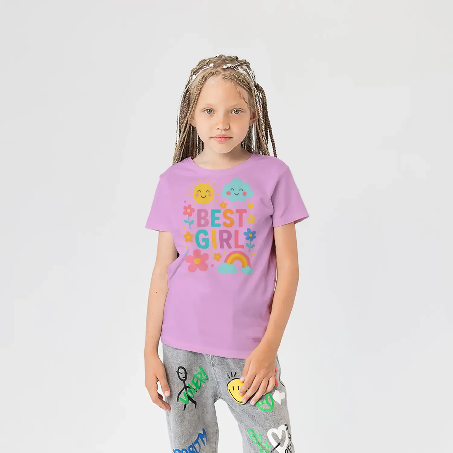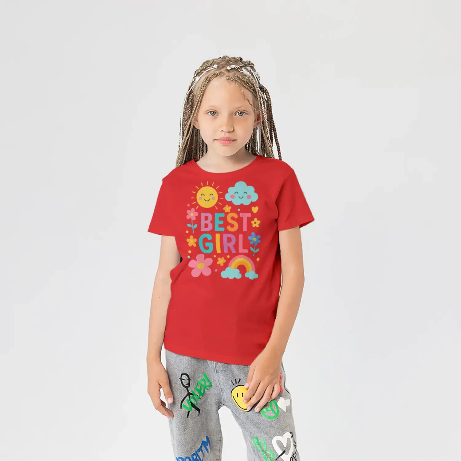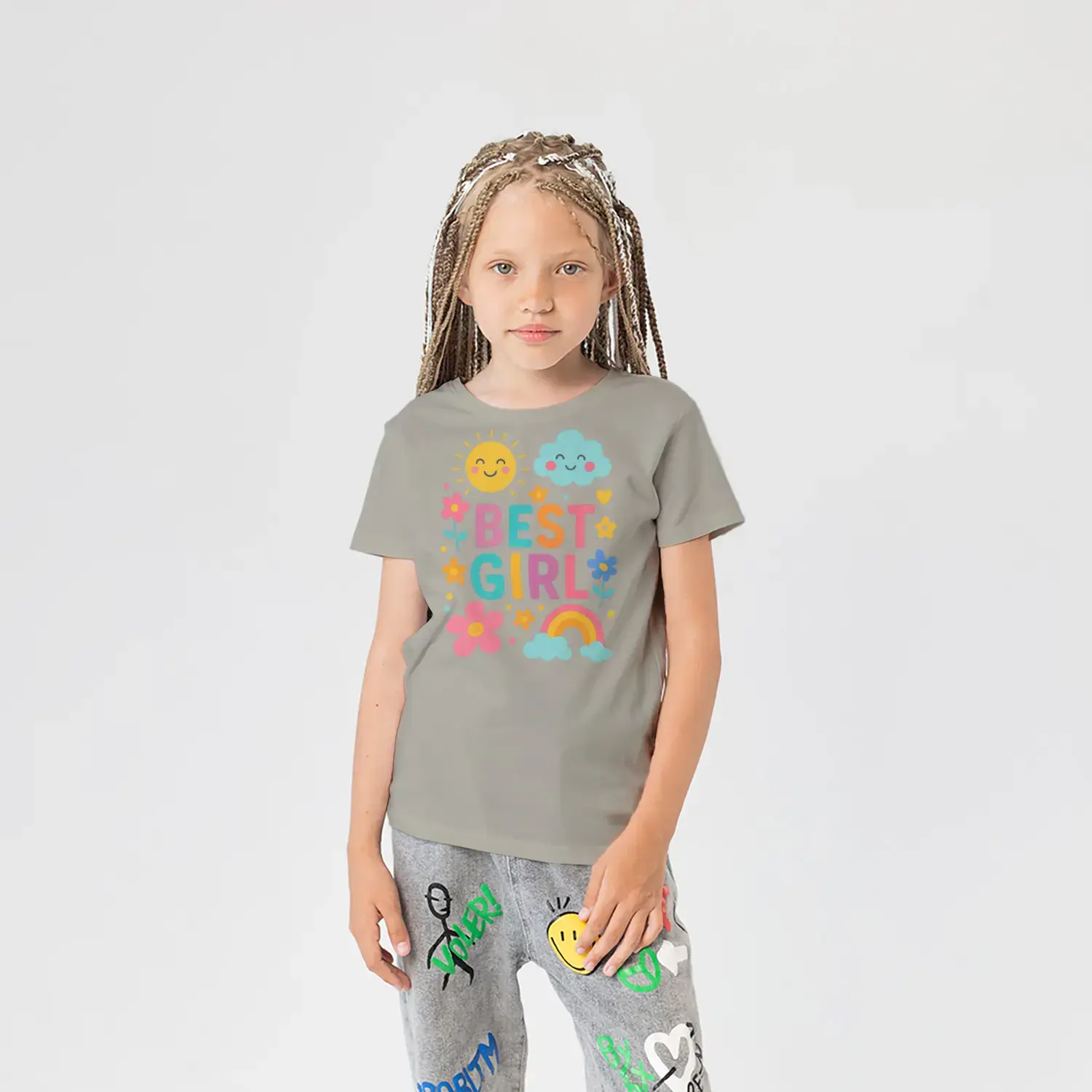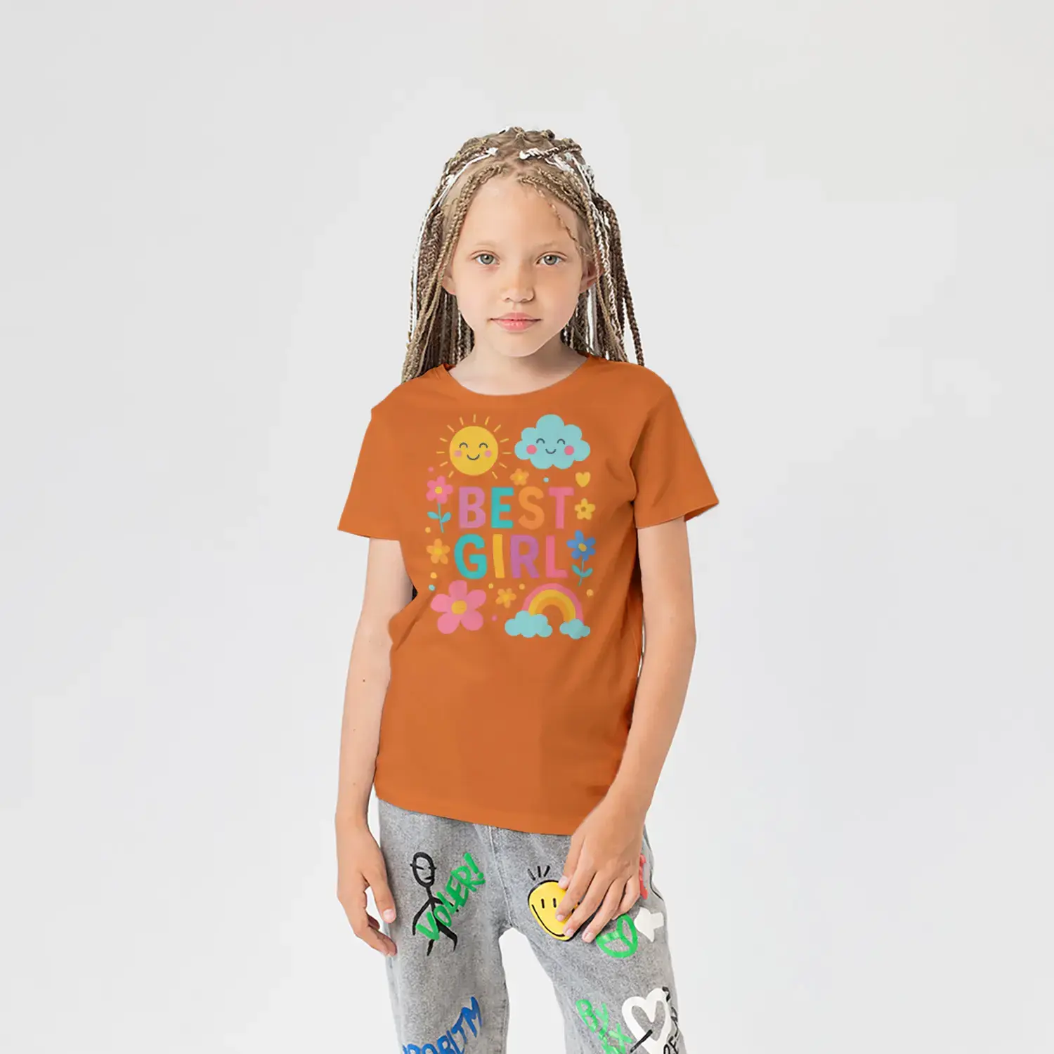 Best Girl Güneş ve Gökkuşağı Baskılı Kız Çocuk Tişörtü
