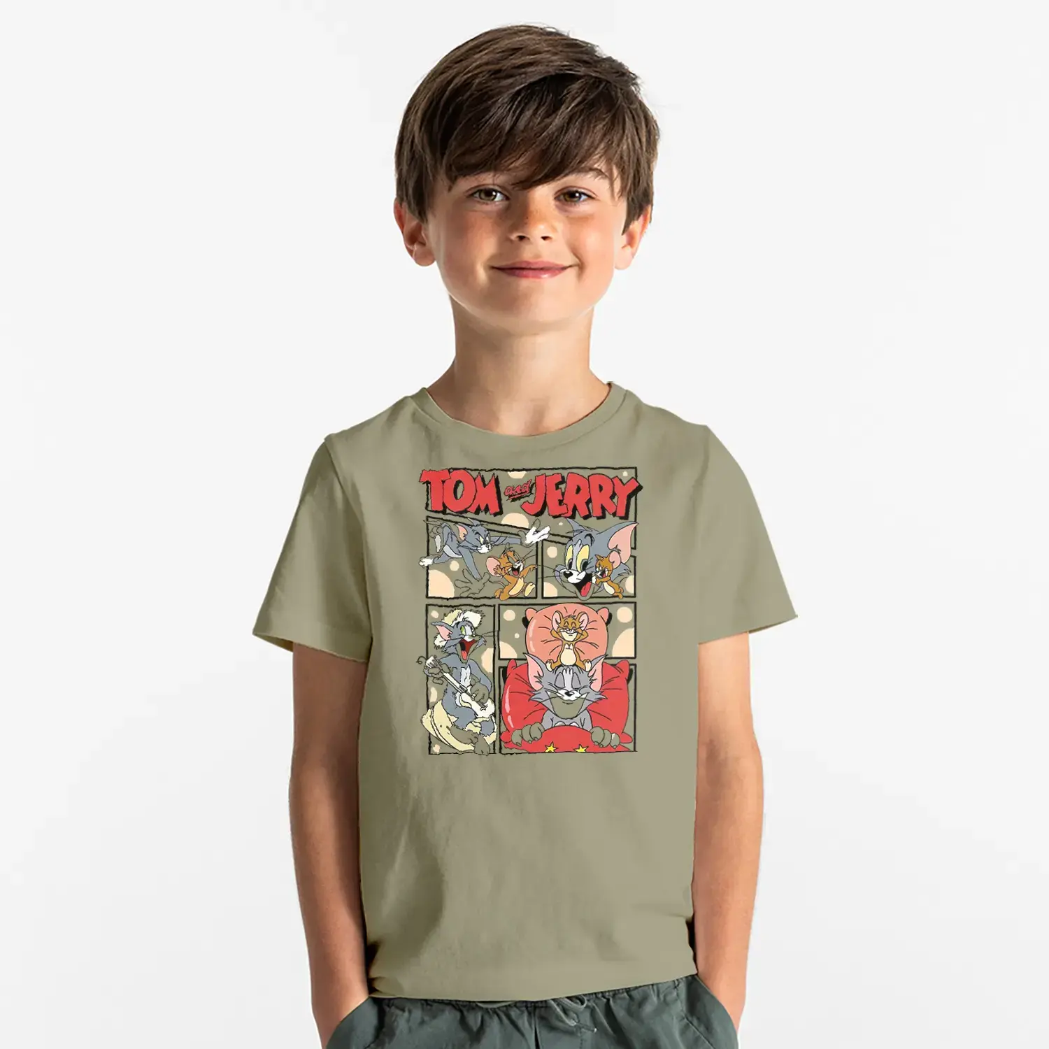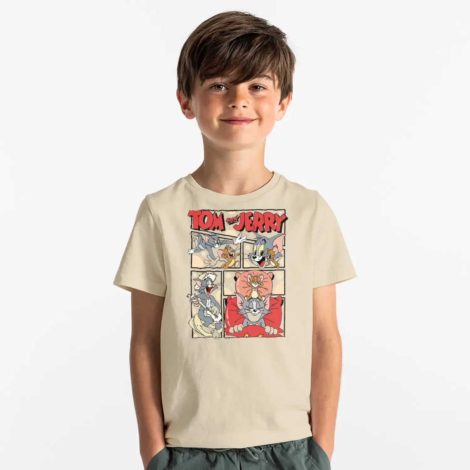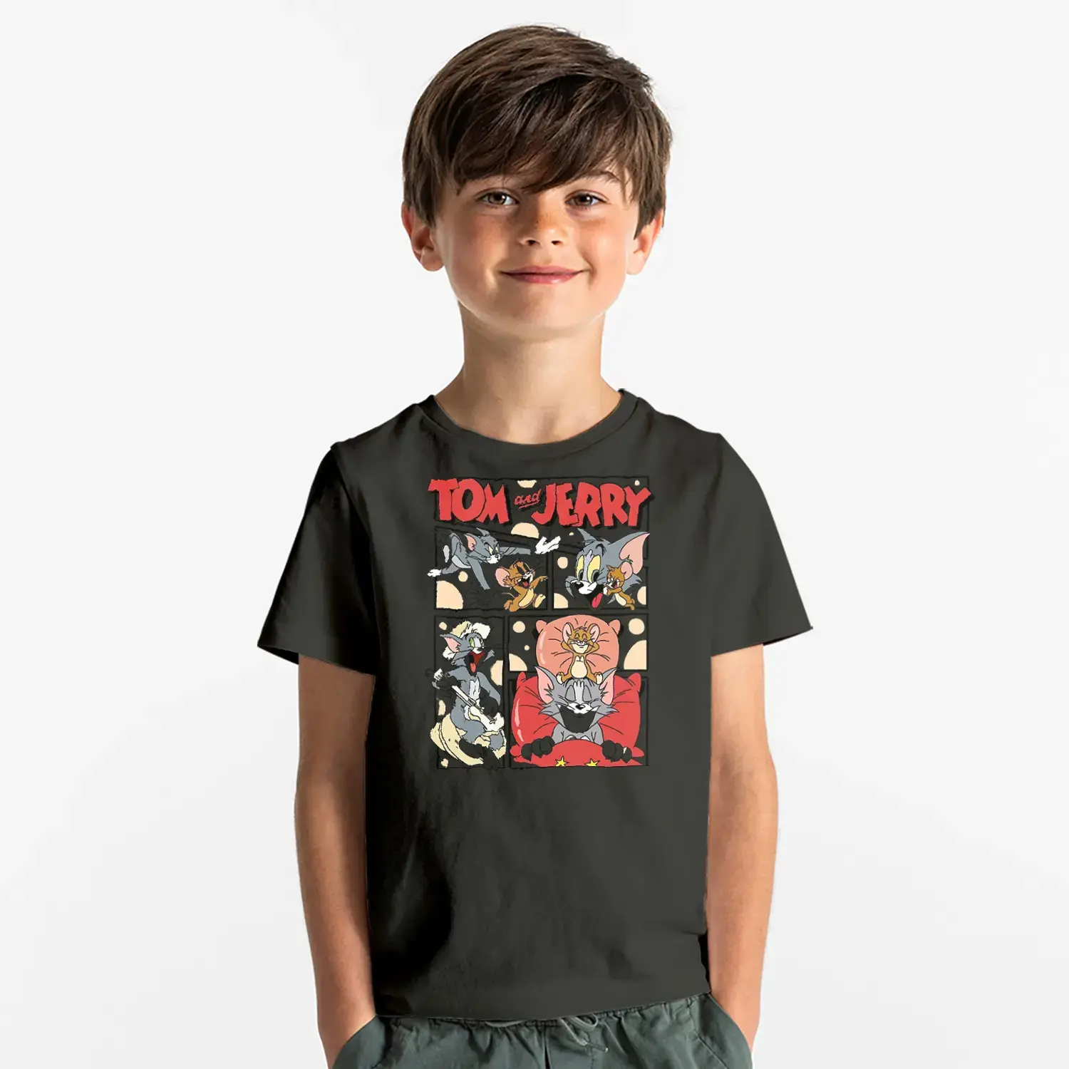 Çizgi Seri Kedi Fare Macera Baskılı Erkek Çocuk Tişört