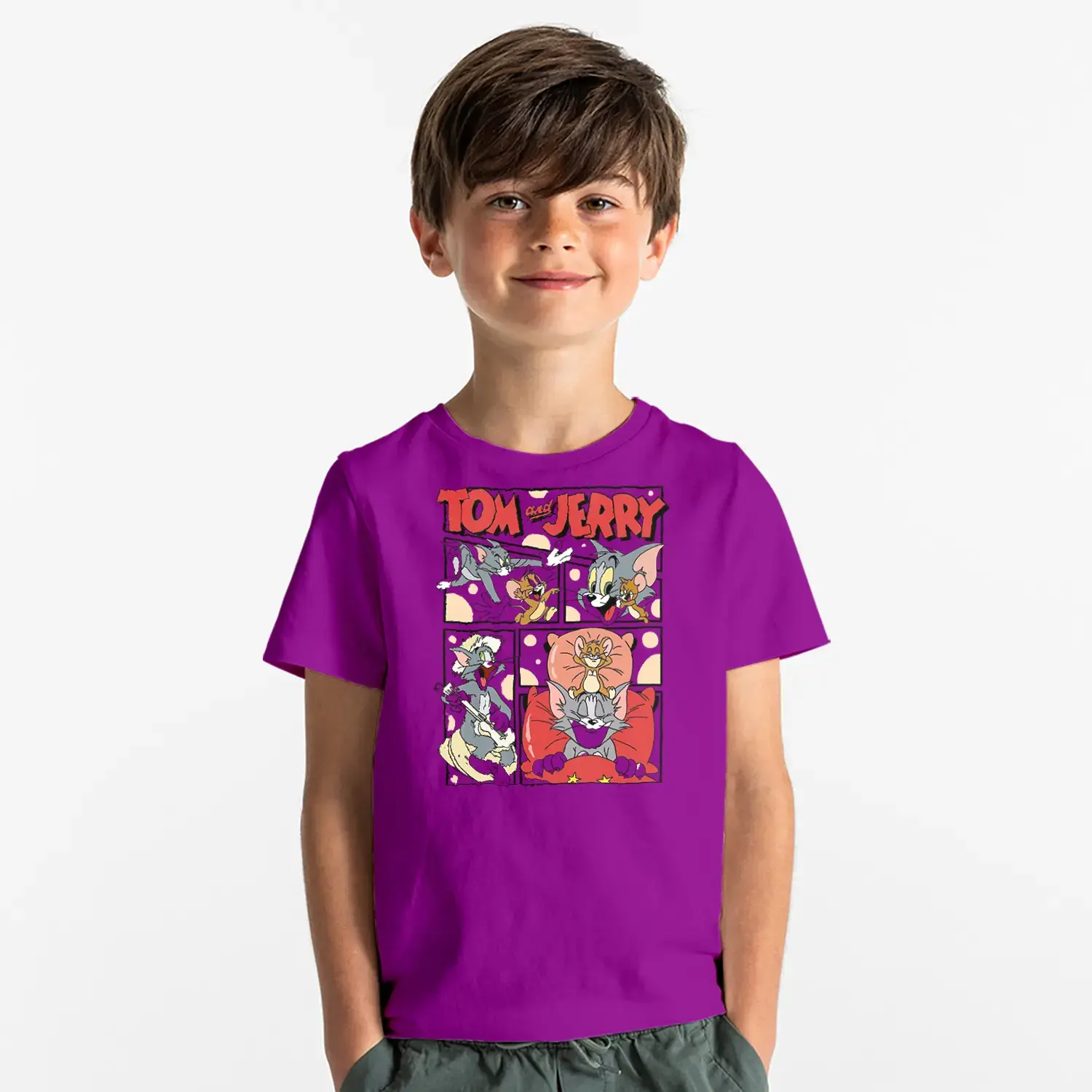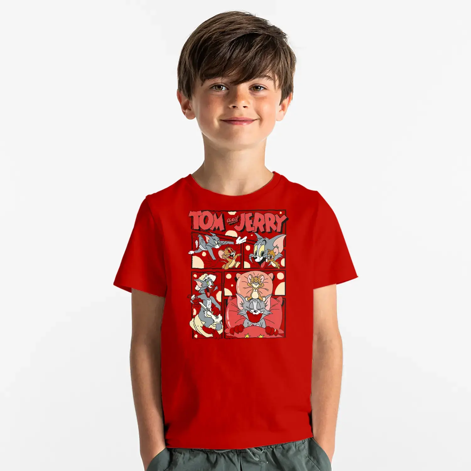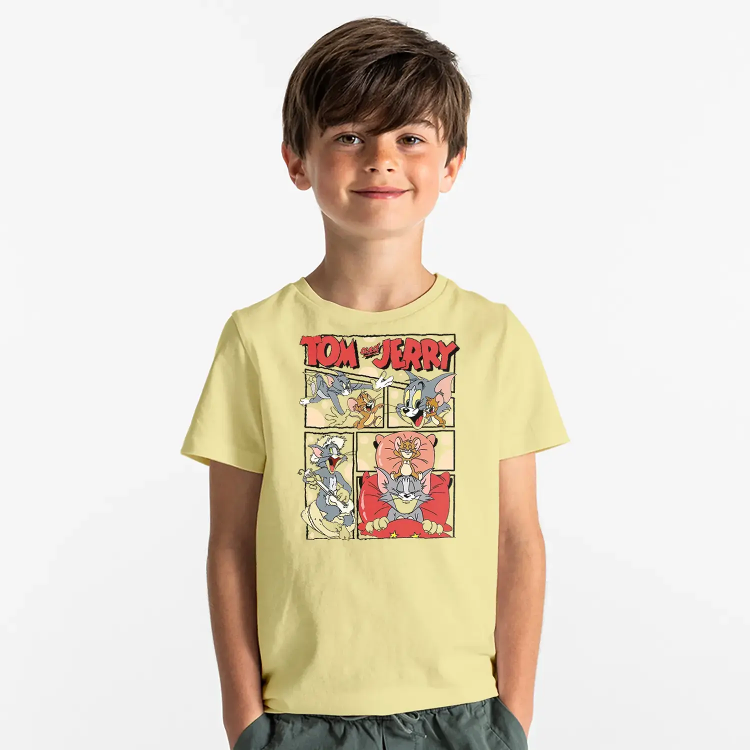 Çizgi Seri Kedi Fare Macera Baskılı Erkek Çocuk Tişört