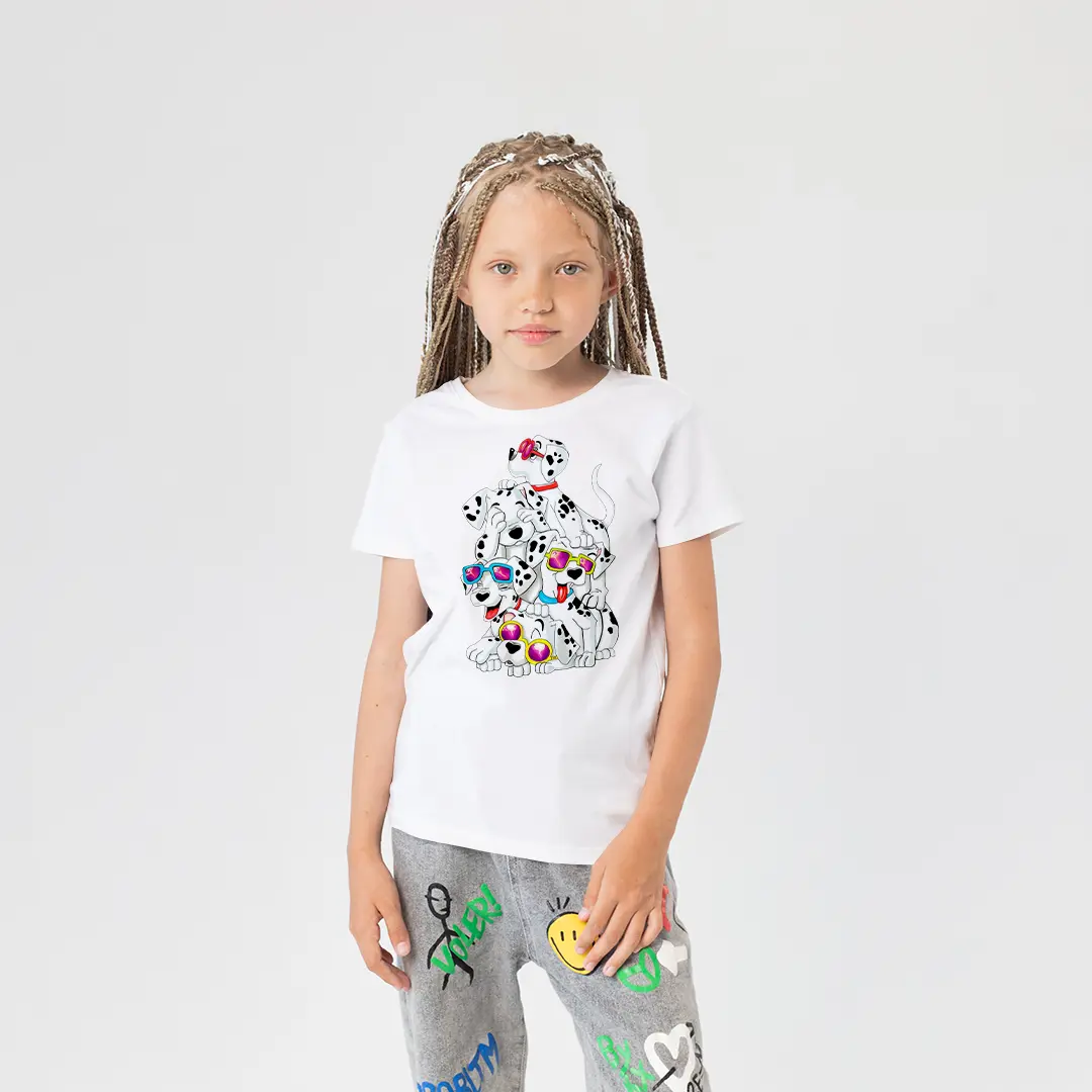 Dalmaçyalı Köpekler Renkli Gözlüklü Baskılı Kız Çocuk Tişörtü