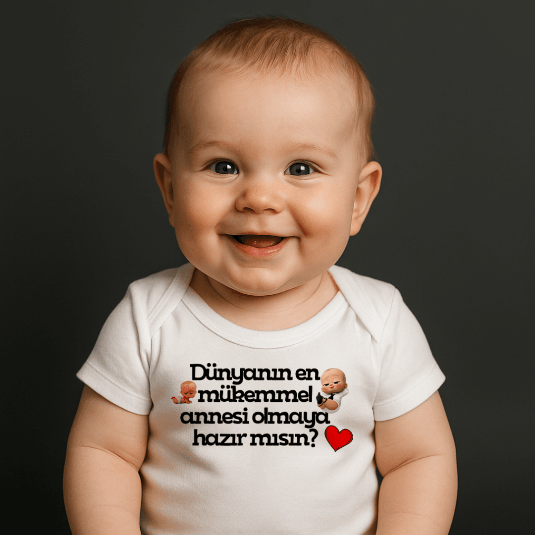 Dünyanın En Mükemmel Annesi Olmaya Hazır Mısın Bebe Baskılı Zıbın