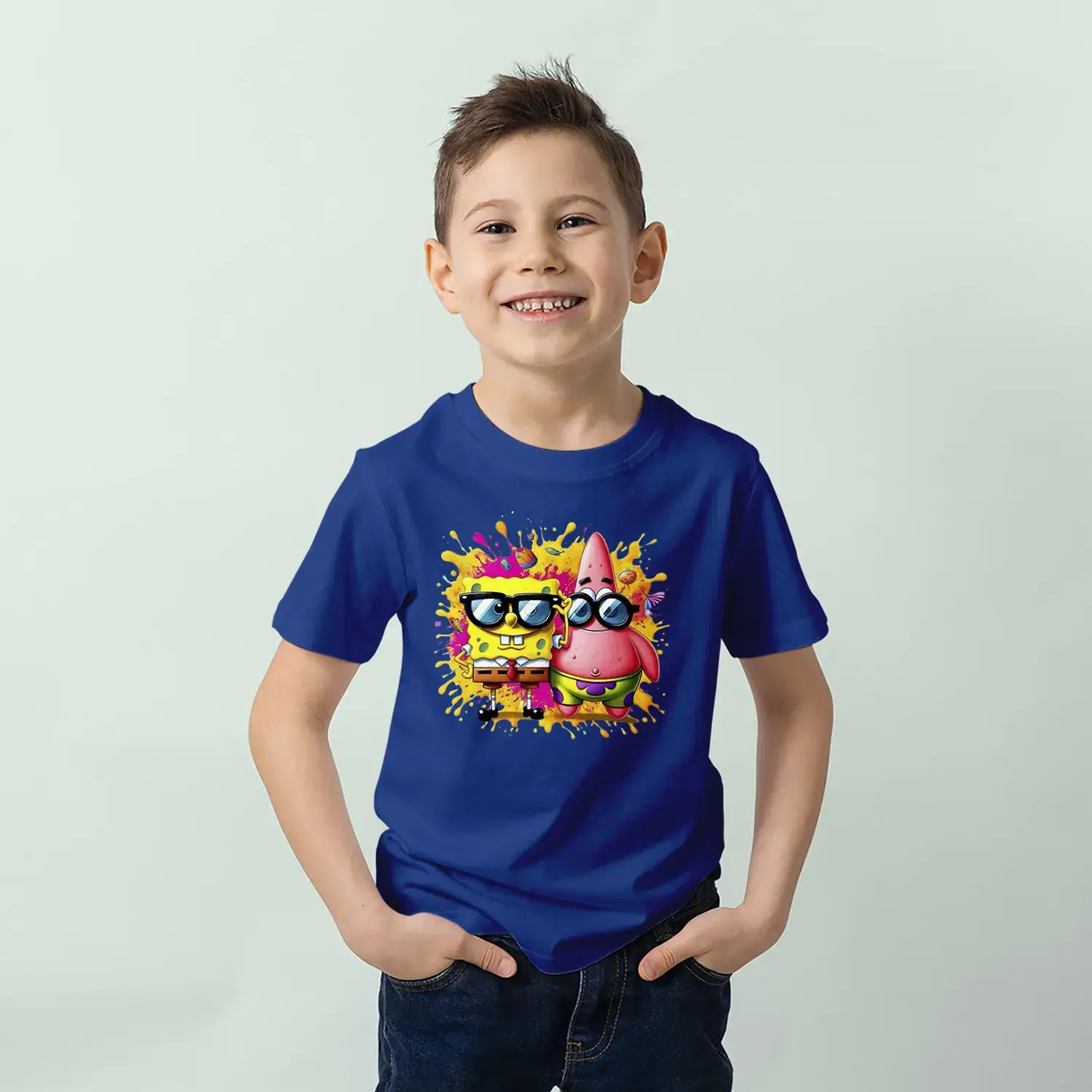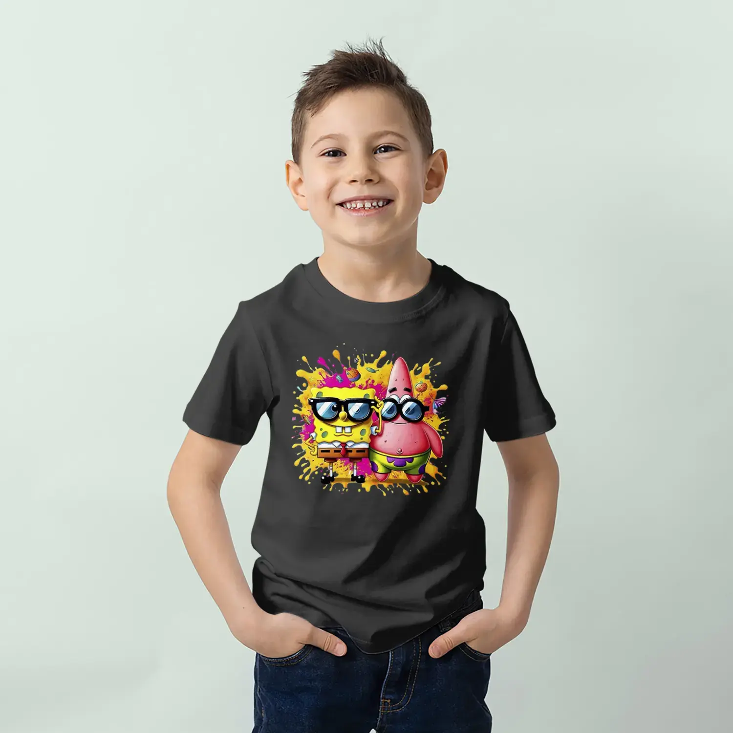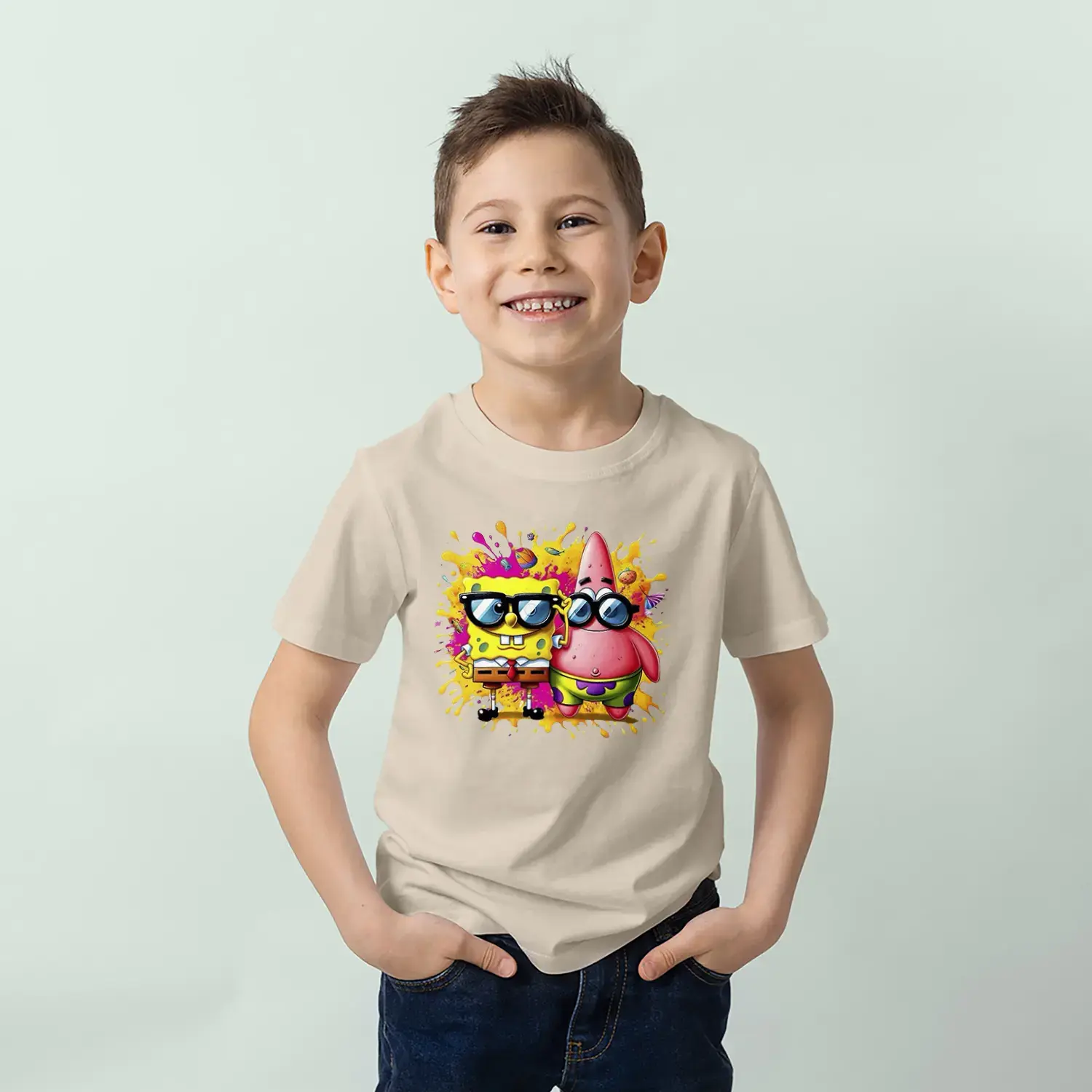 Eğlenceli Deniz Yıldızı ve Sünger Karakter Erkek Çocuk Tişört