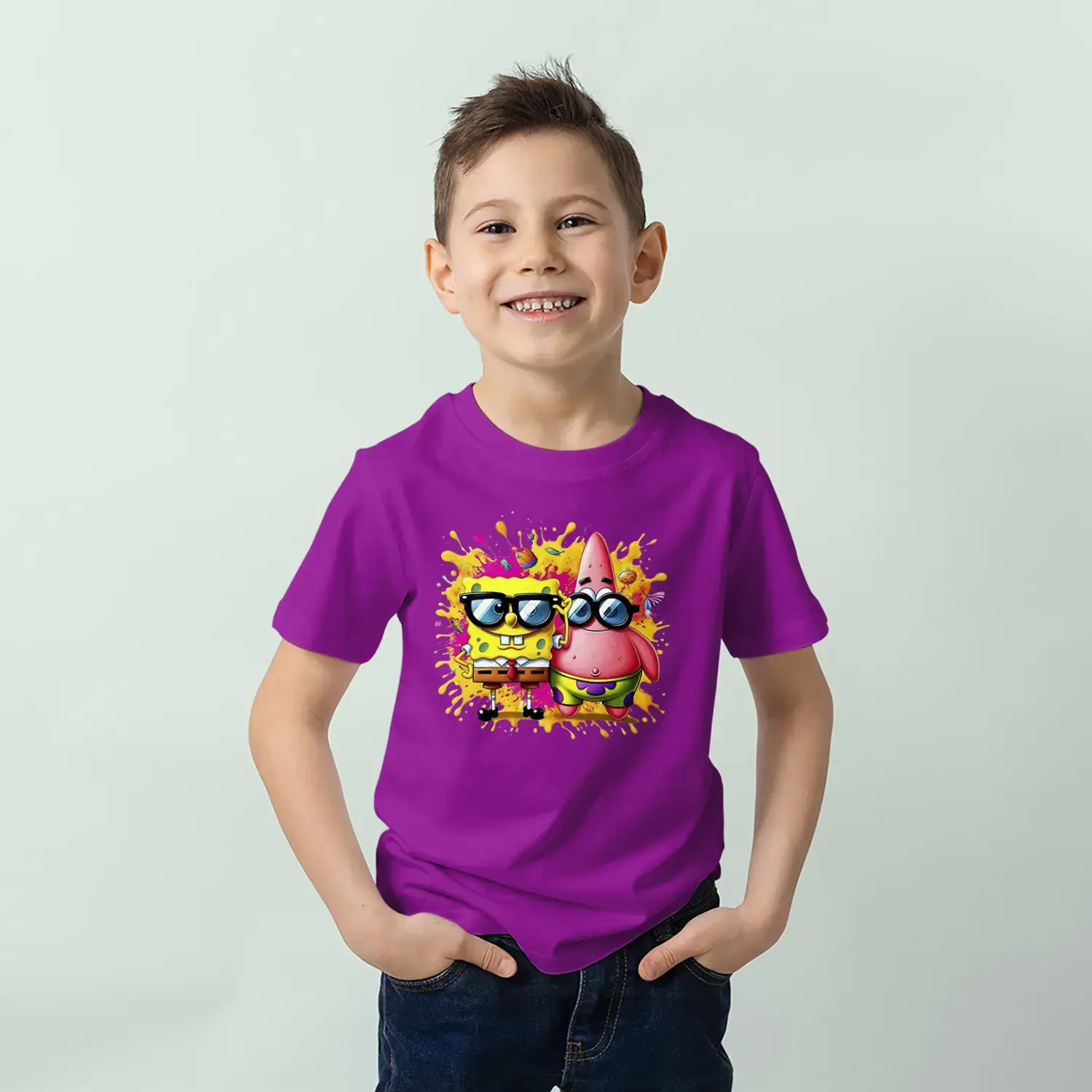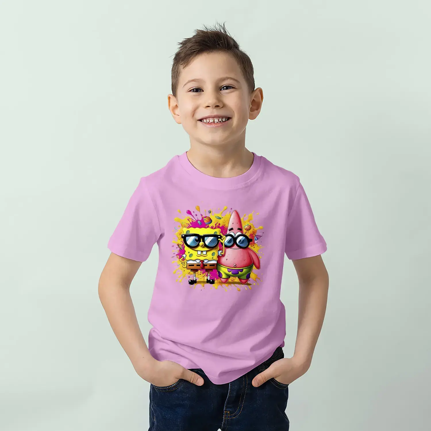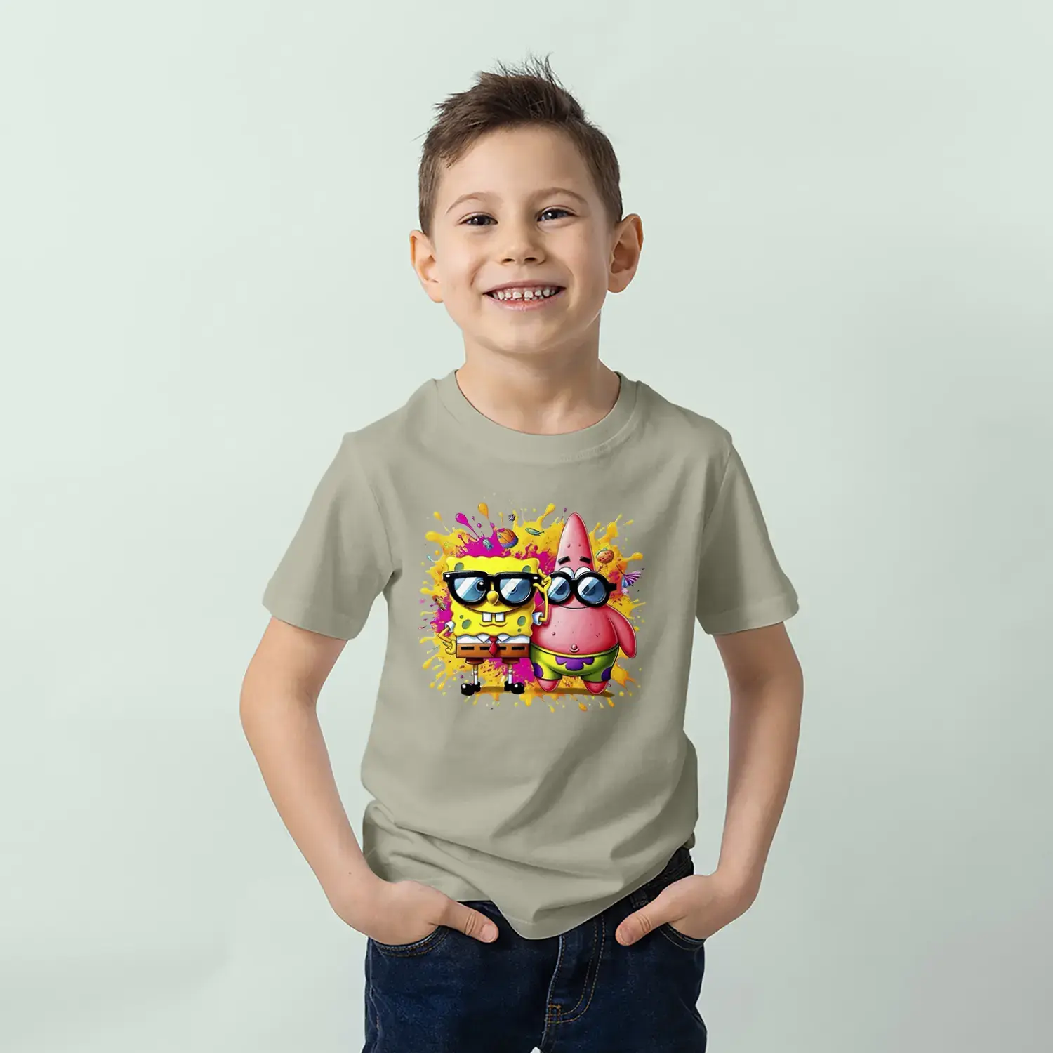 Eğlenceli Deniz Yıldızı ve Sünger Karakter Erkek Çocuk Tişört