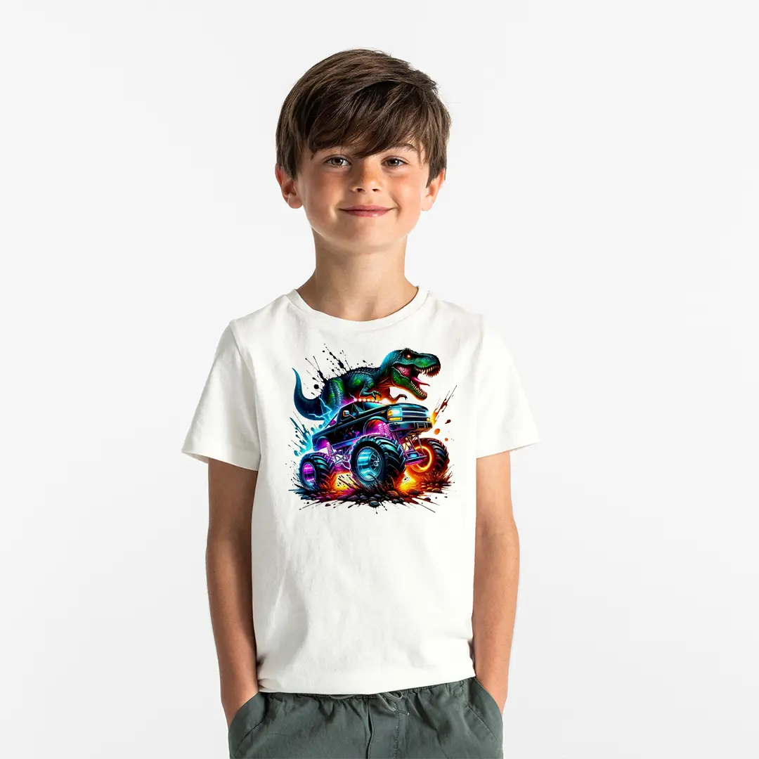 Erkek Çocuk Monster Araba Baskılı Tişört – Yarış Arabası Çocuk Tişört