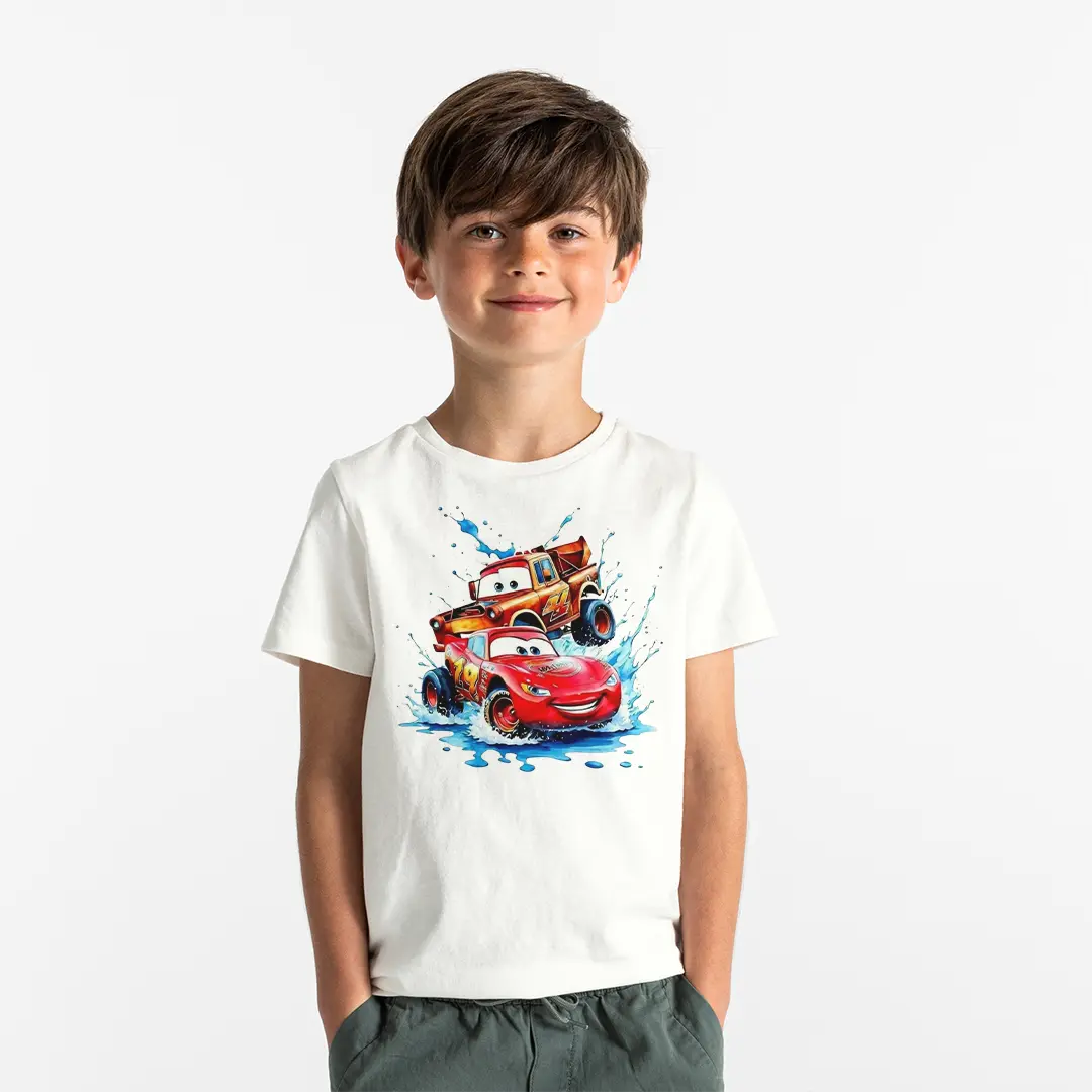 Erkek Çocuk Şimşek McQueen Baskılı Tişört – Arabalar Karakterli Çocuk Tişört