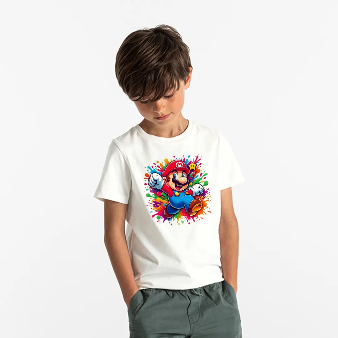 Erkek Çocuk Super Mario Renkli Splash Baskılı Tişört – Oyun Karakteri Çocuk Tişört 2