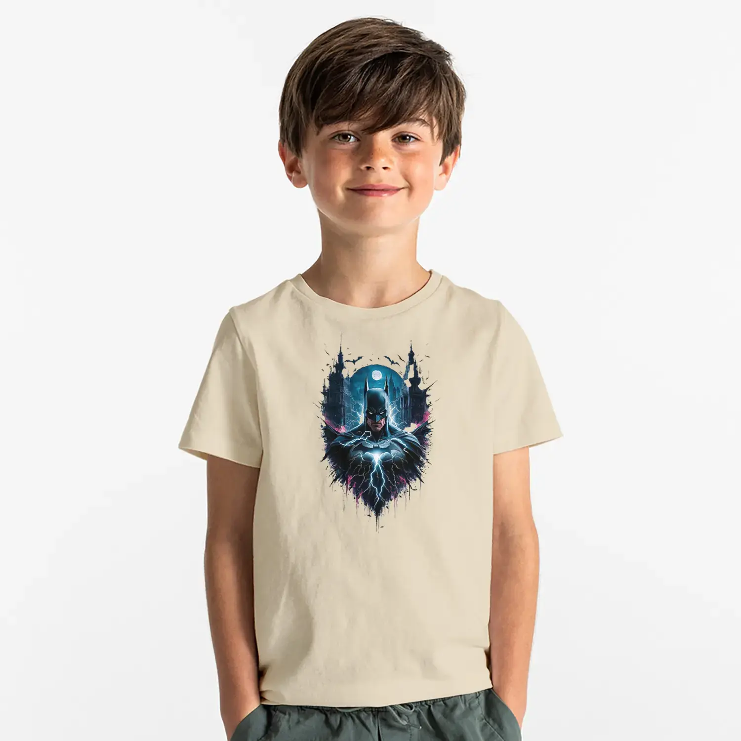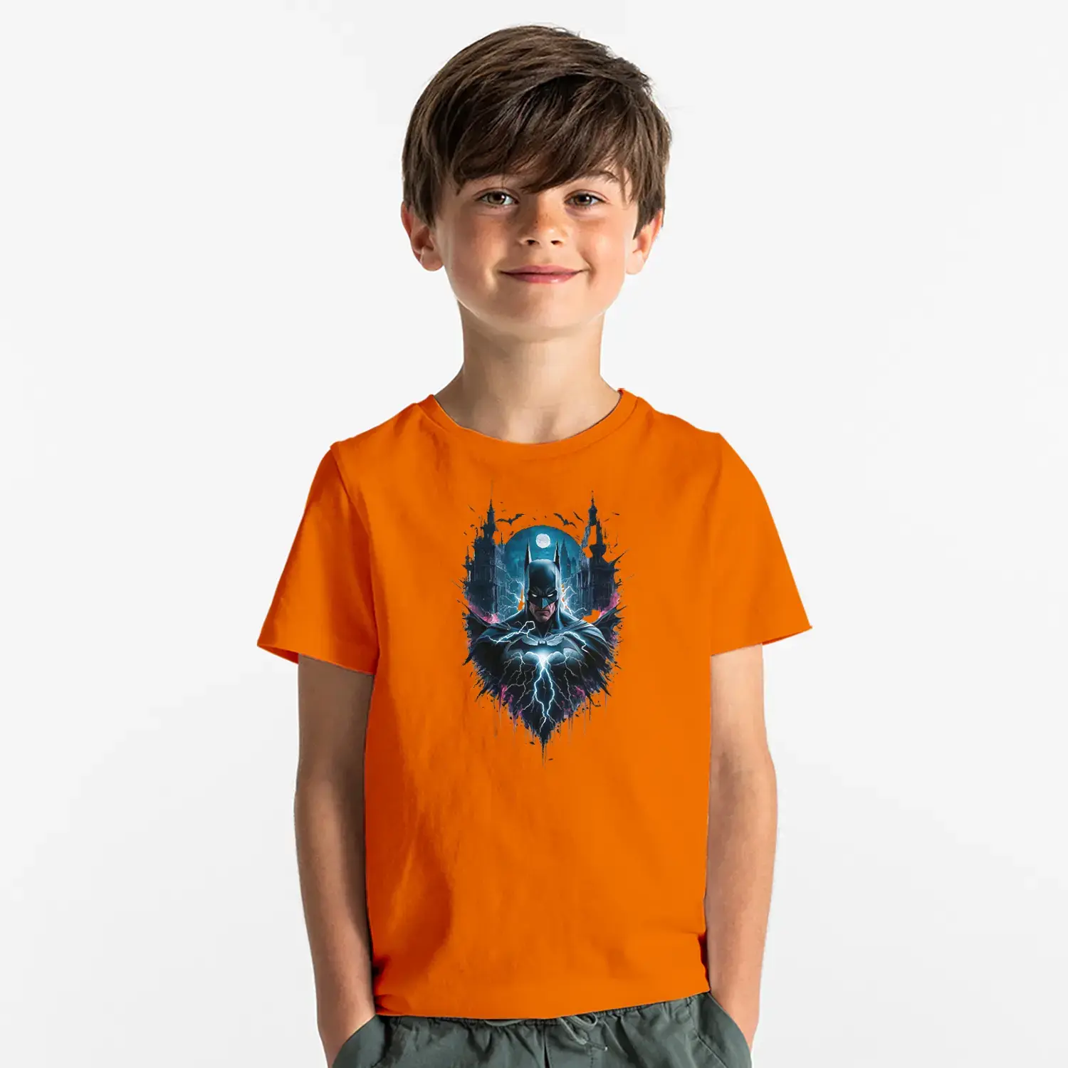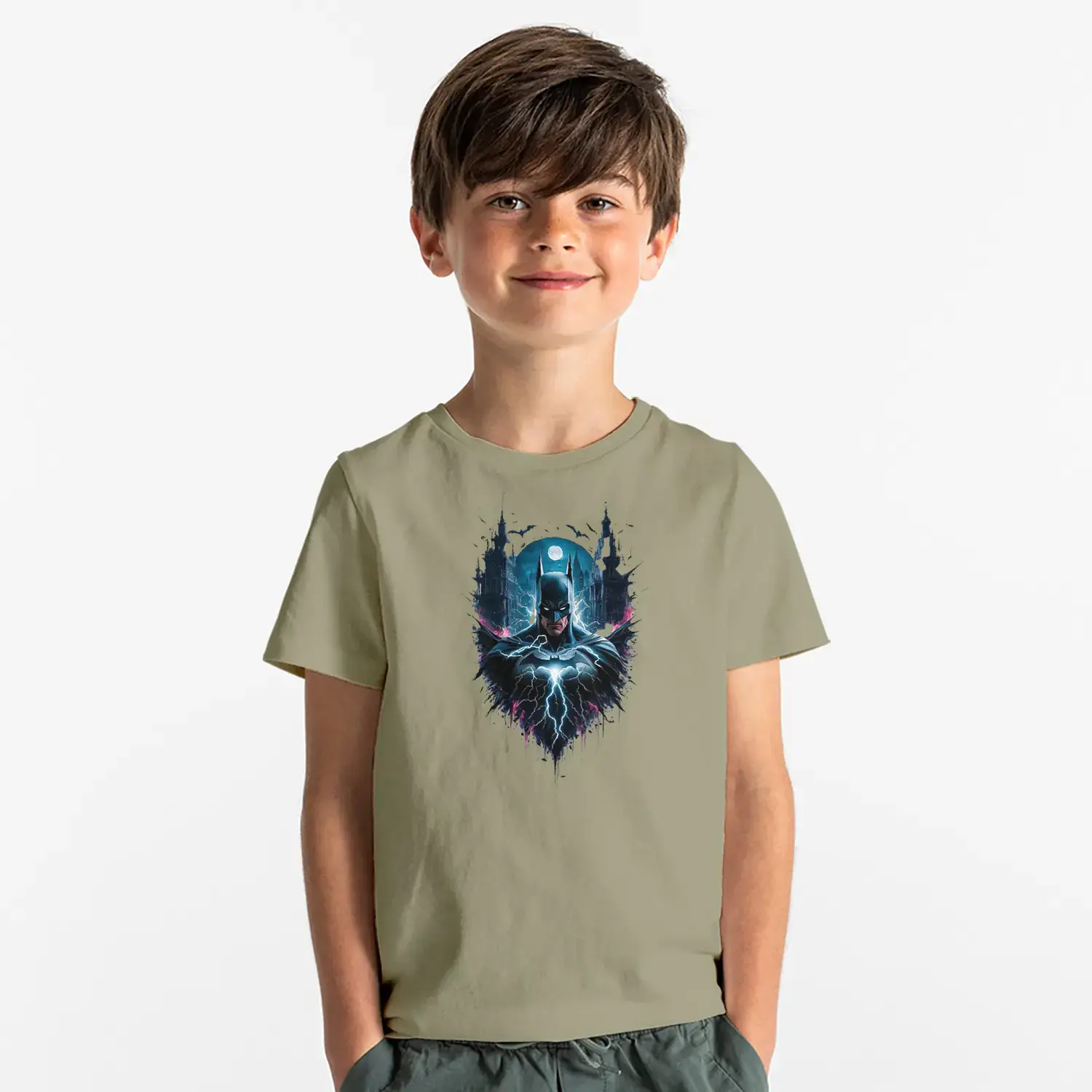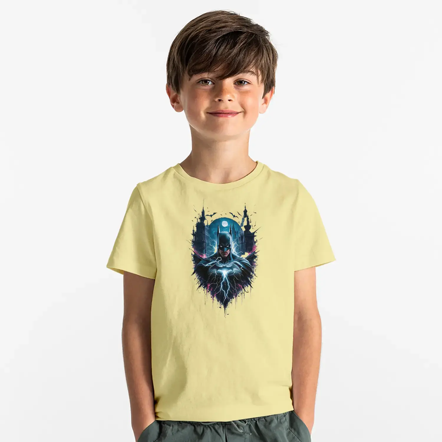Gece Şehirli Maskeli Kahraman Baskılı Erkek Çocuk Tişört