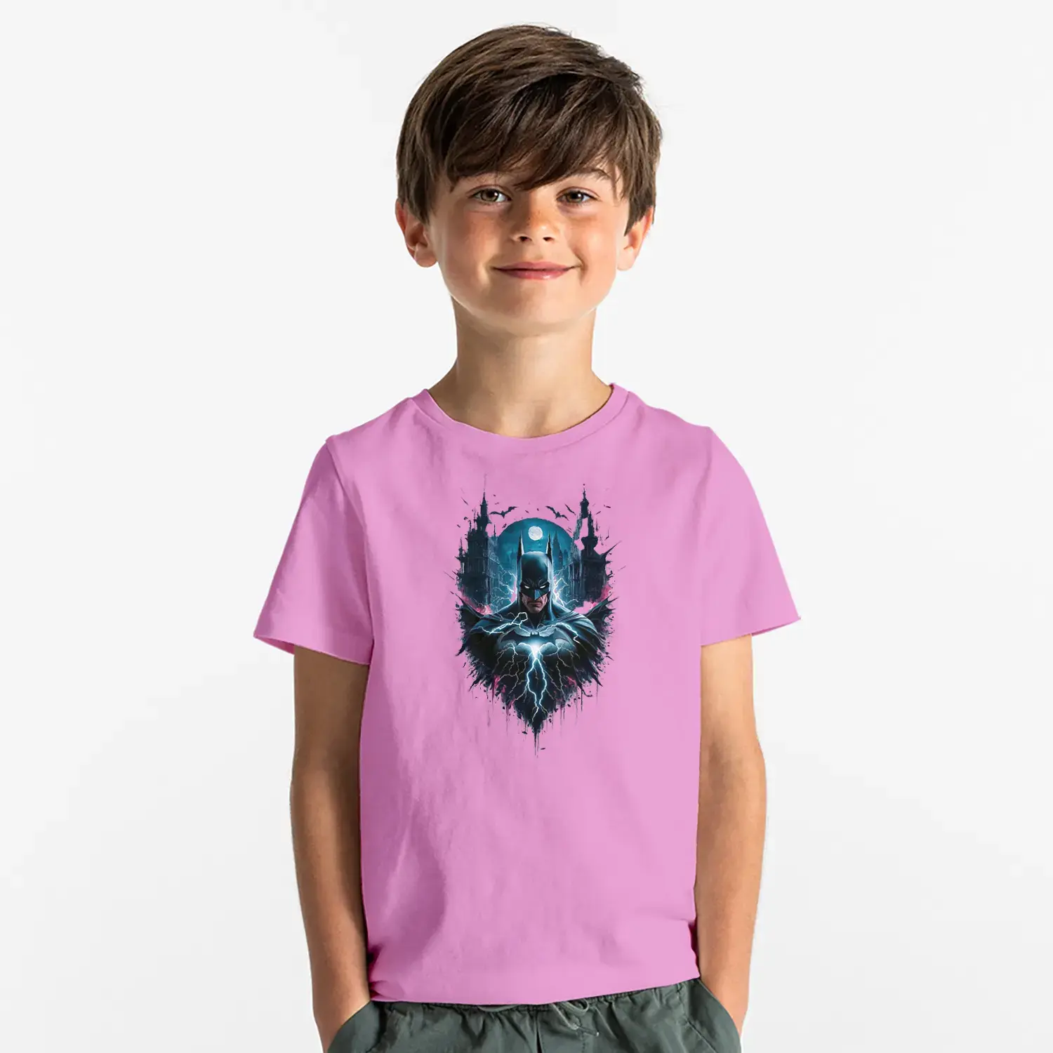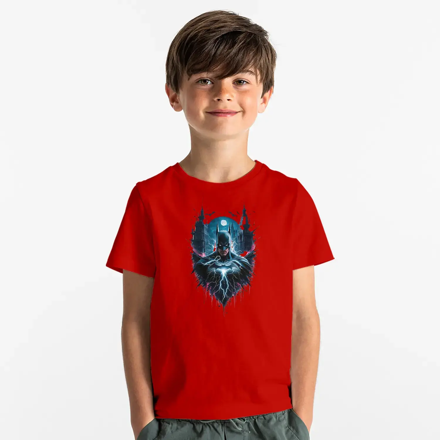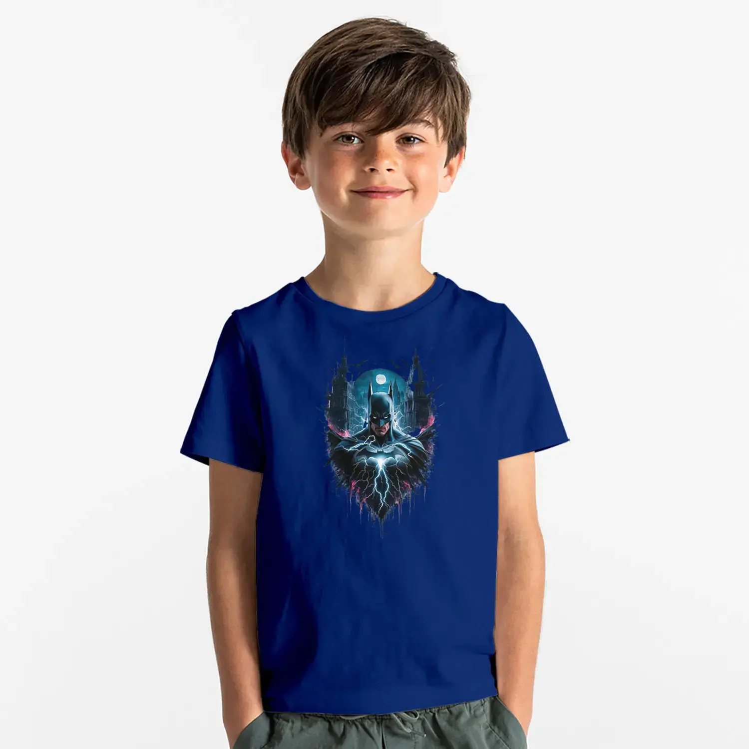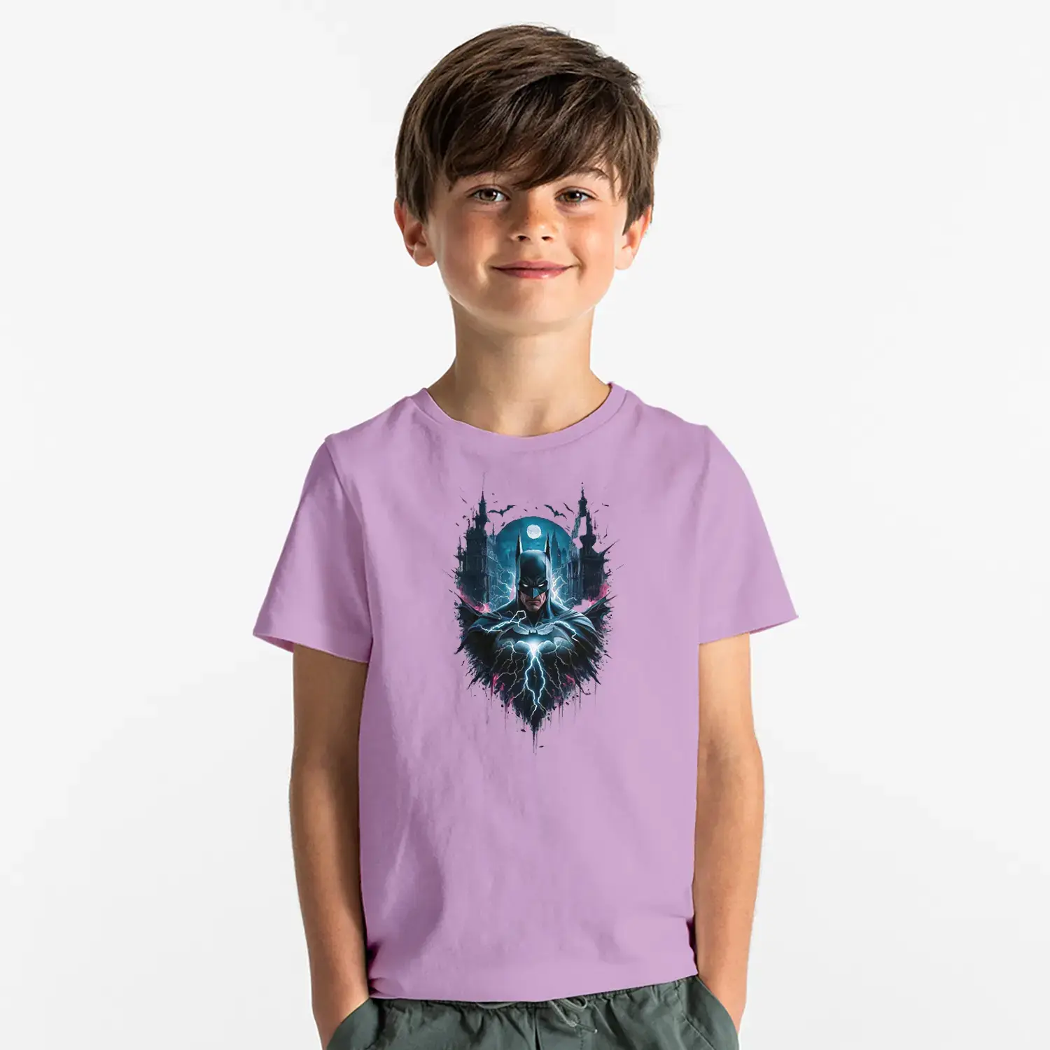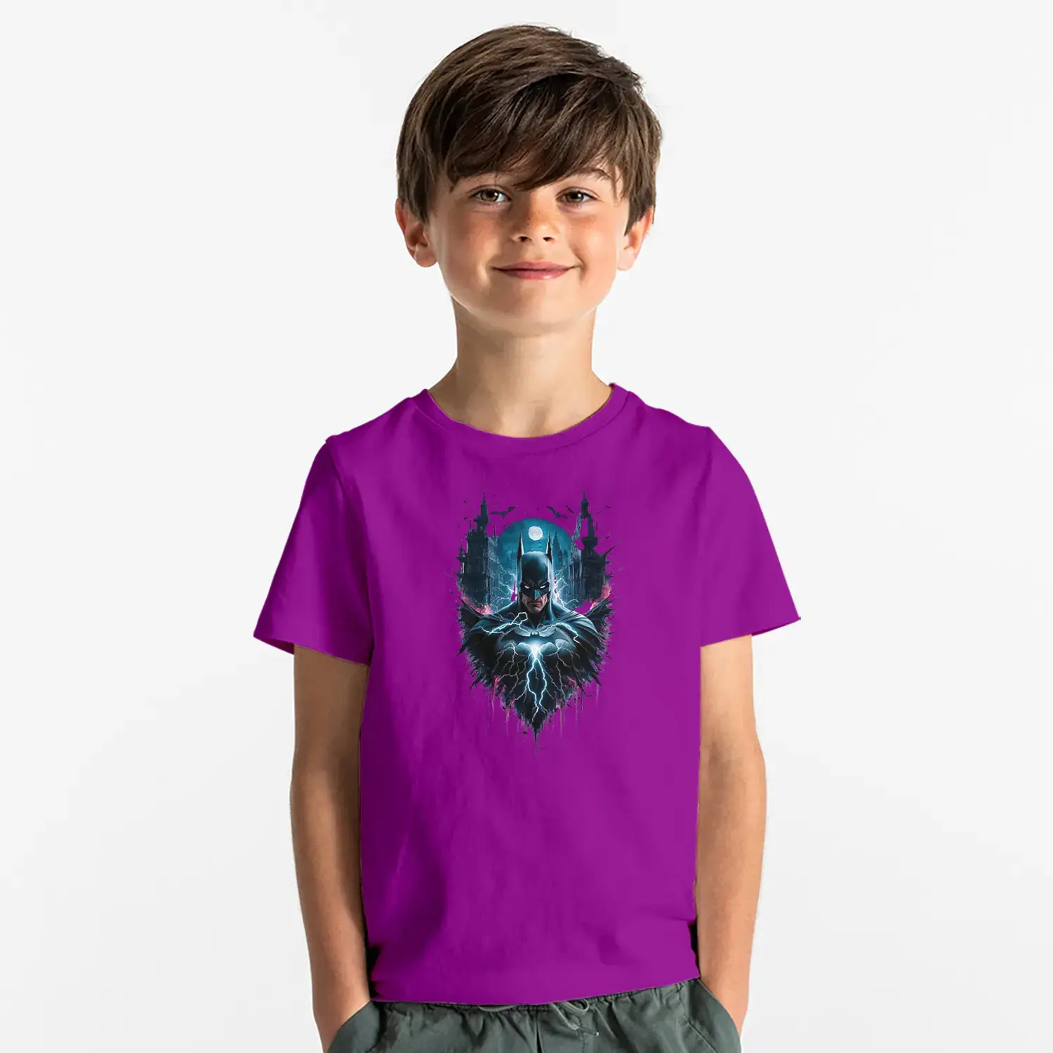 Gece Şehirli Maskeli Kahraman Baskılı Erkek Çocuk Tişört