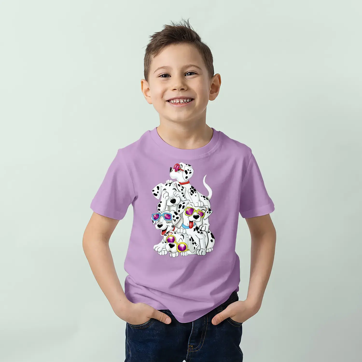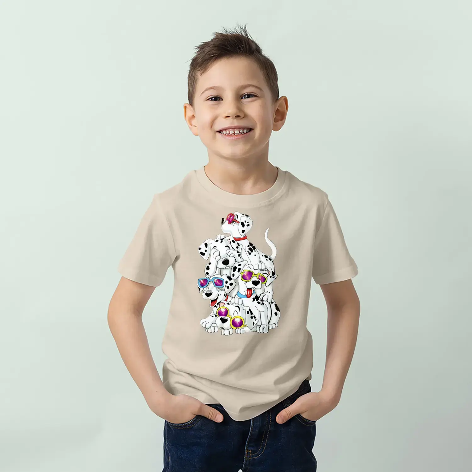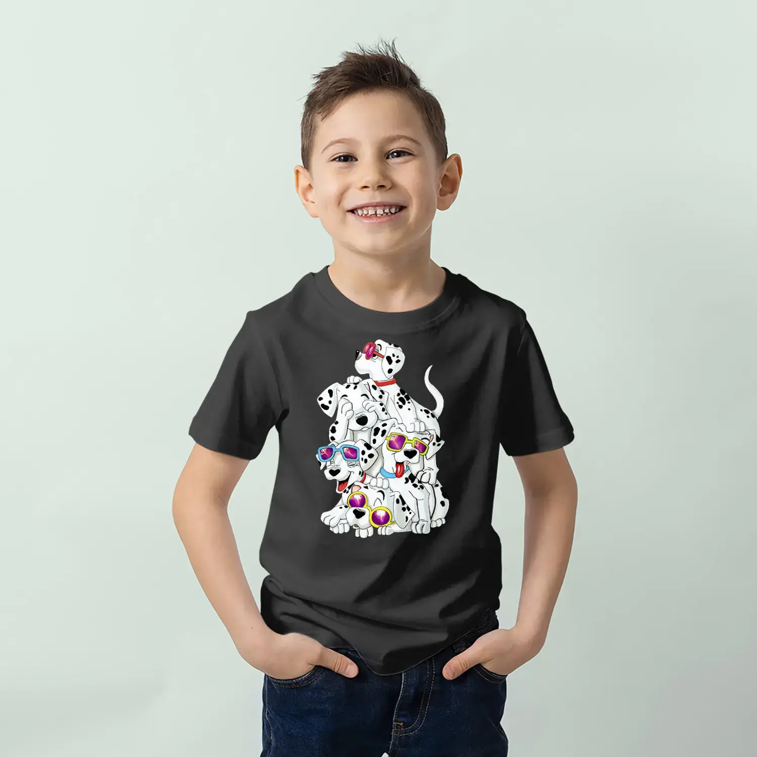 Gözlüklü Sevimli Köpekler Baskılı Erkek Çocuk Tişört