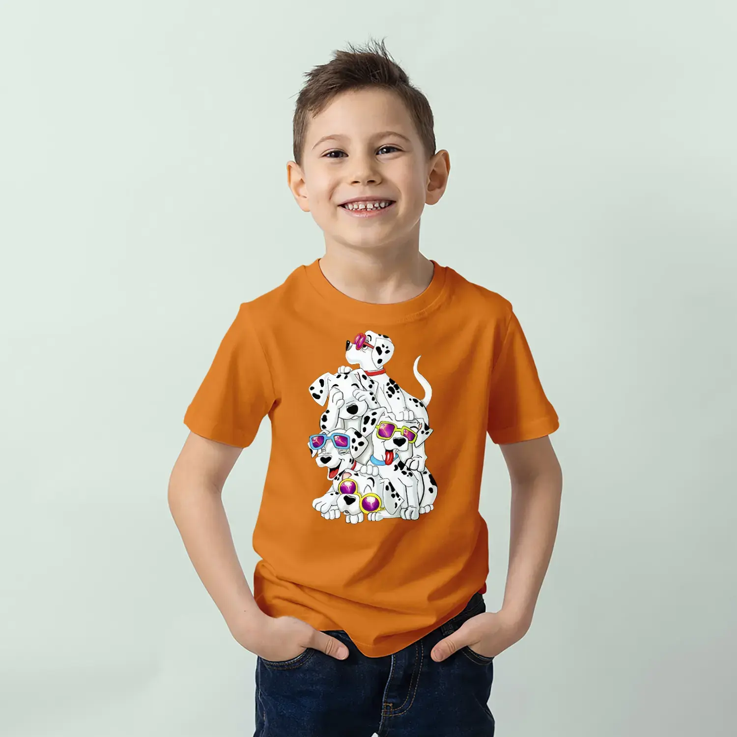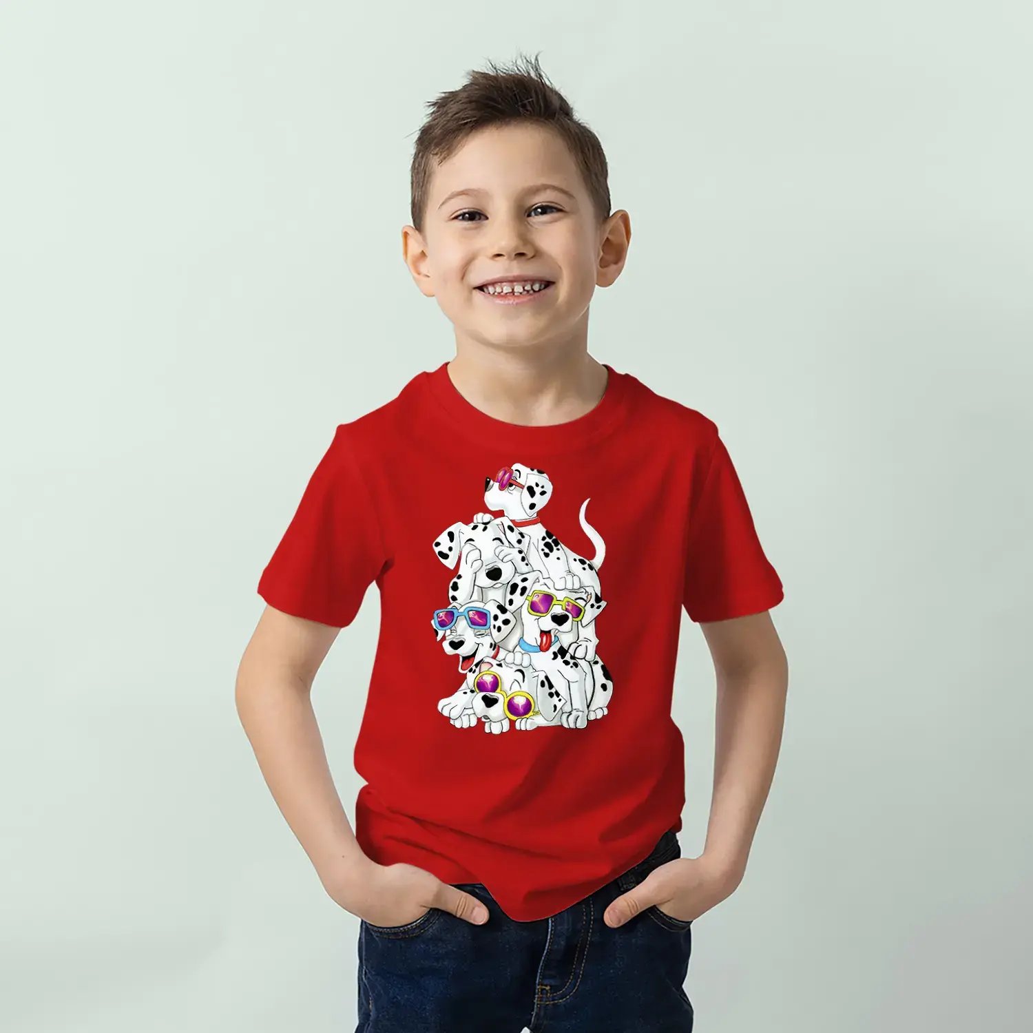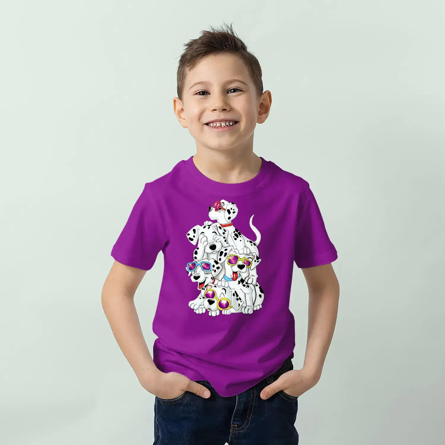 Gözlüklü Sevimli Köpekler Baskılı Erkek Çocuk Tişört