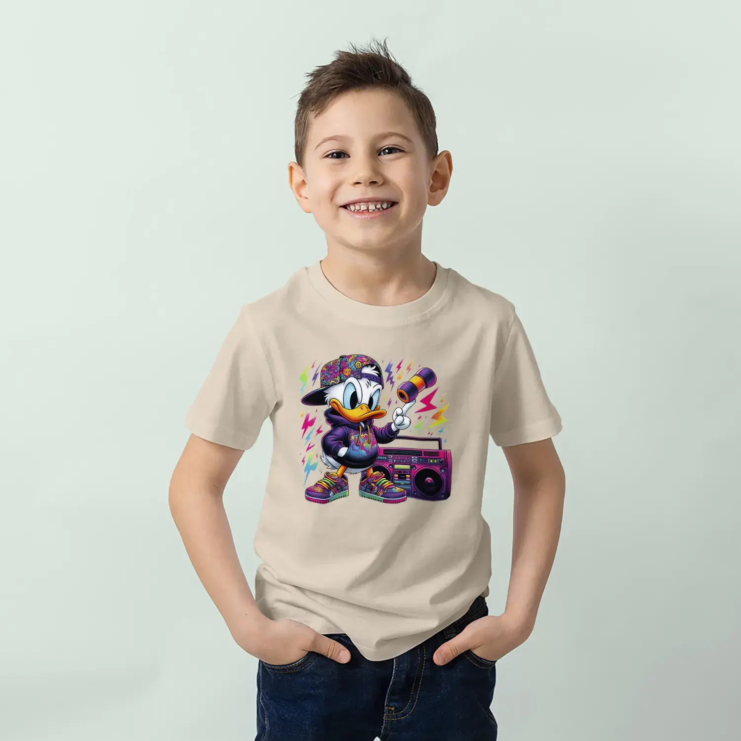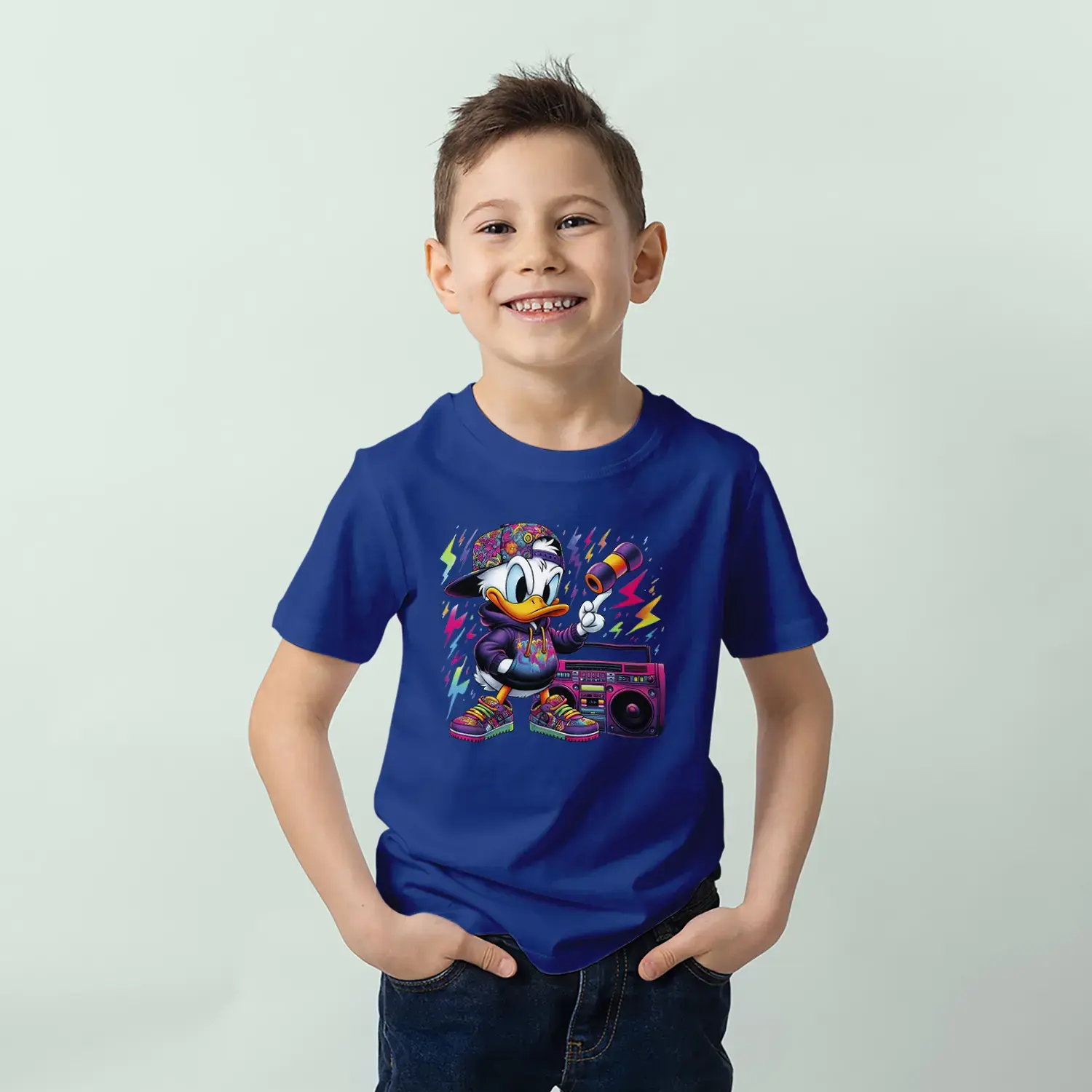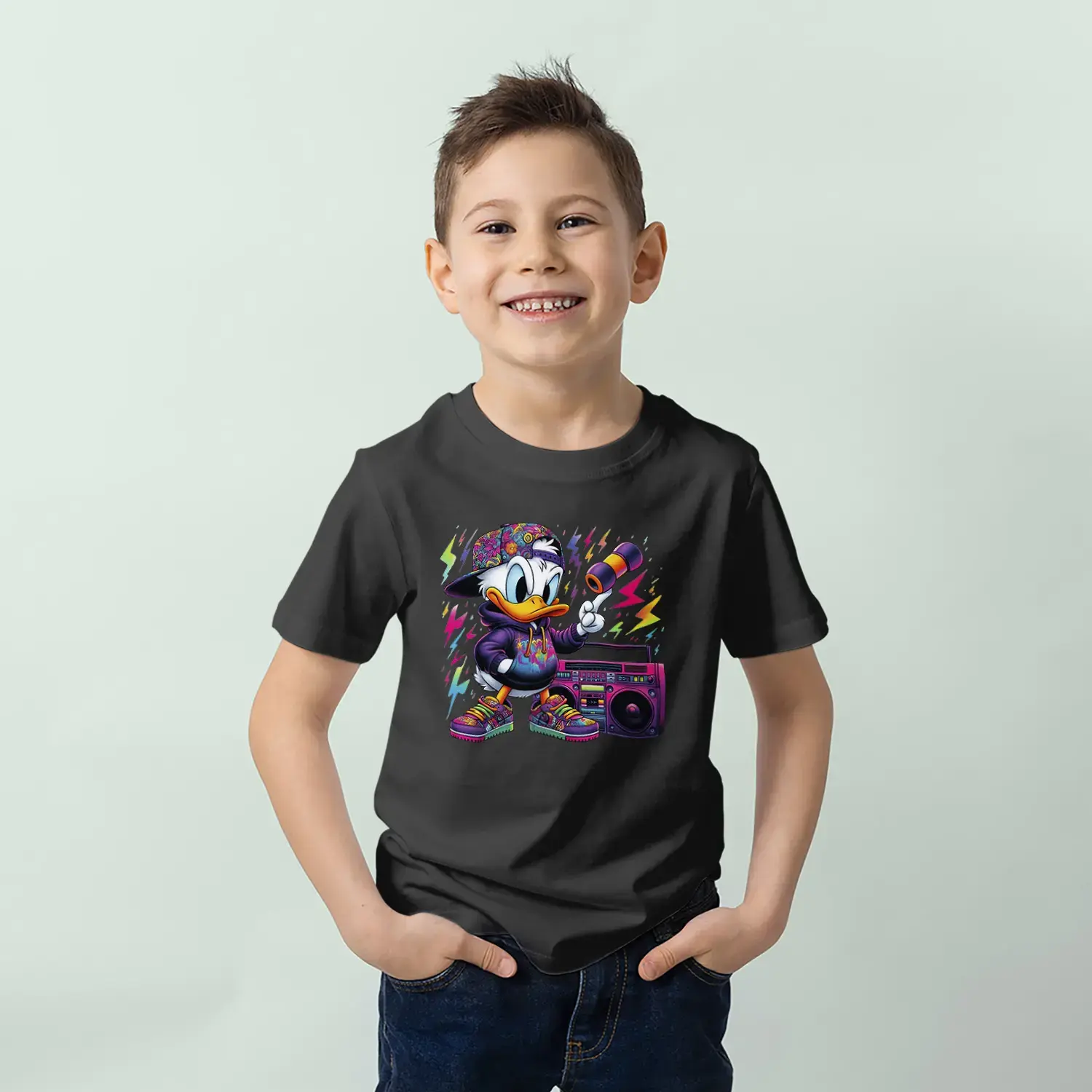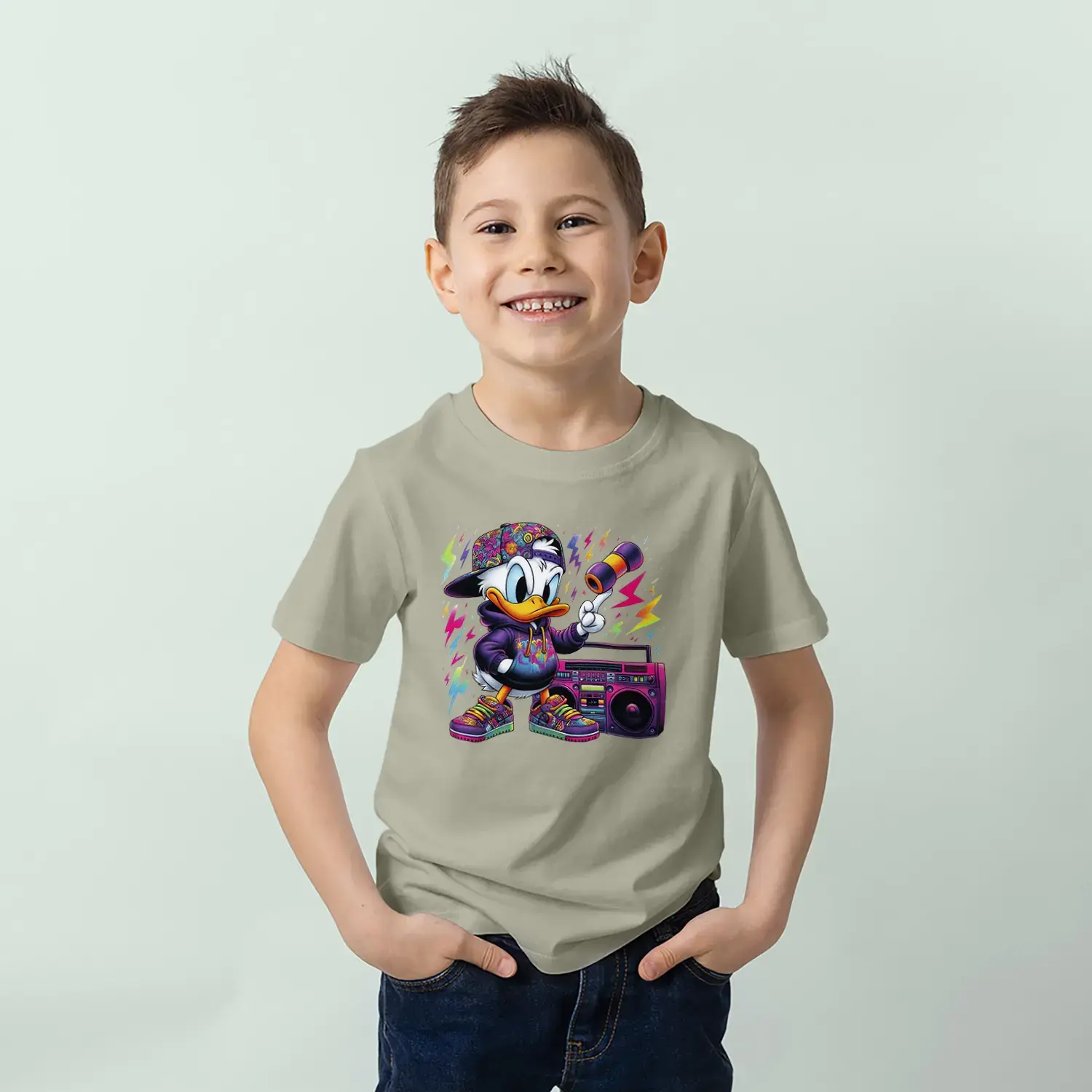 Grafiti Tarz Ördek Baskılı Erkek Çocuk Tişört