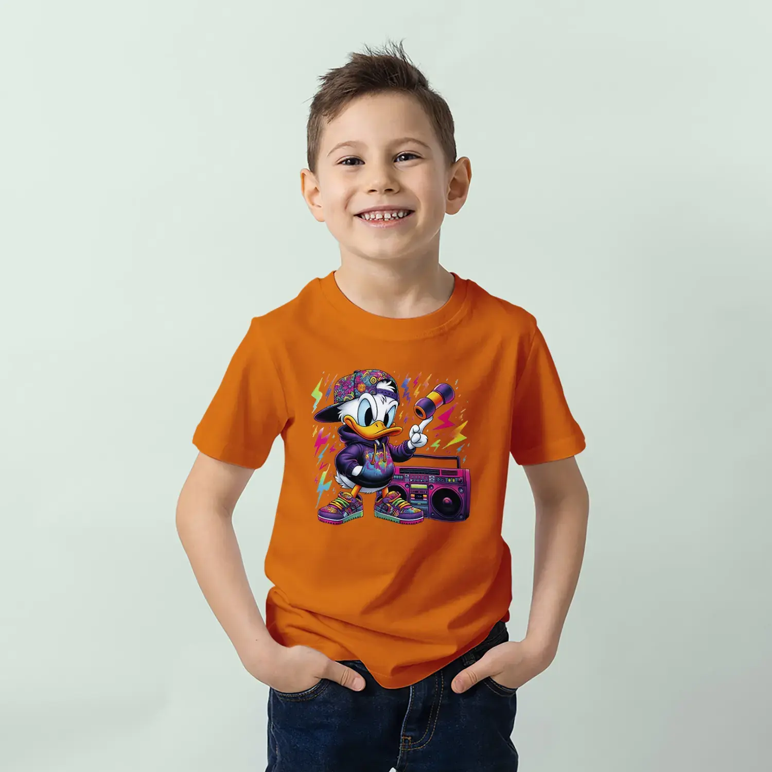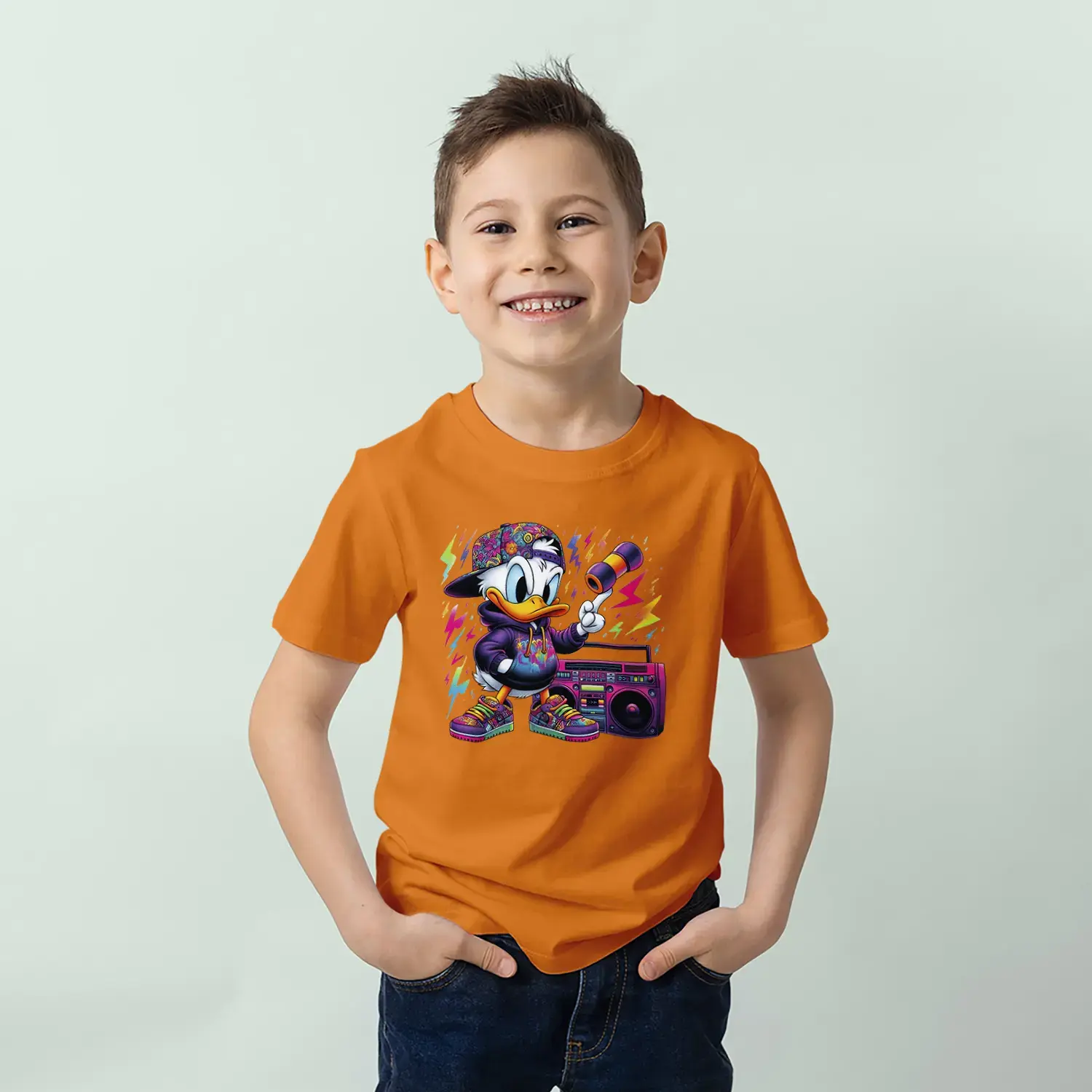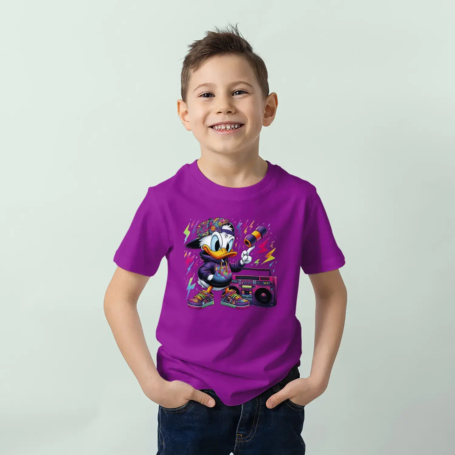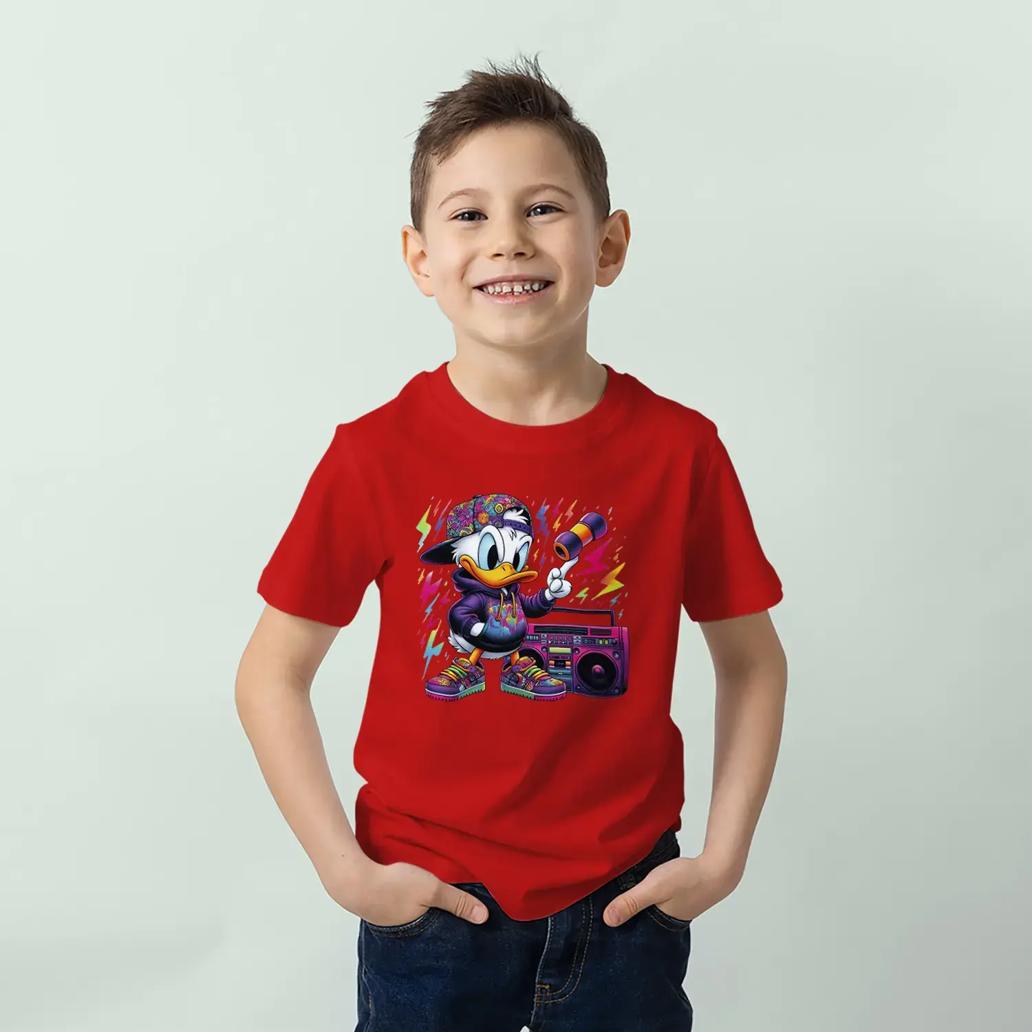 Grafiti Tarz Ördek Baskılı Erkek Çocuk Tişört