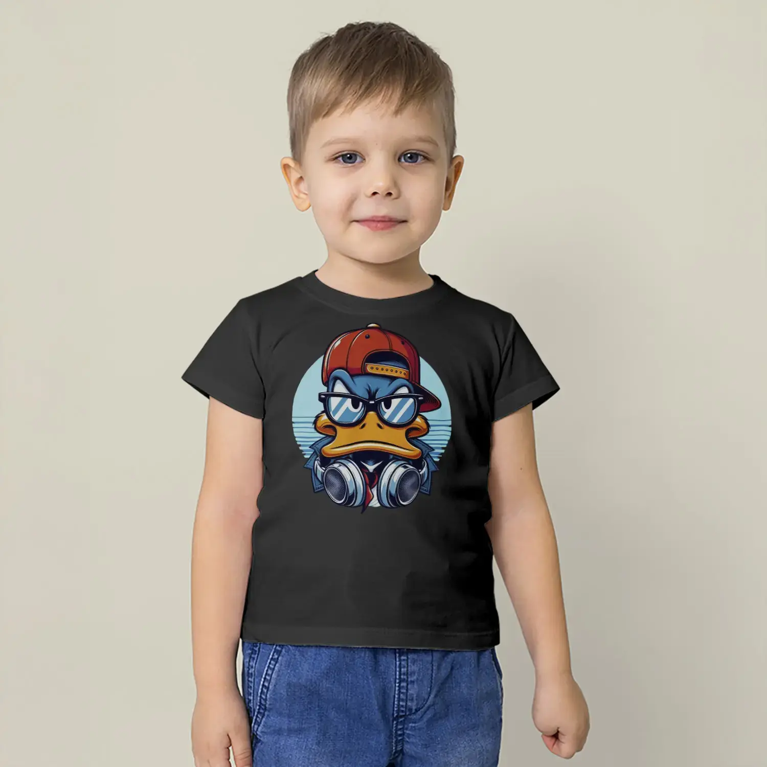 Havalı Ördek Kulaklıklı Hip Hop Baskılı Erkek Çocuk Tişört