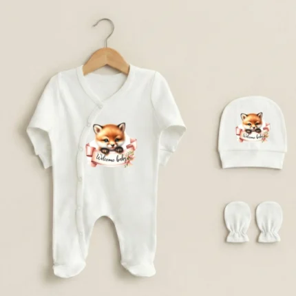Welcome Baby Tilki Baskılı 3’lü Bebek Tulumu