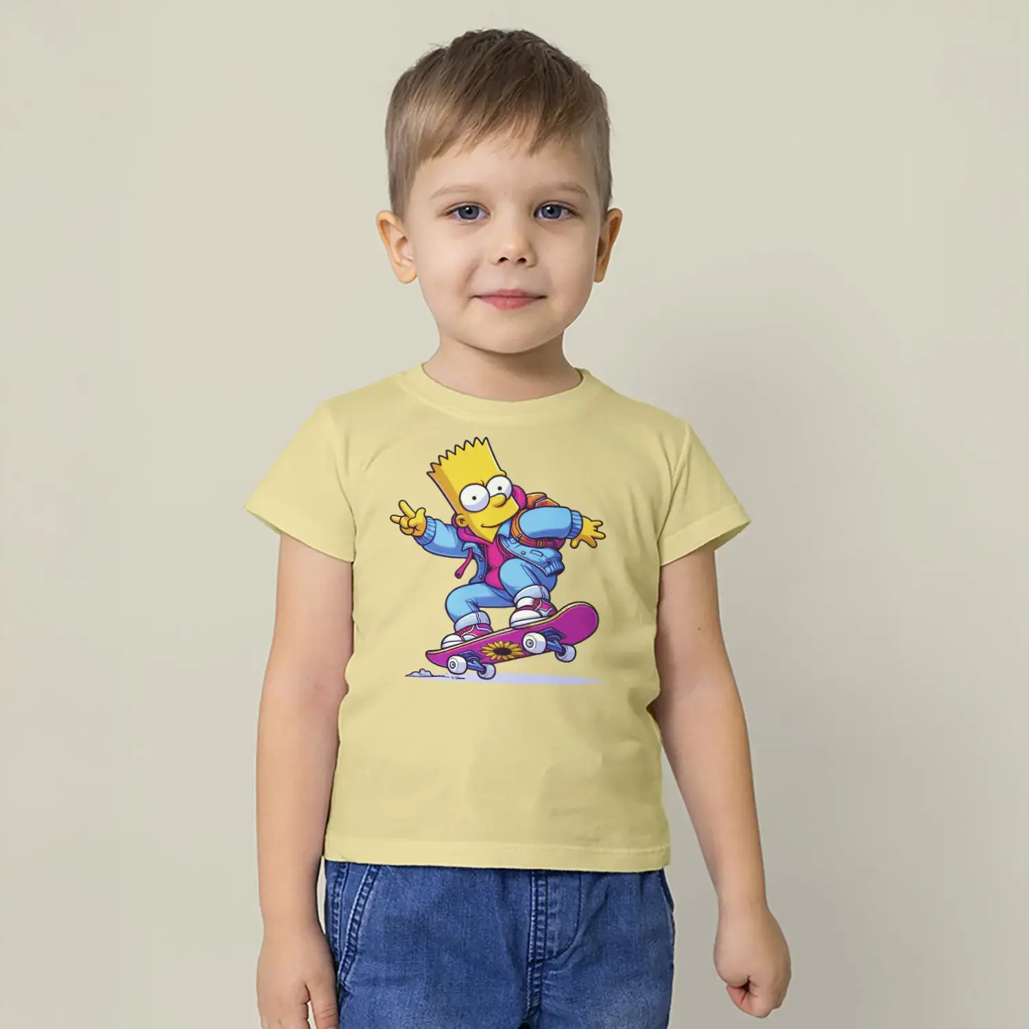 Kaykaycı Sarı Çocuk Karakter Baskılı Erkek Çocuk Tişört
