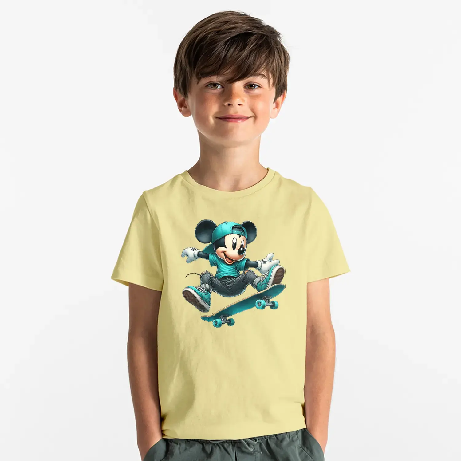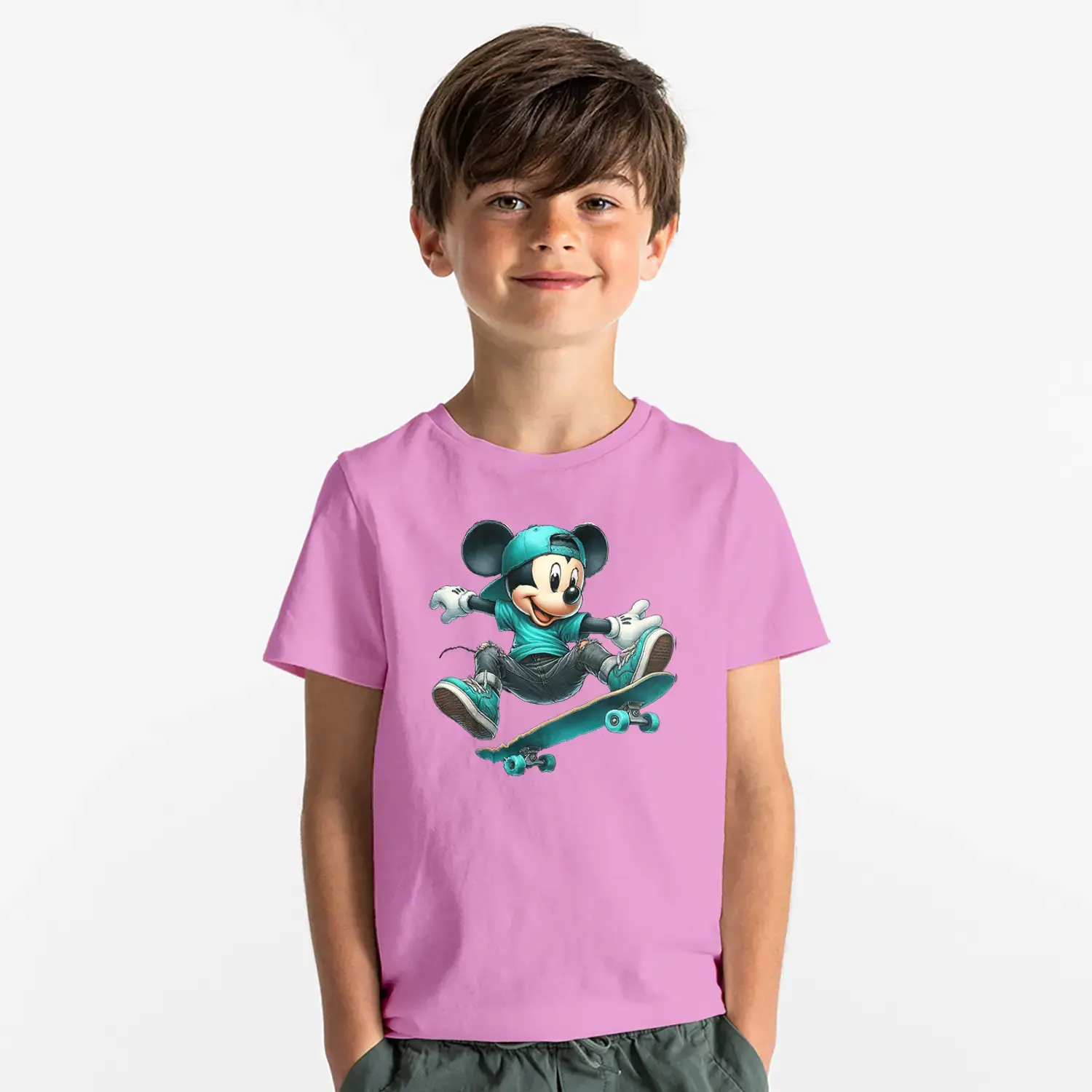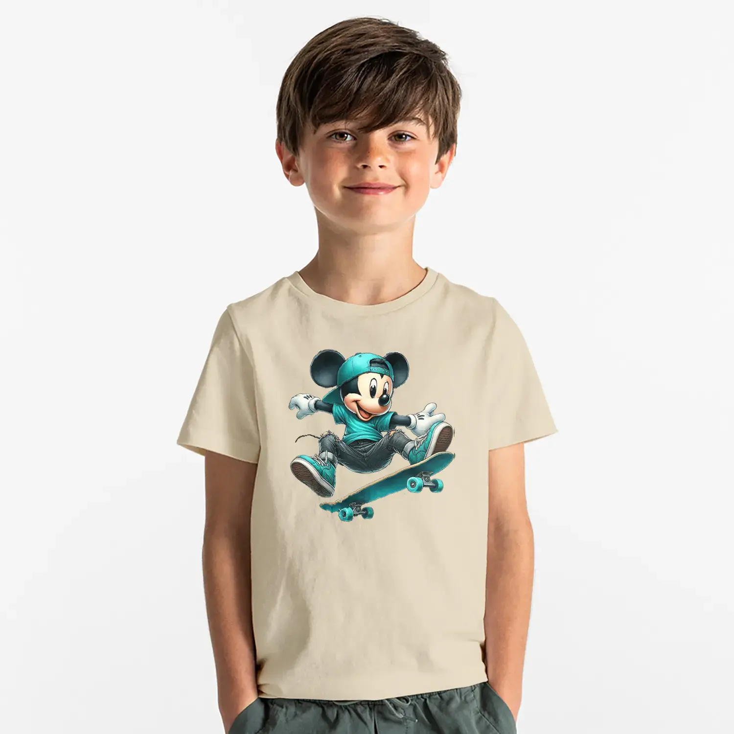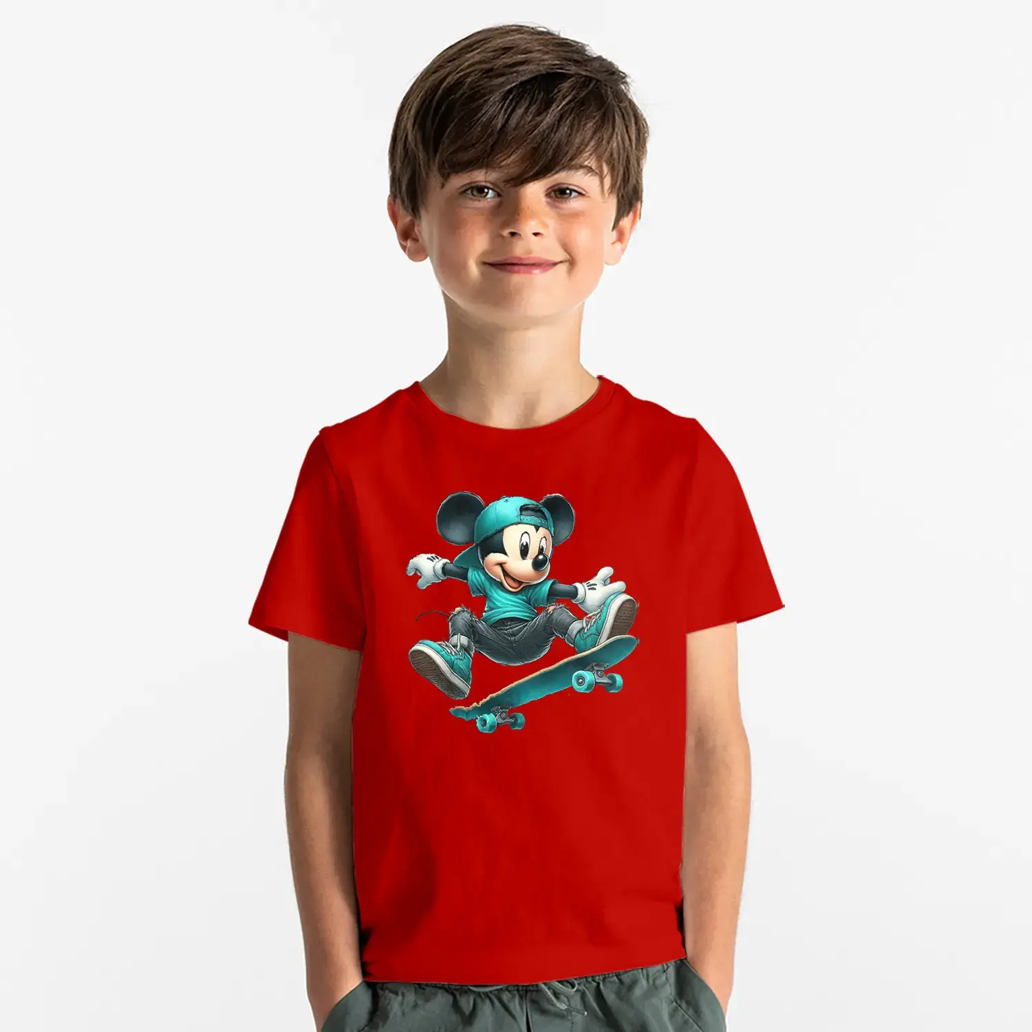 Kaykaycı Sevimli Fare Baskılı Erkek Çocuk Tişört