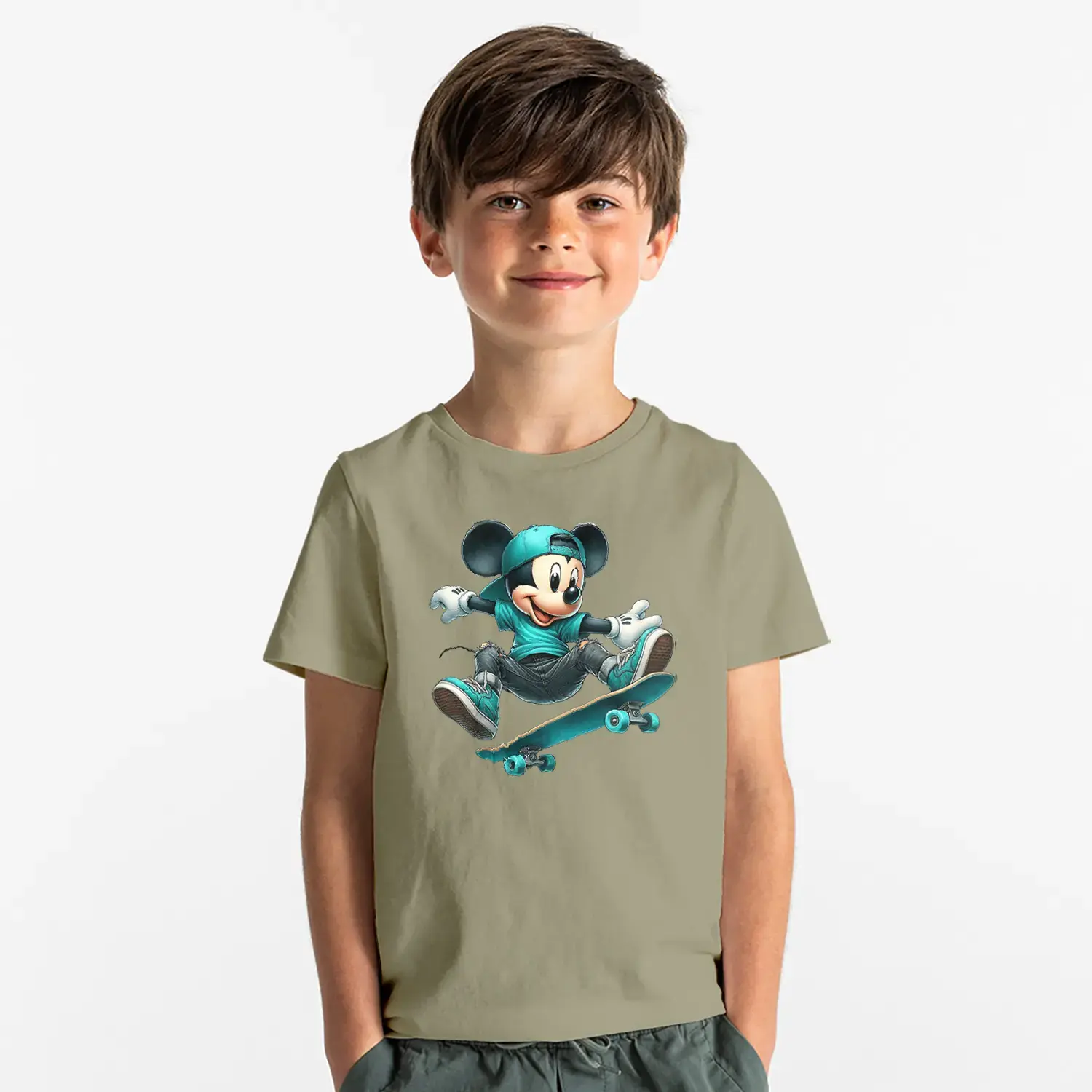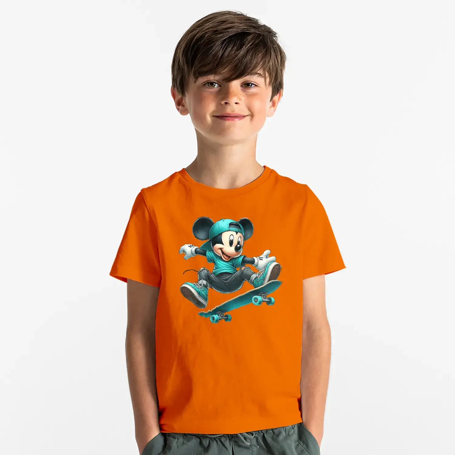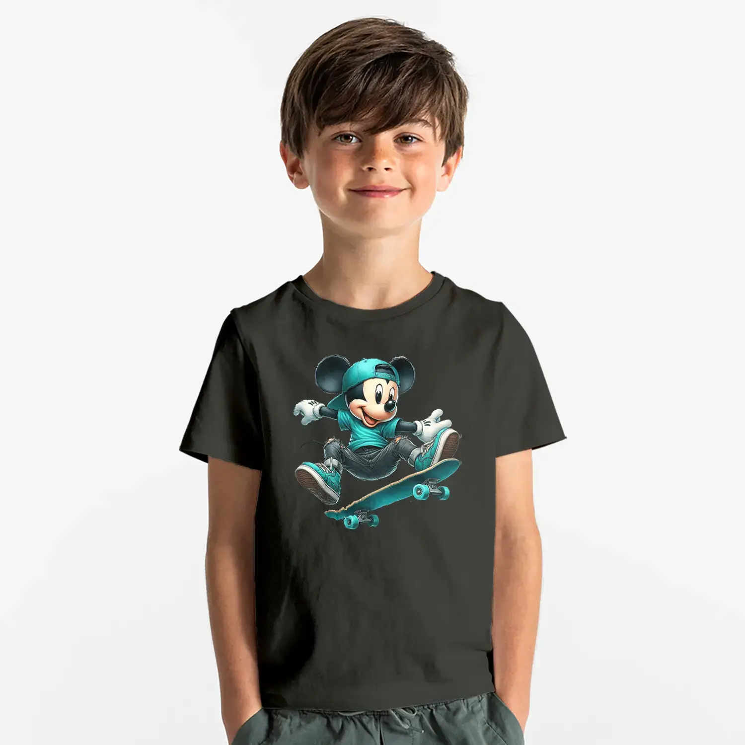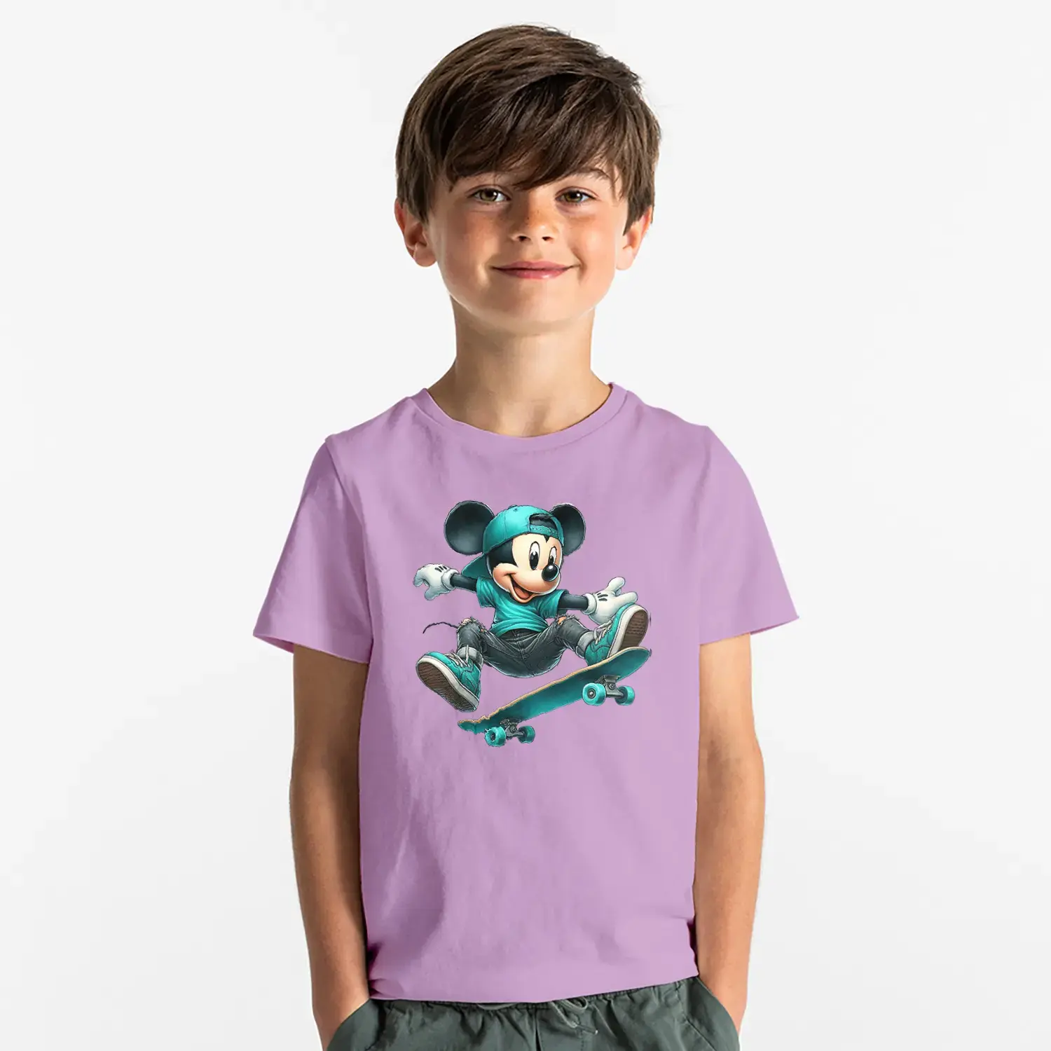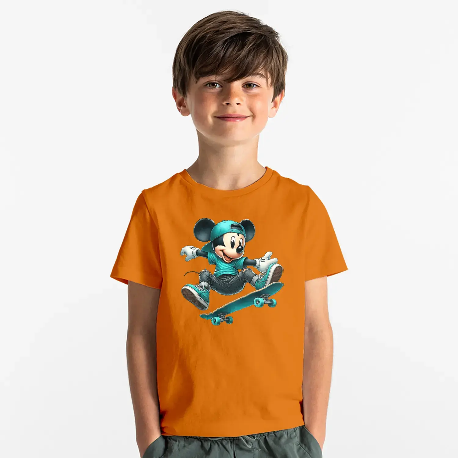 Kaykaycı Sevimli Fare Baskılı Erkek Çocuk Tişört