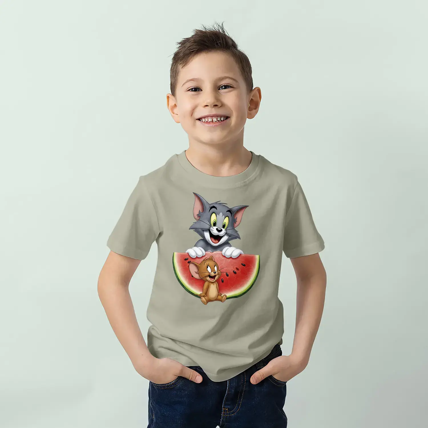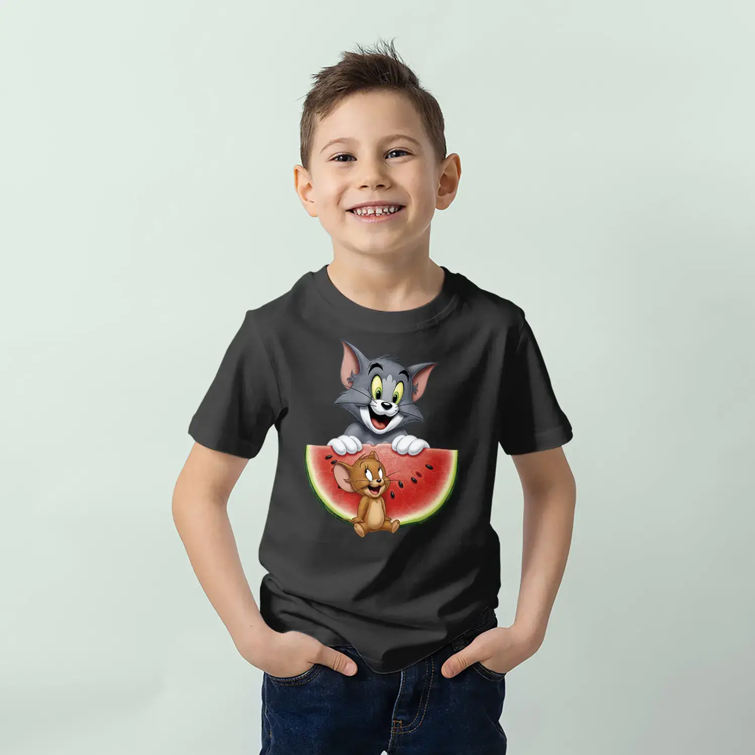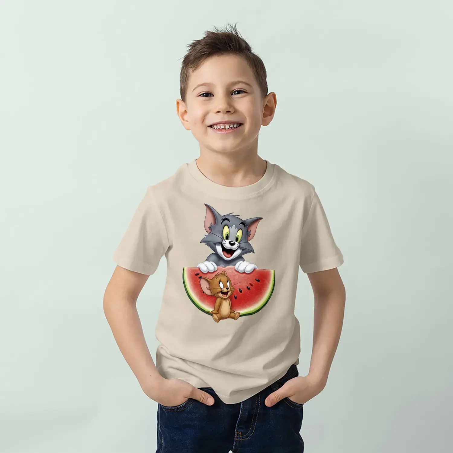 Kedi Fare Karpuz Eğlencesi Baskılı Erkek Çocuk Tişört