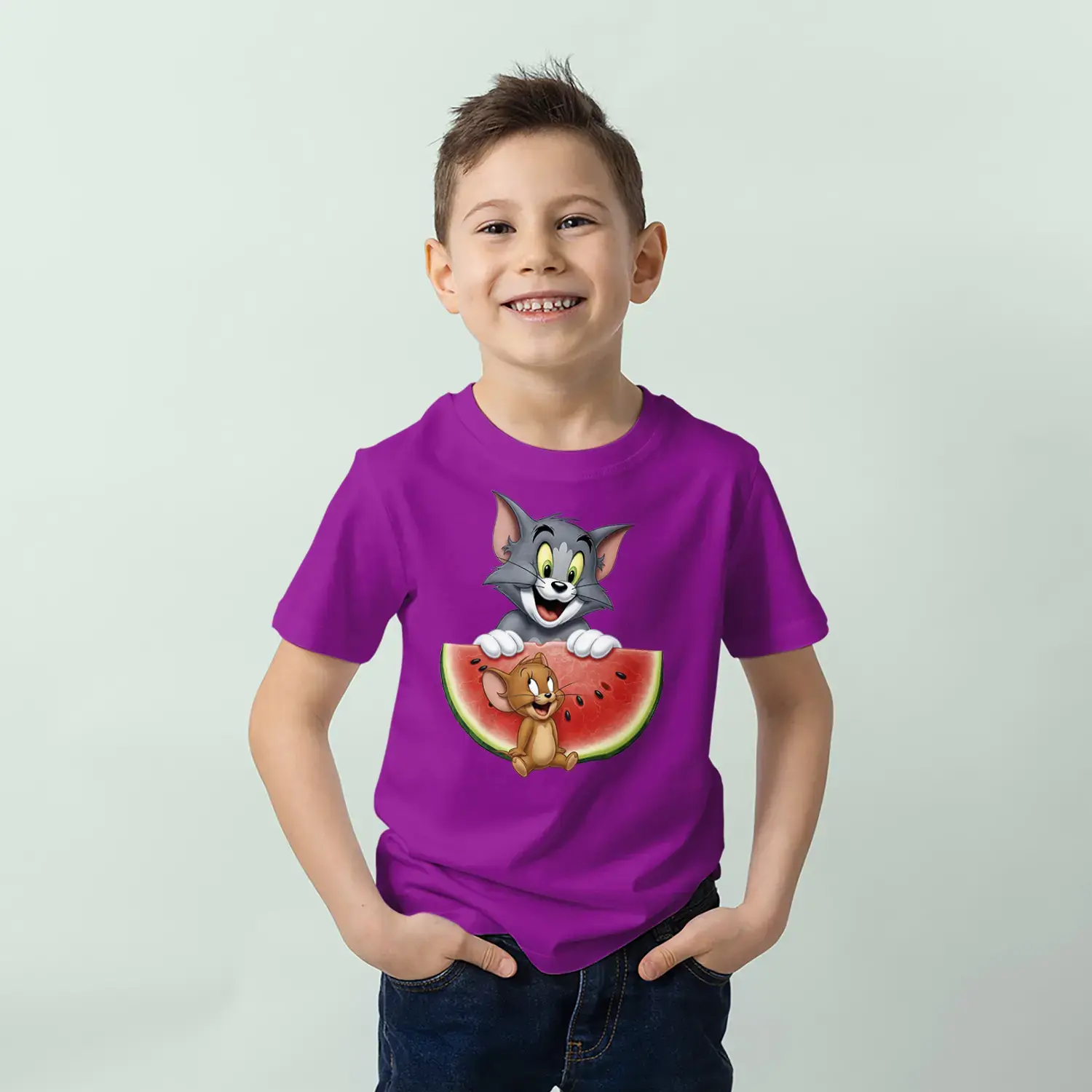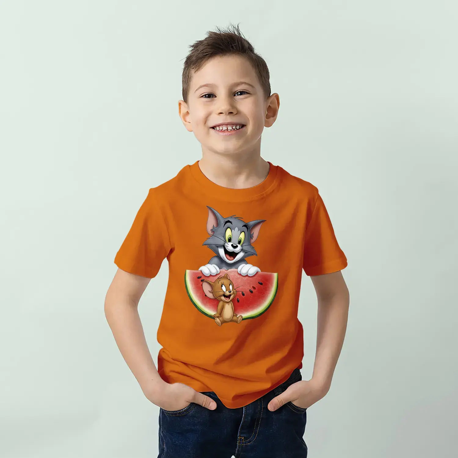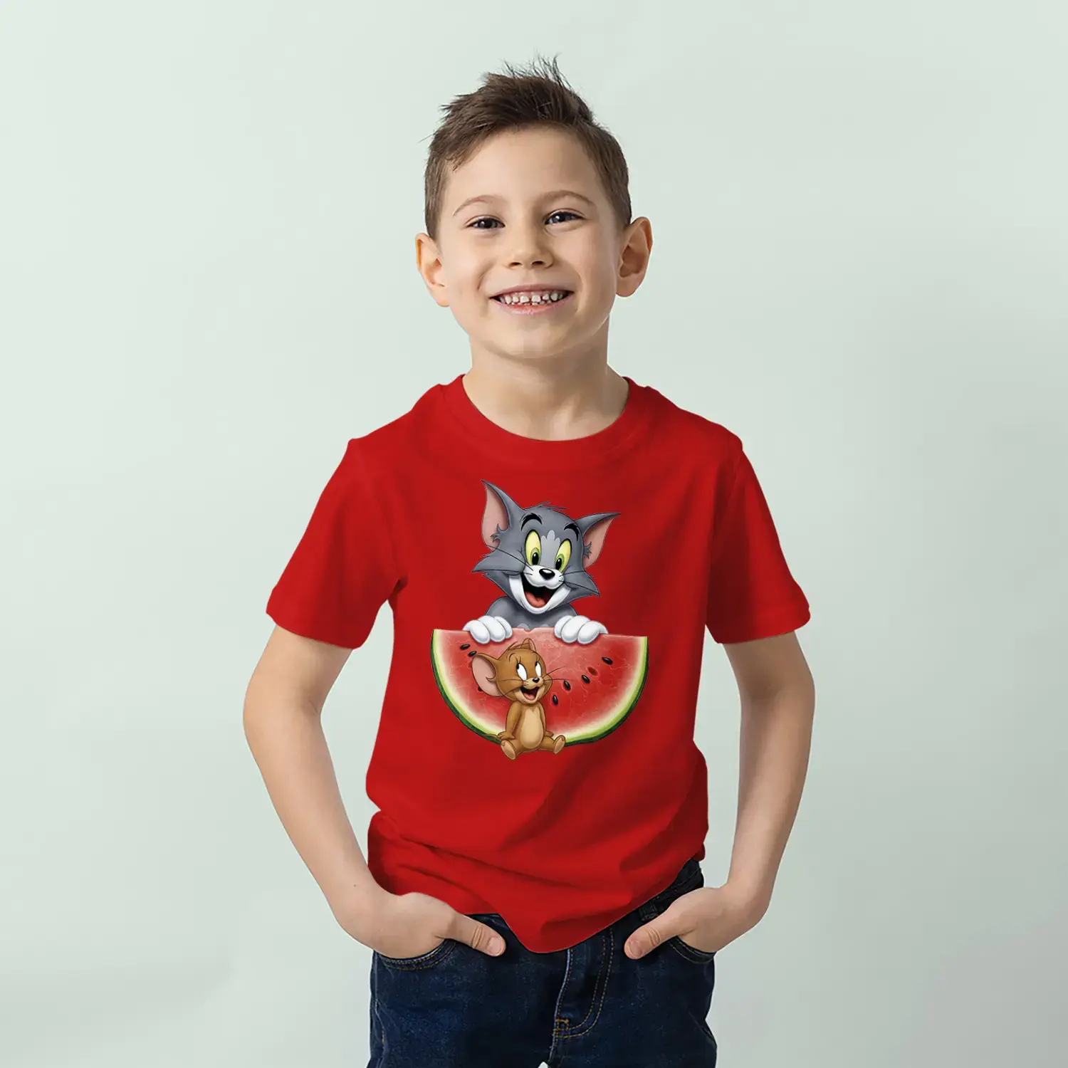 Kedi Fare Karpuz Eğlencesi Baskılı Erkek Çocuk Tişört