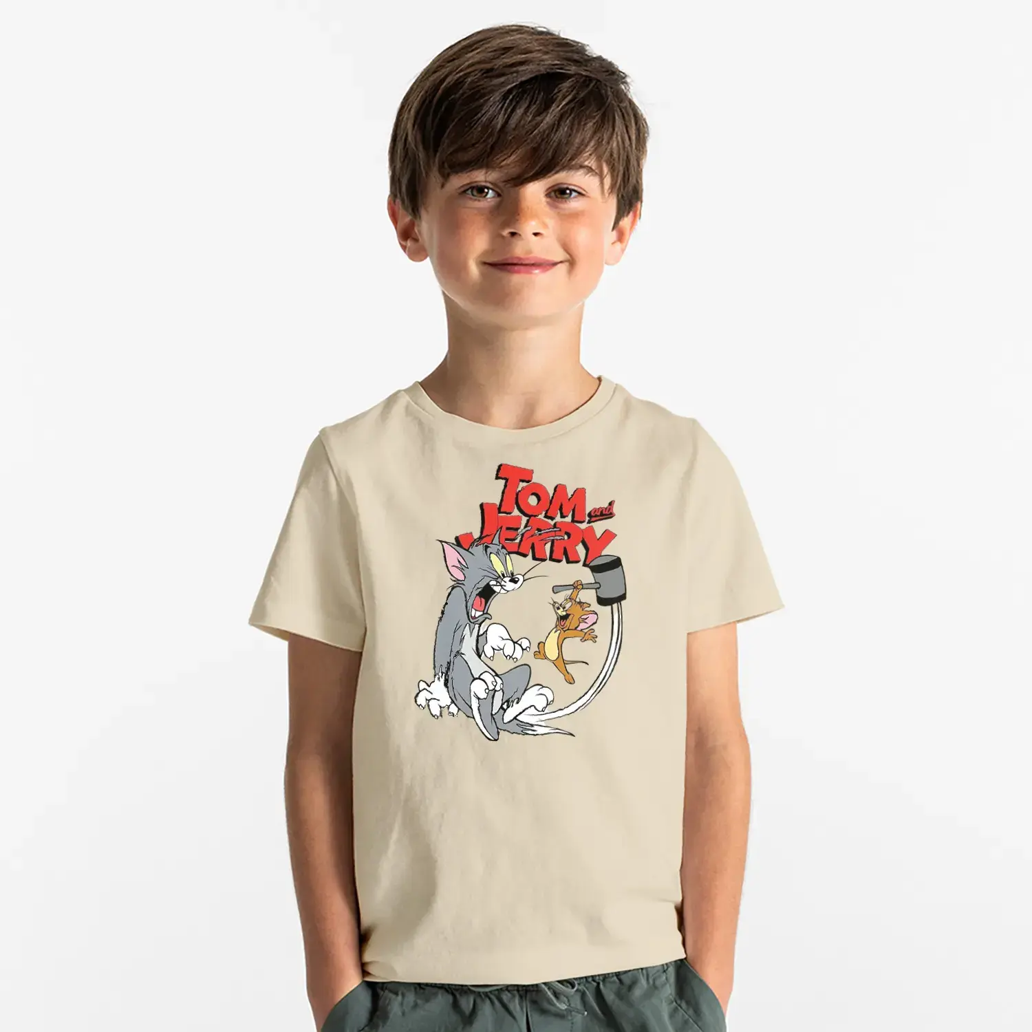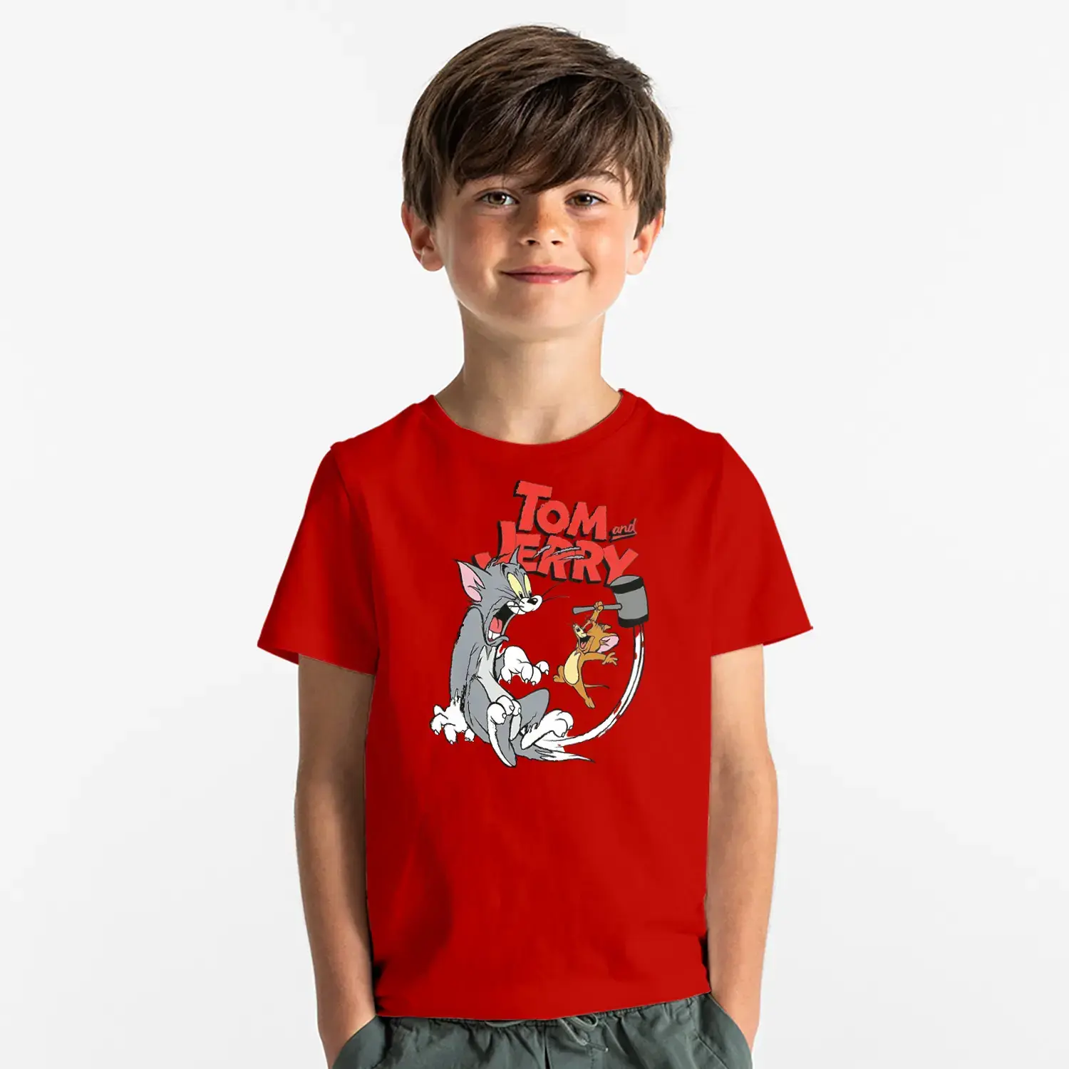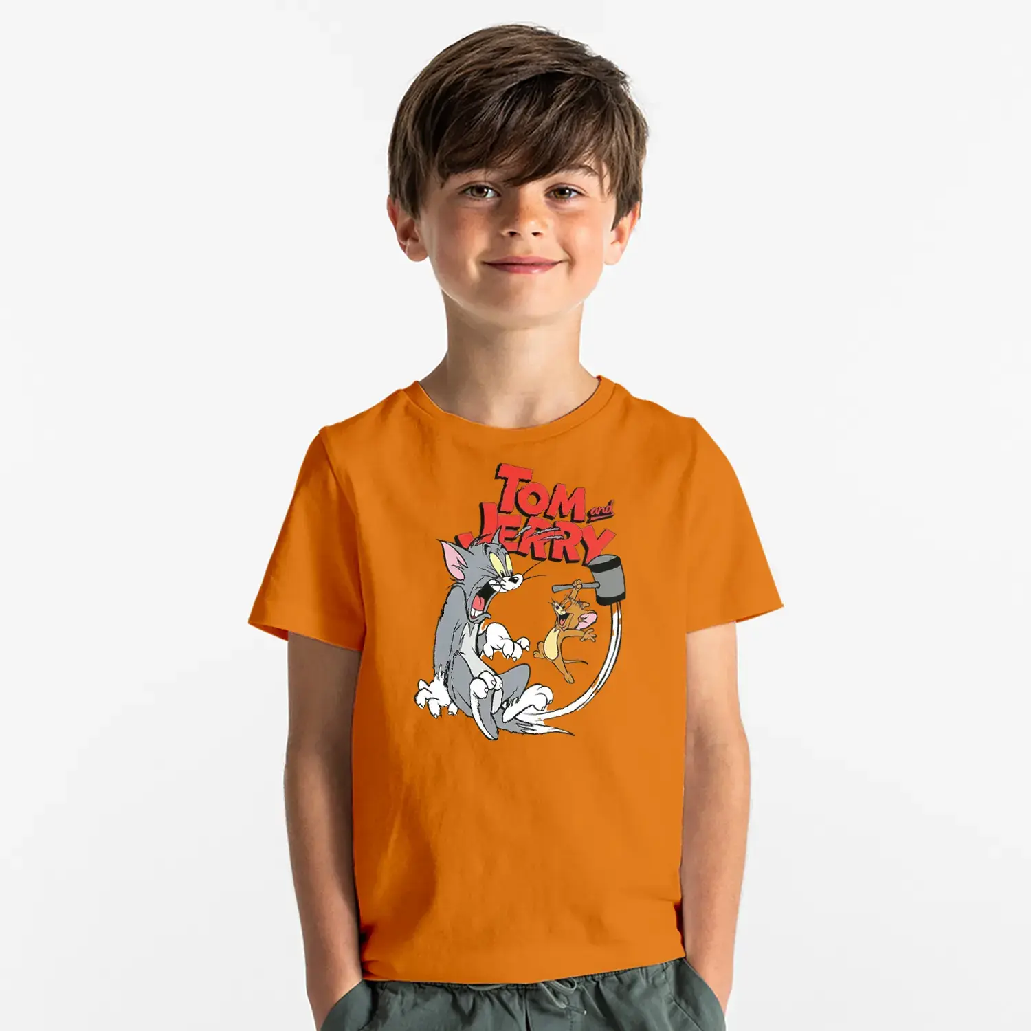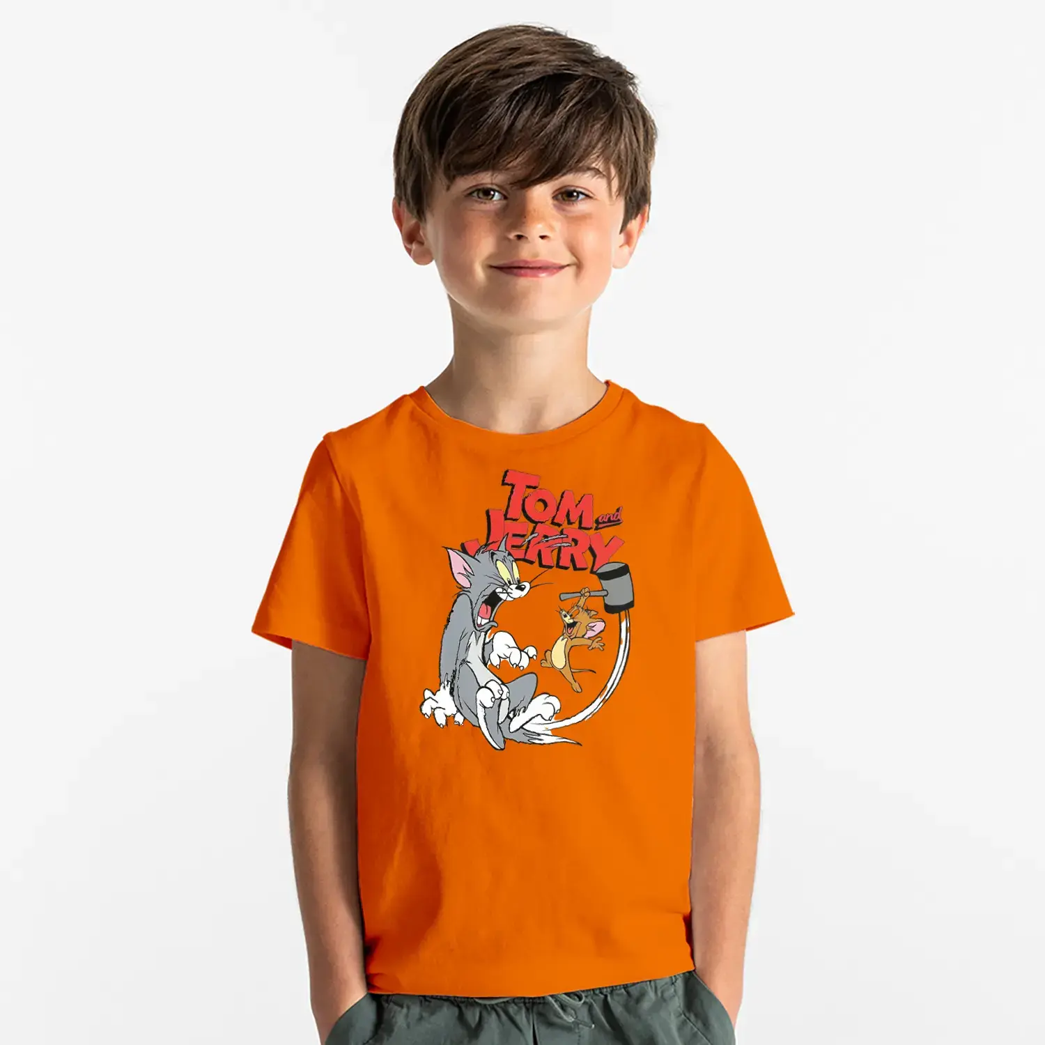 Kedi Fare Kovalamaca Eğlenceli Baskılı Erkek Çocuk Tişört