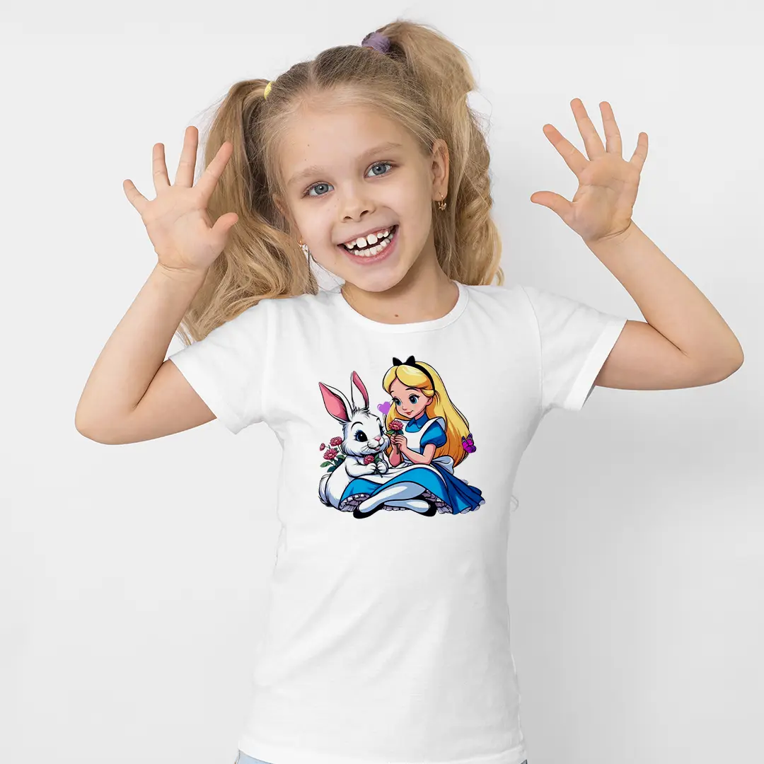 Kız Çocuk Alice Harikalar Diyarı Baskılı Tişört – Çizgi Karakter Çocuk Tişört