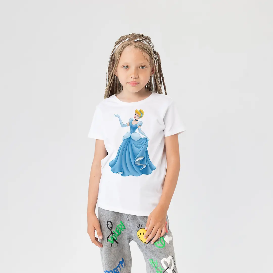 Kız Çocuk Cinderella Prenses Baskılı Tişört – Disney Prenses Temalı Çocuk Tişört