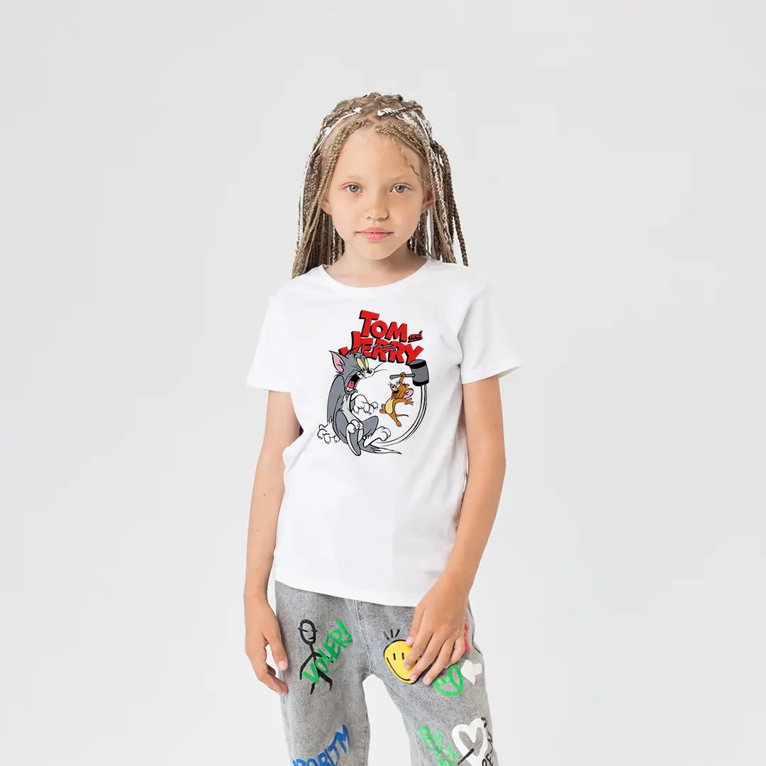 Kız Çocuk Tom ve Jerry Baskılı Tişört – Eğlenceli Çizgi Film Karakterli Çocuk Tişört