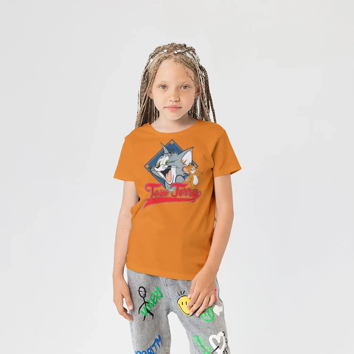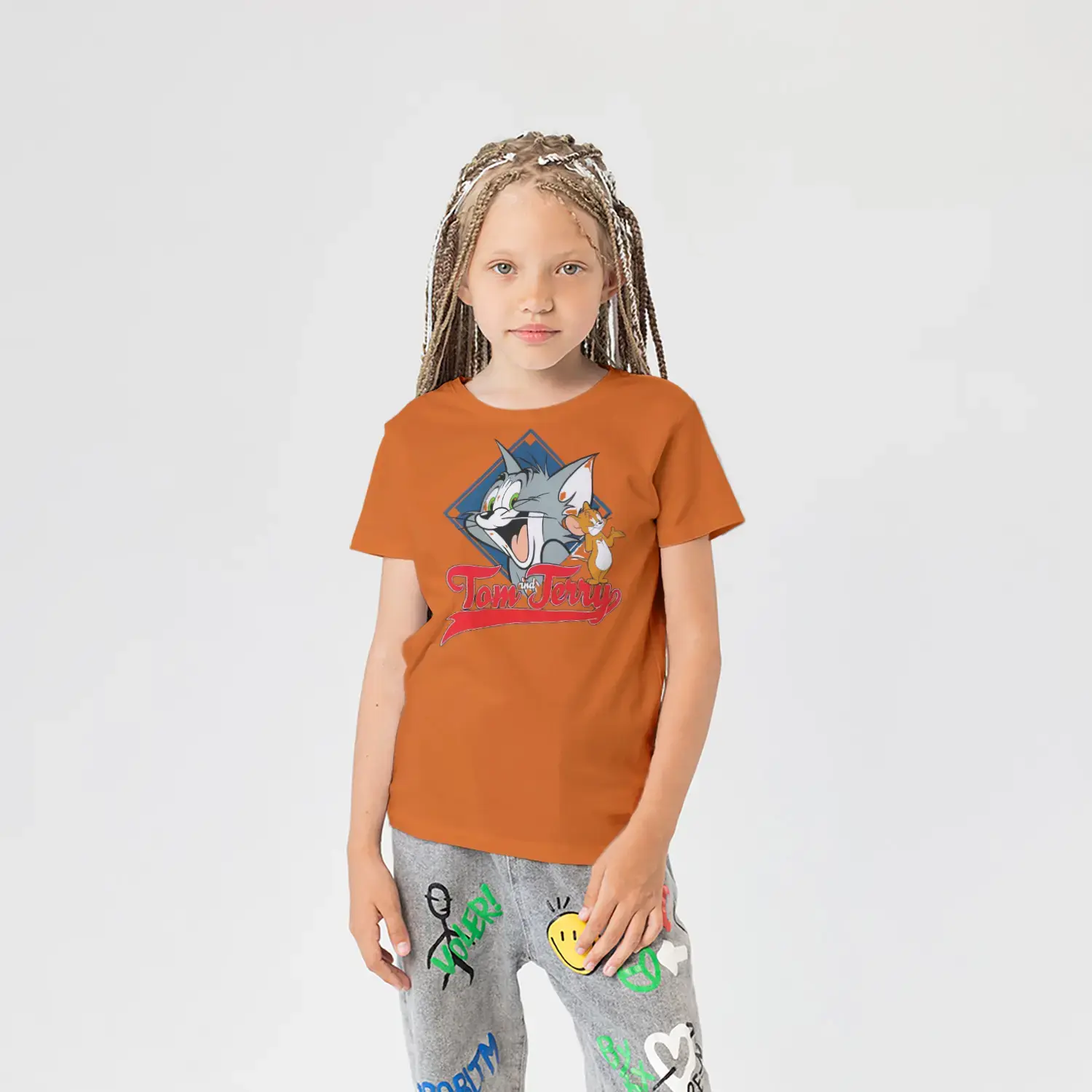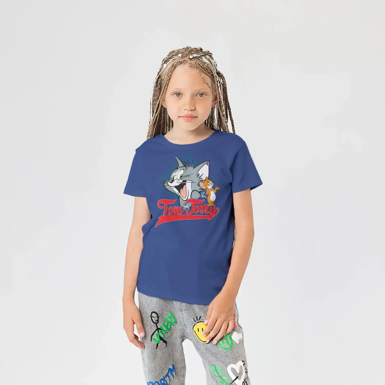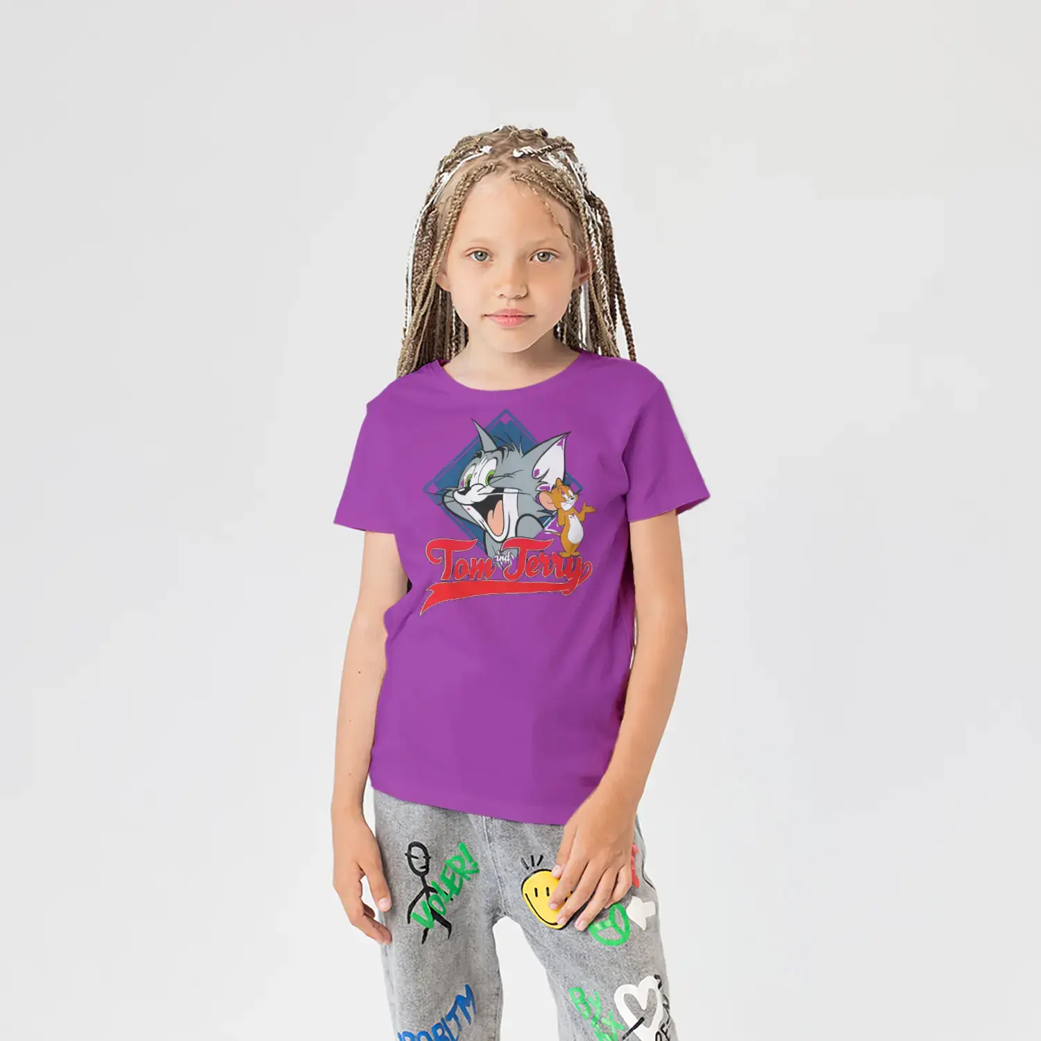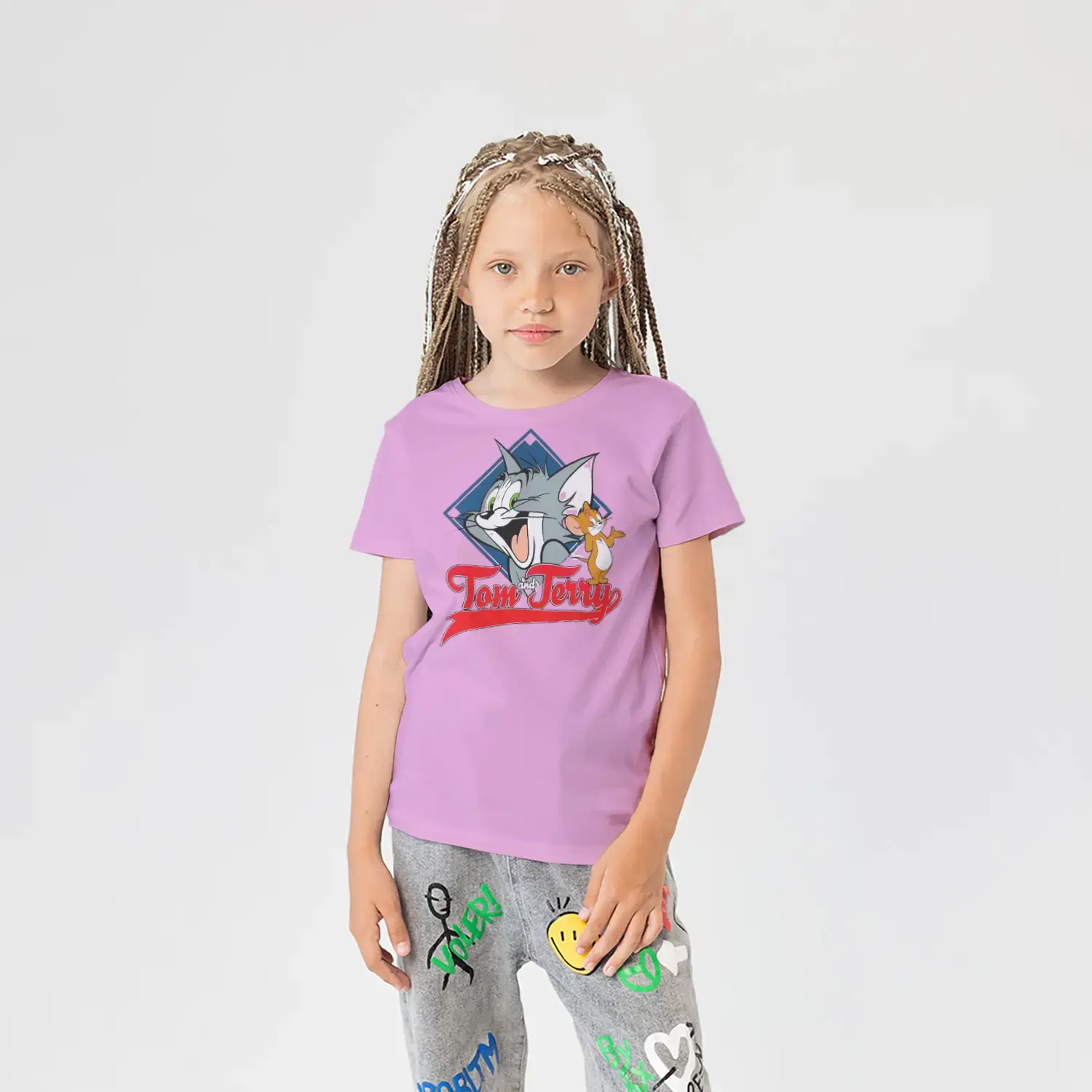 Komik Kedi ve Fare İkili Karikatür Baskılı Kız Çocuk Tişörtü
