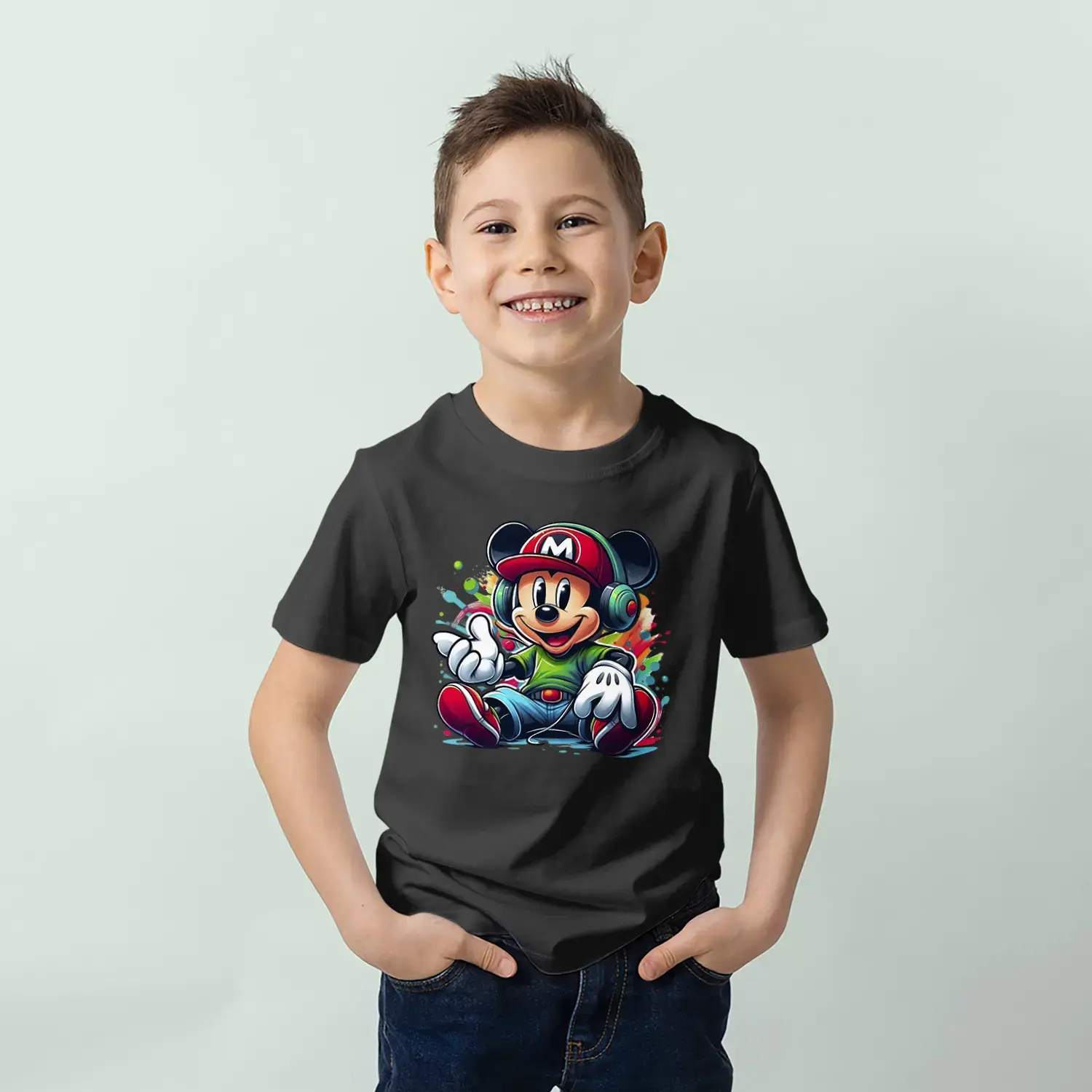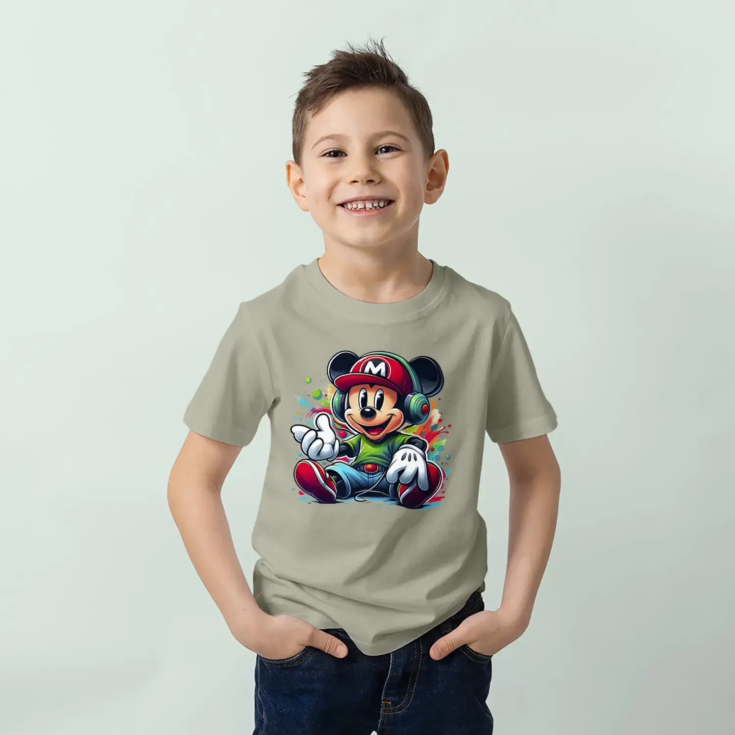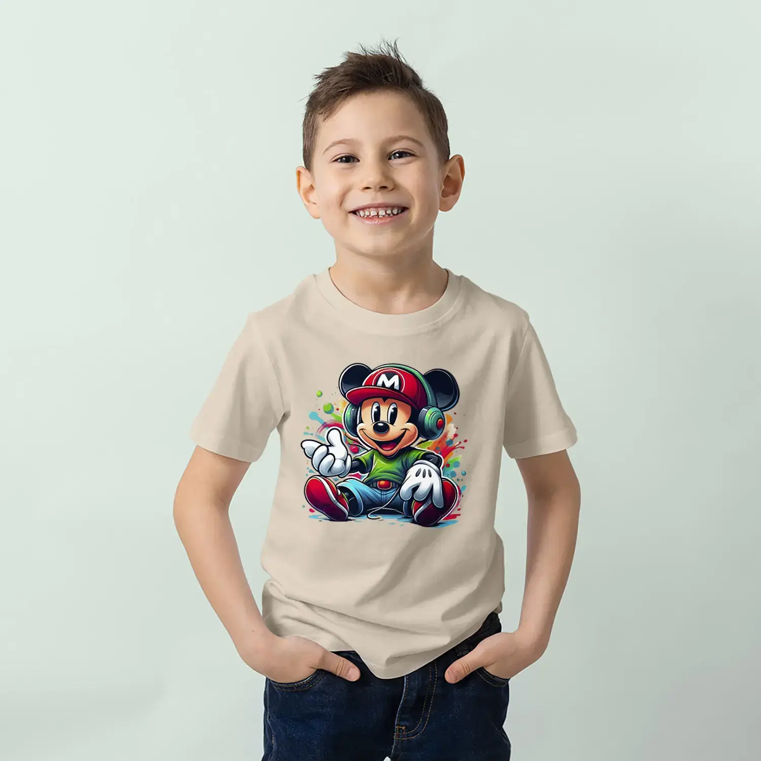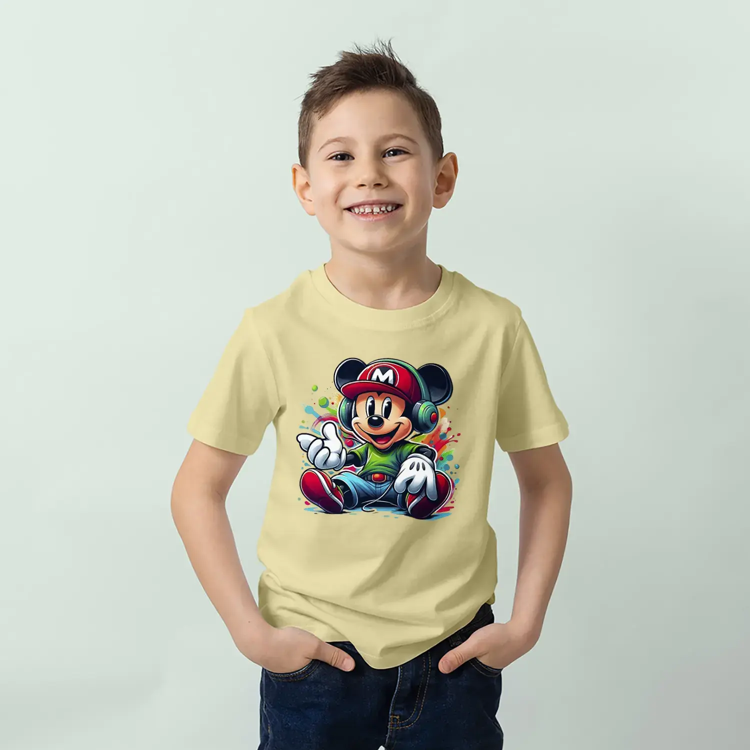 Kulaklıklı Sevimli Fare Baskılı Erkek Çocuk Tişört