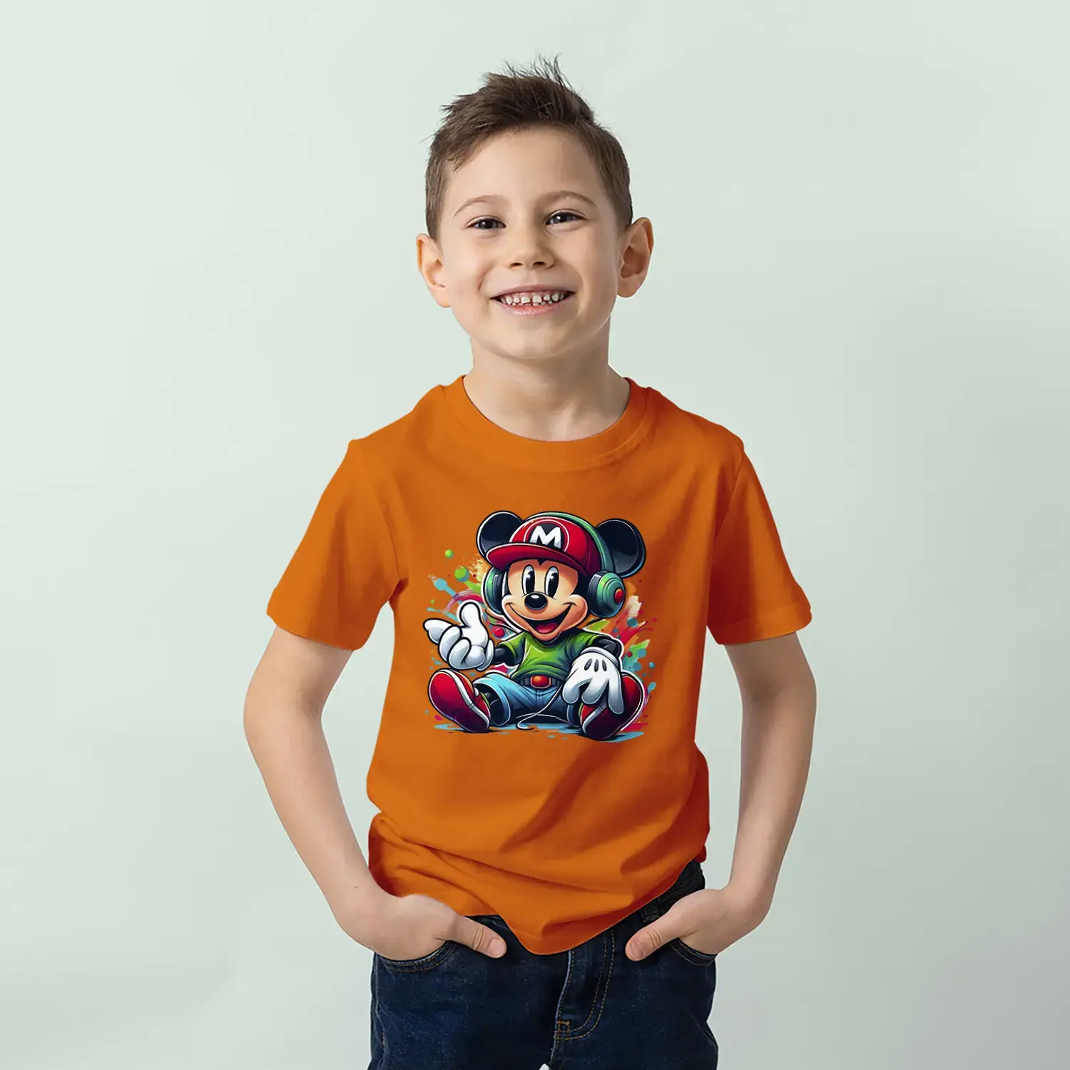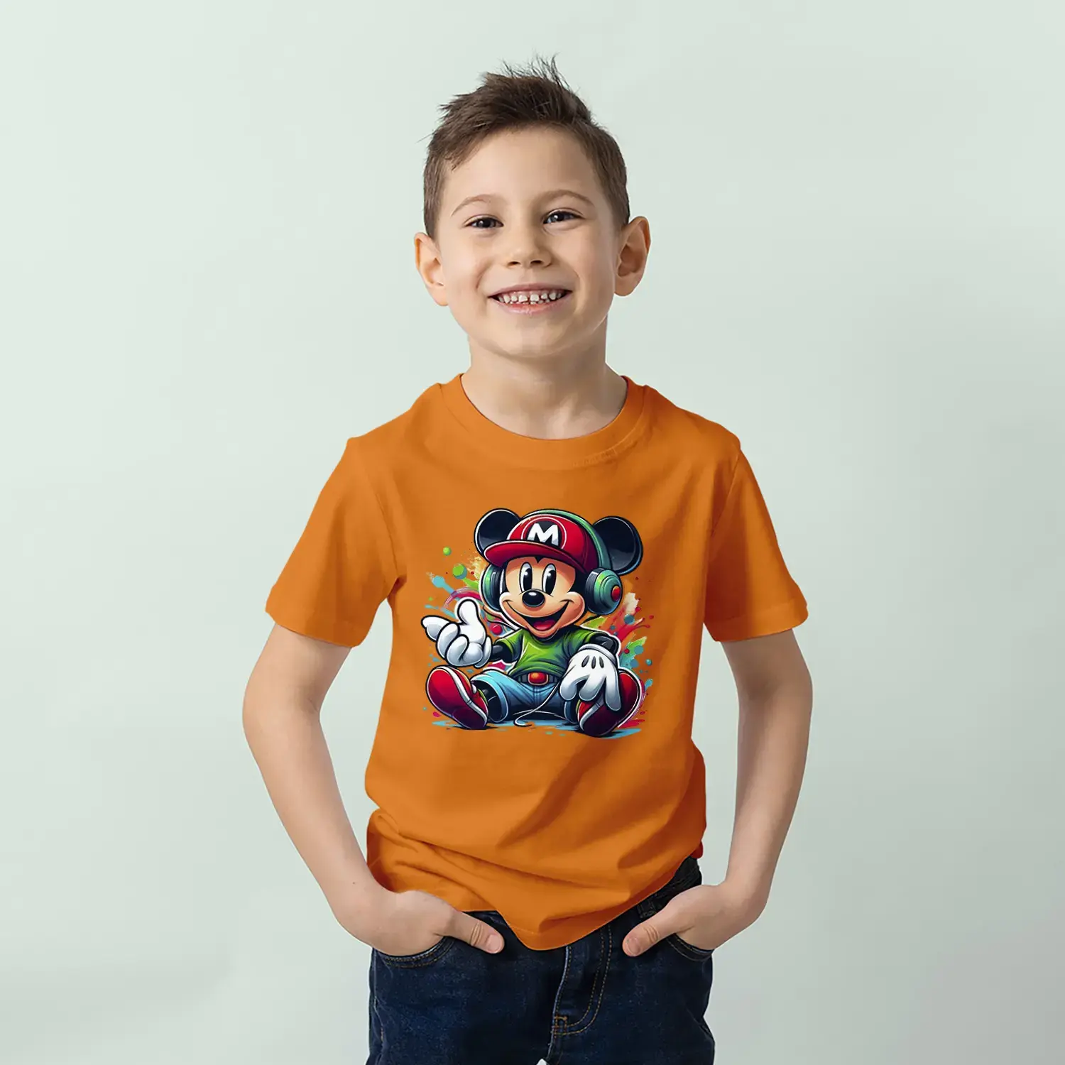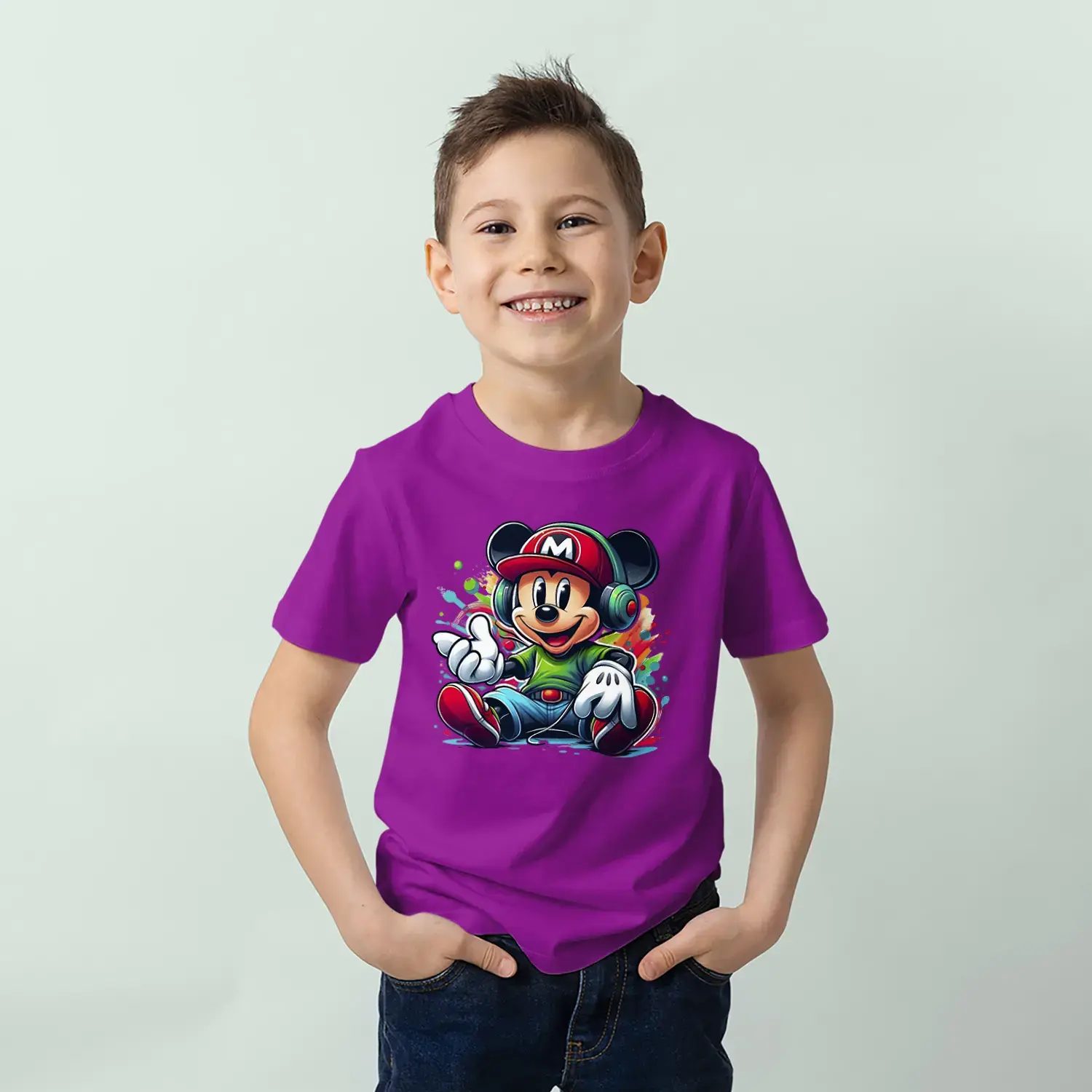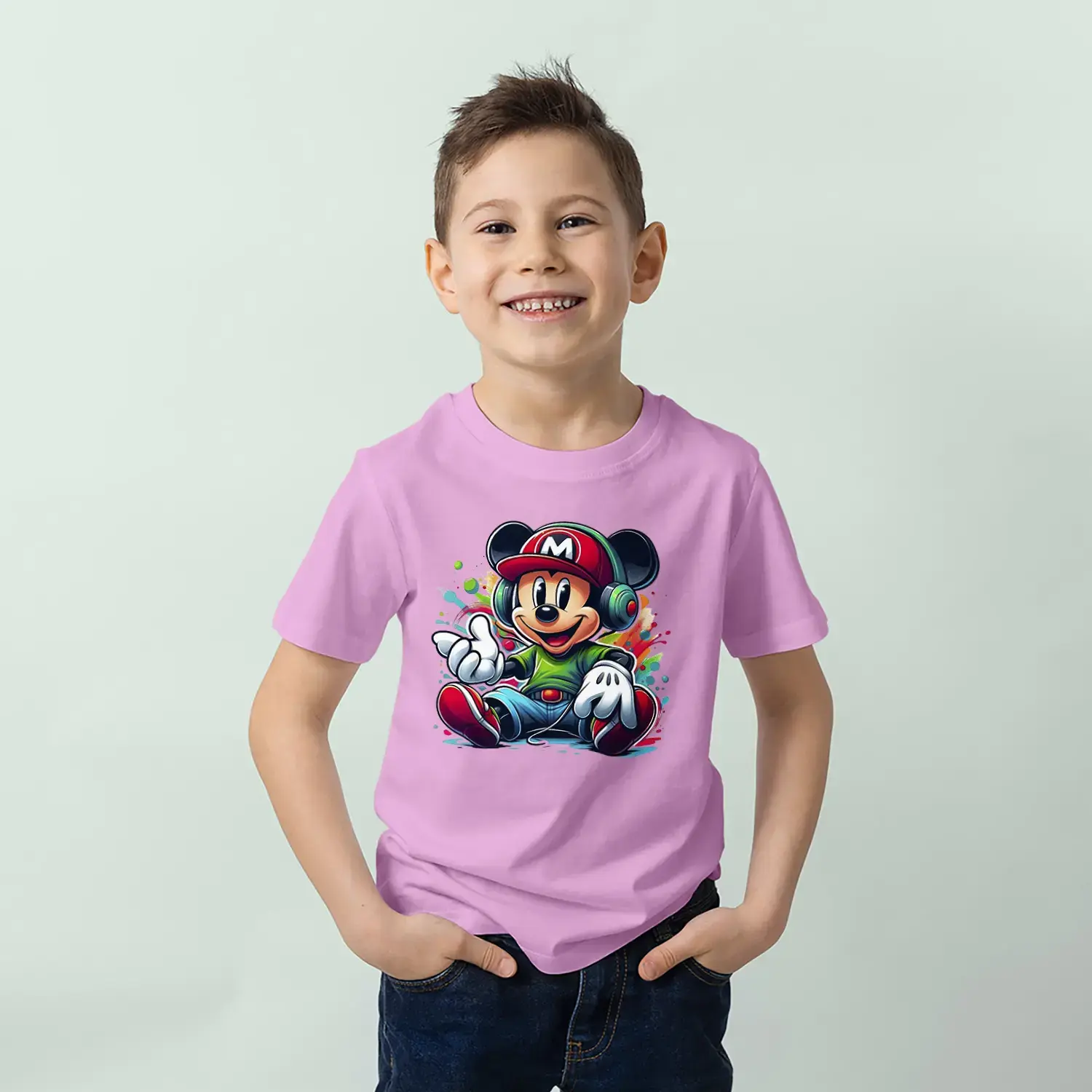 Kulaklıklı Sevimli Fare Baskılı Erkek Çocuk Tişört