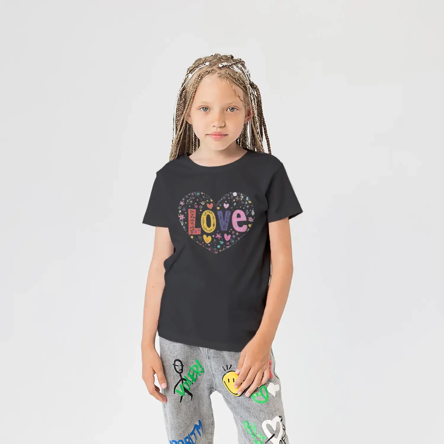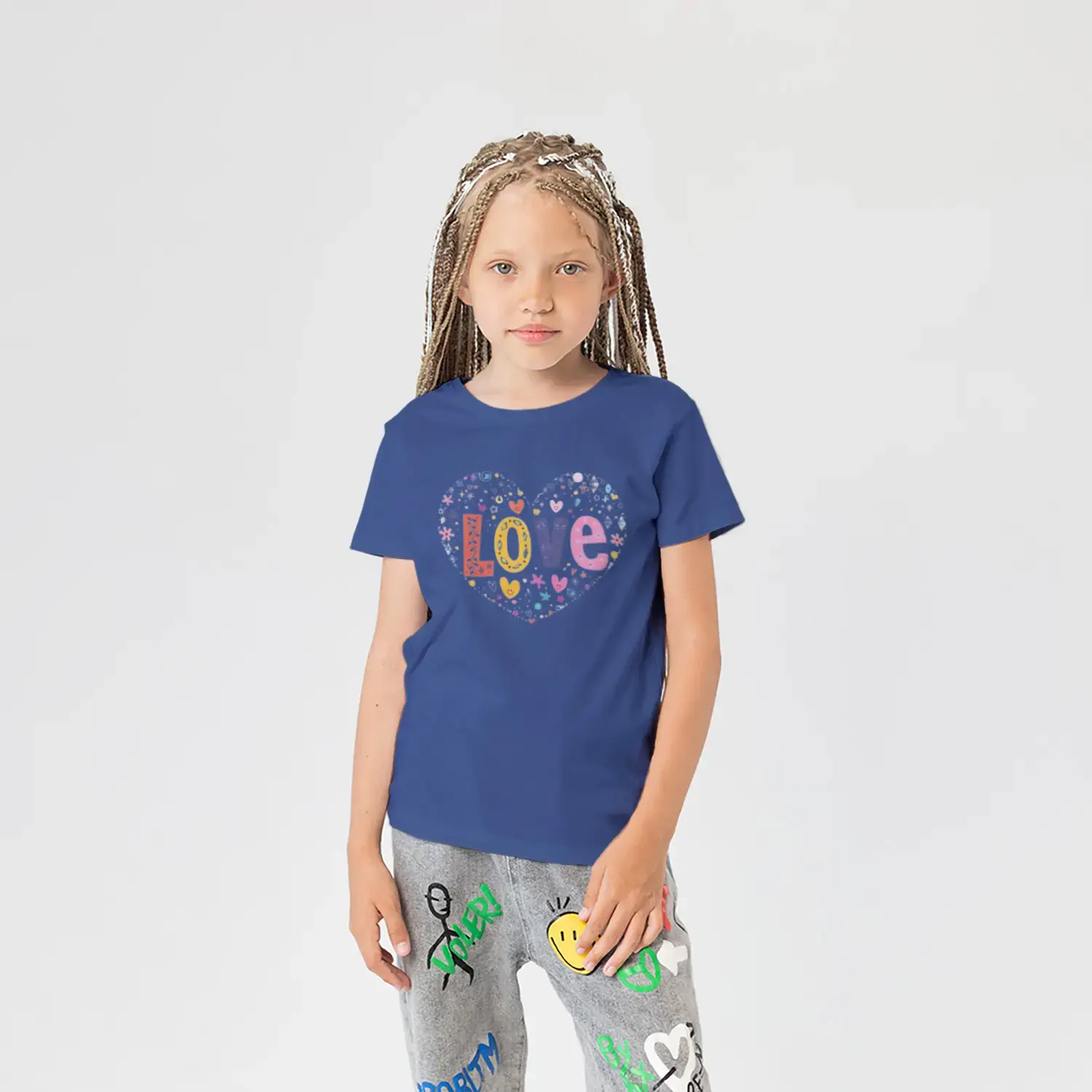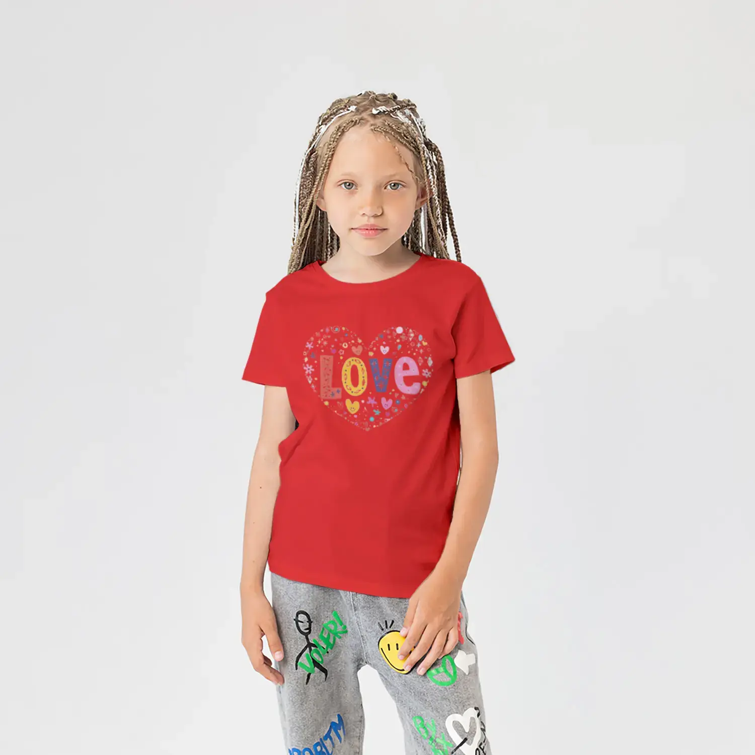 Love Kalp Renkli Harf Baskılı Kız Çocuk Tişörtü