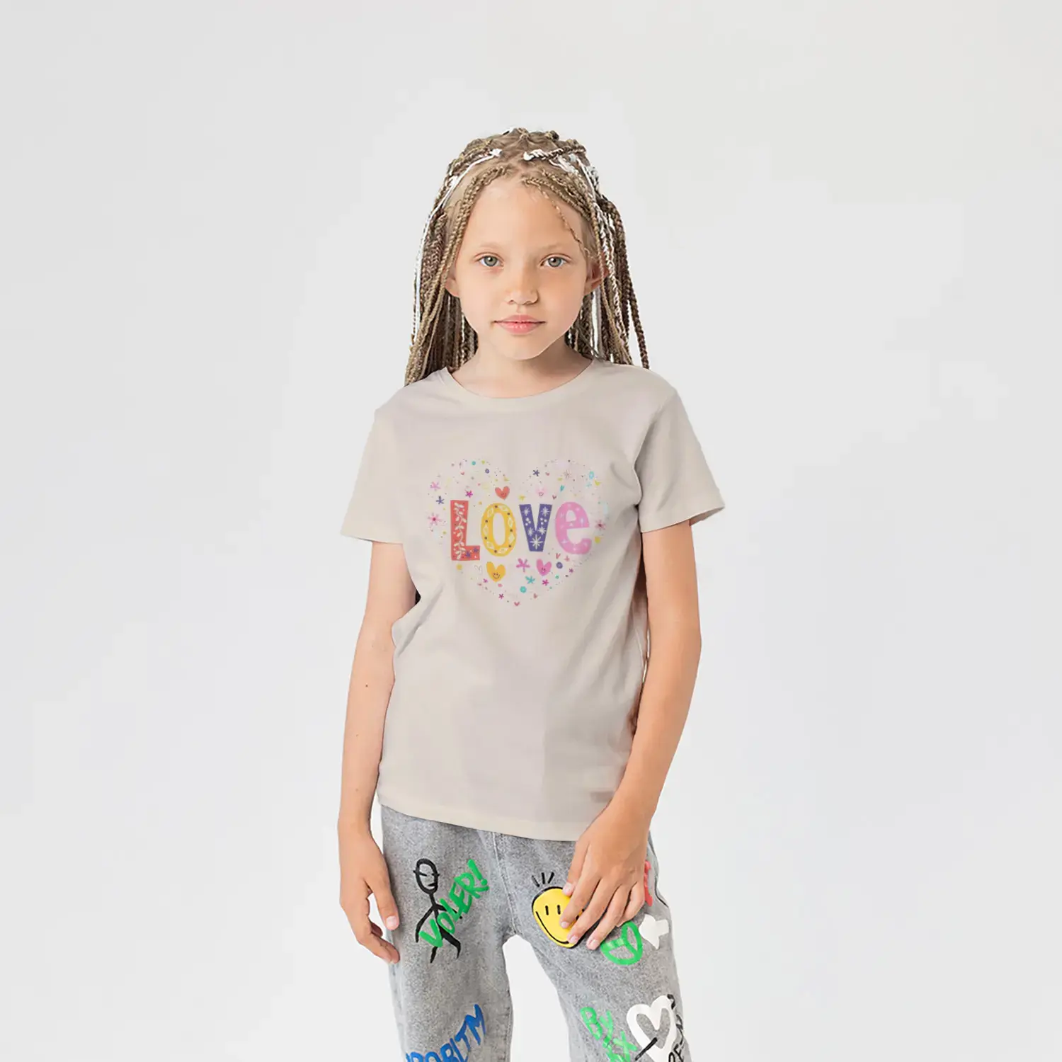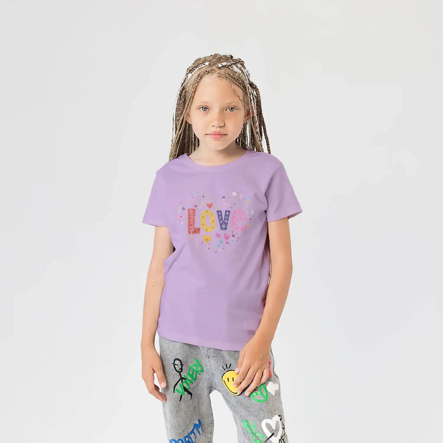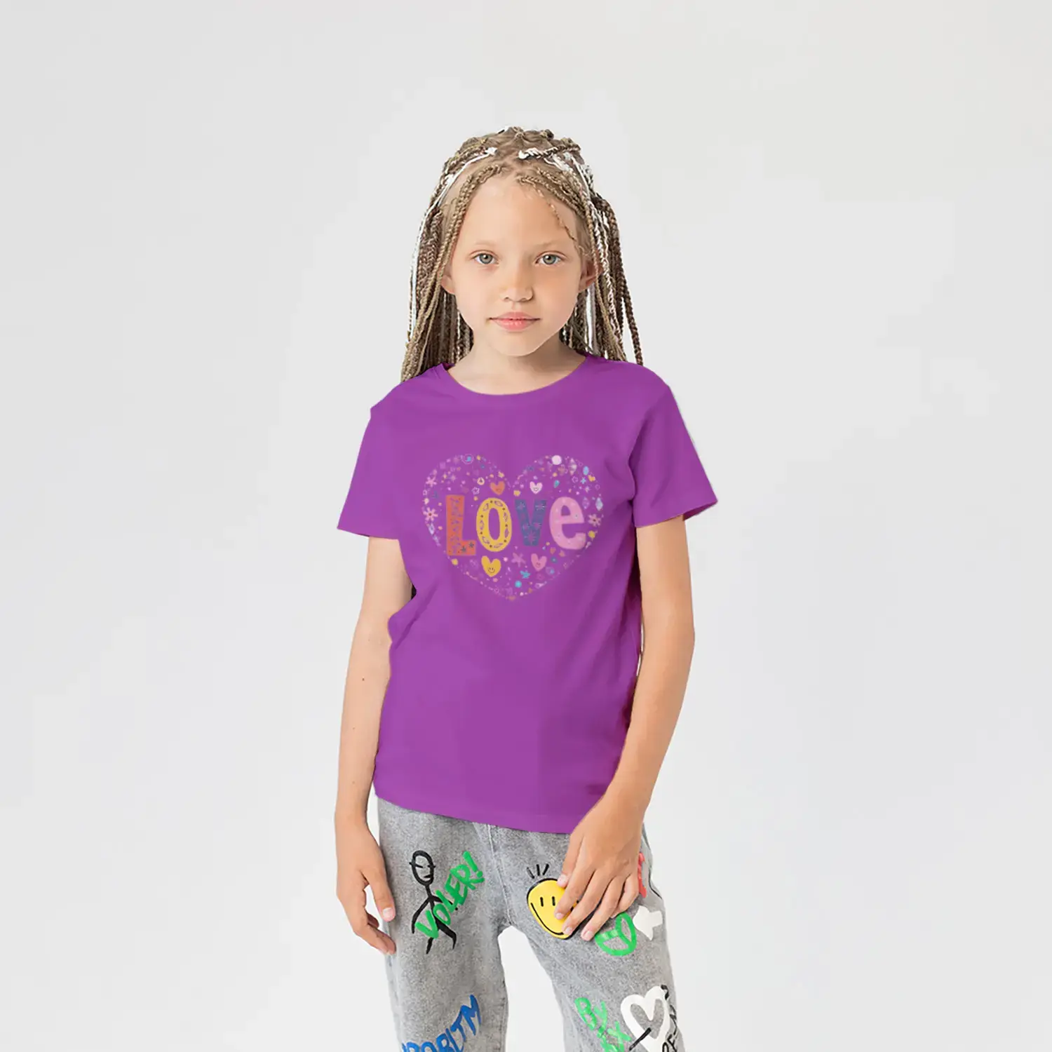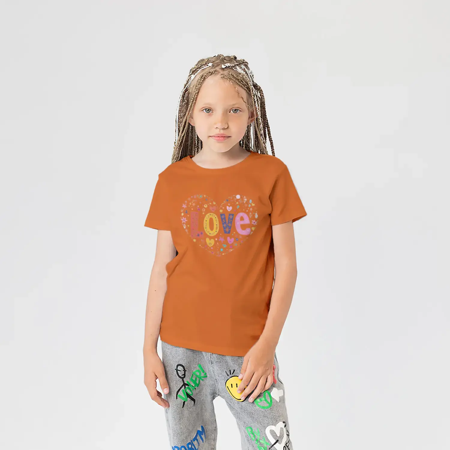 Love Kalp Renkli Harf Baskılı Kız Çocuk Tişörtü