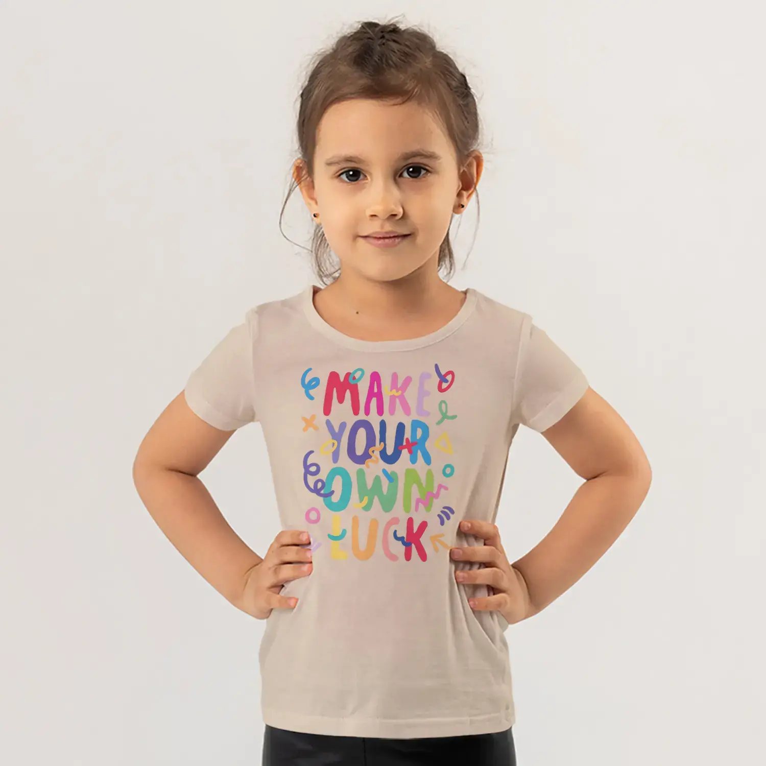 Make Your Own Luck Renkli Motivasyon Yazı Baskılı Kız Çocuk Tişörtü