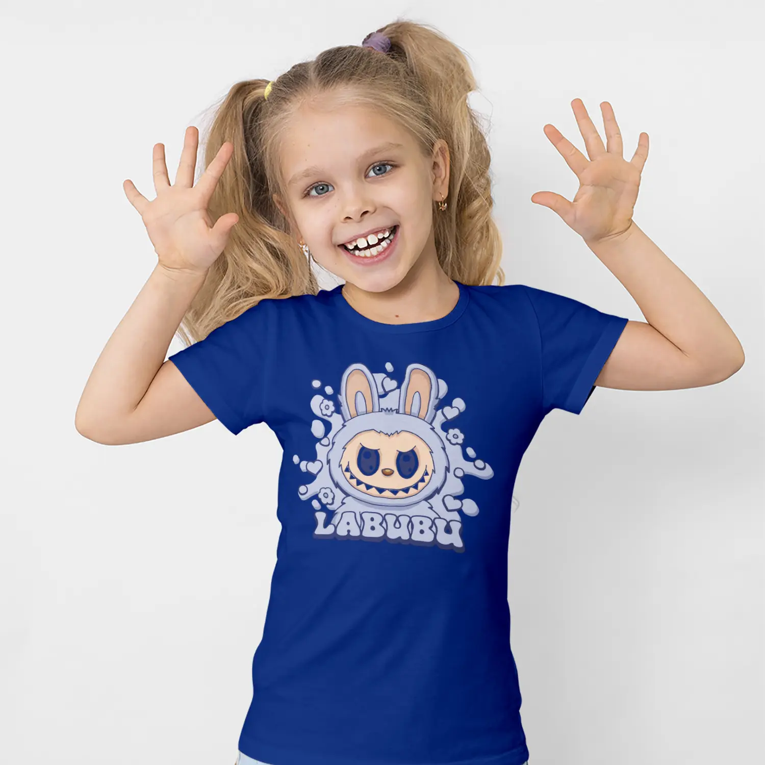 Mavi Tonlu Kızgın Tavşan Karikatür Figürlü Baskılı Kız Çocuk Tişörtü