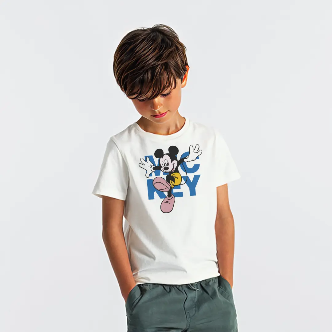 Mickey Mouse Erkek Çocuk Tişört – Mickey Yazı Baskılı Beyaz T-Shirt