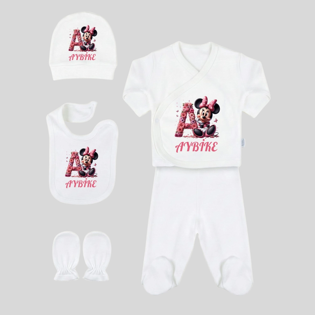Minnie Mouse Harf Motifli 5’li Hastane Çıkış Seti (2)