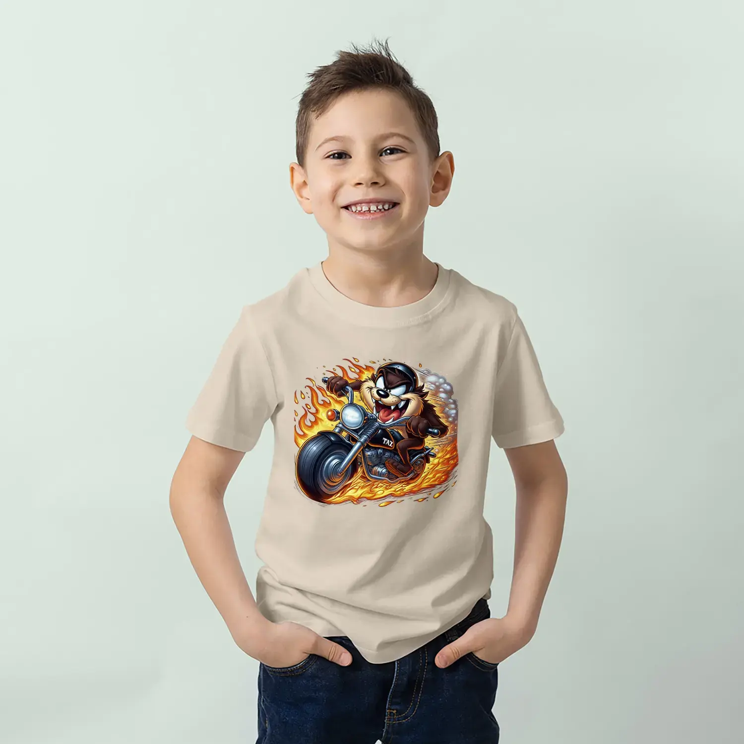 Motorcu Çılgın Karakter Baskılı Erkek Çocuk Tişört