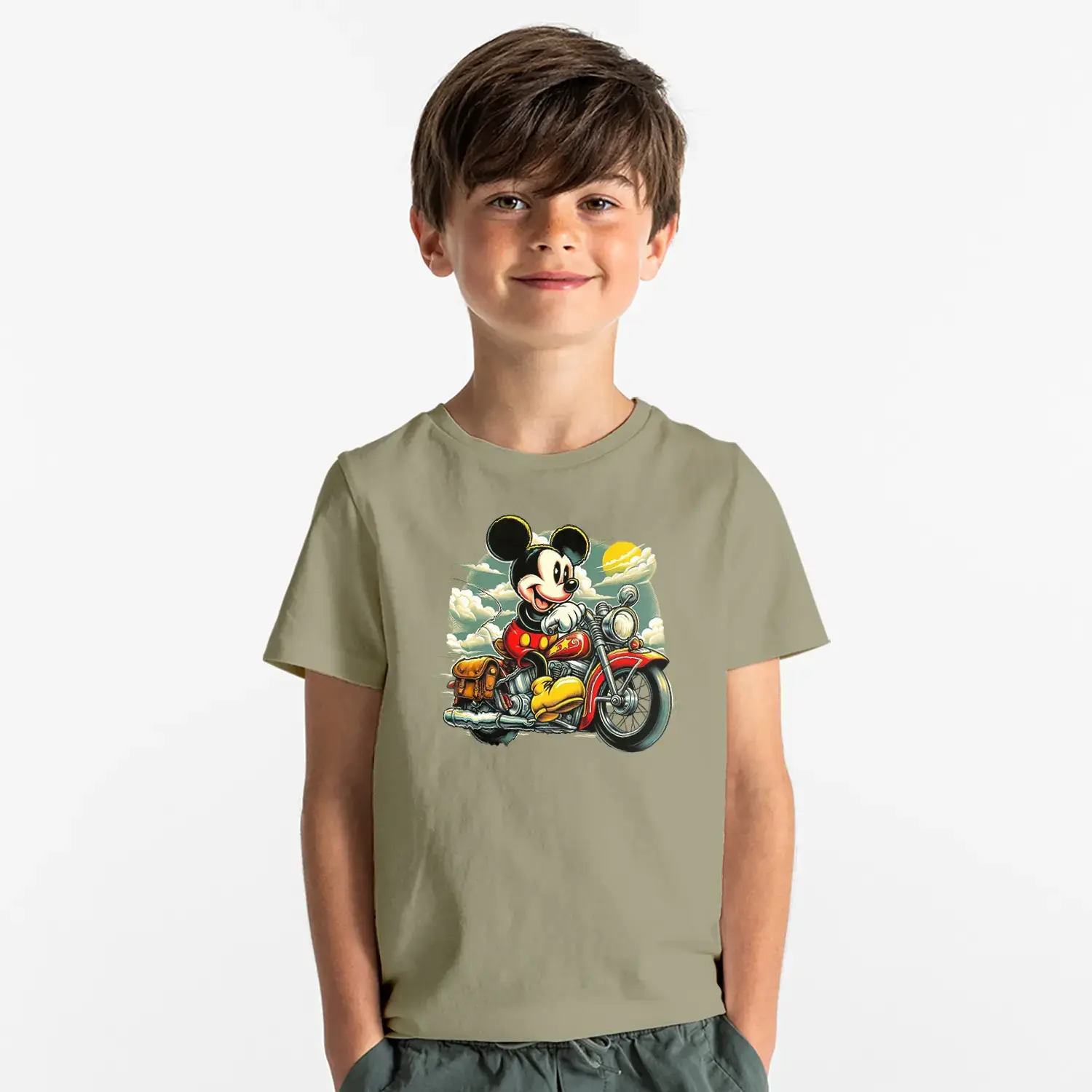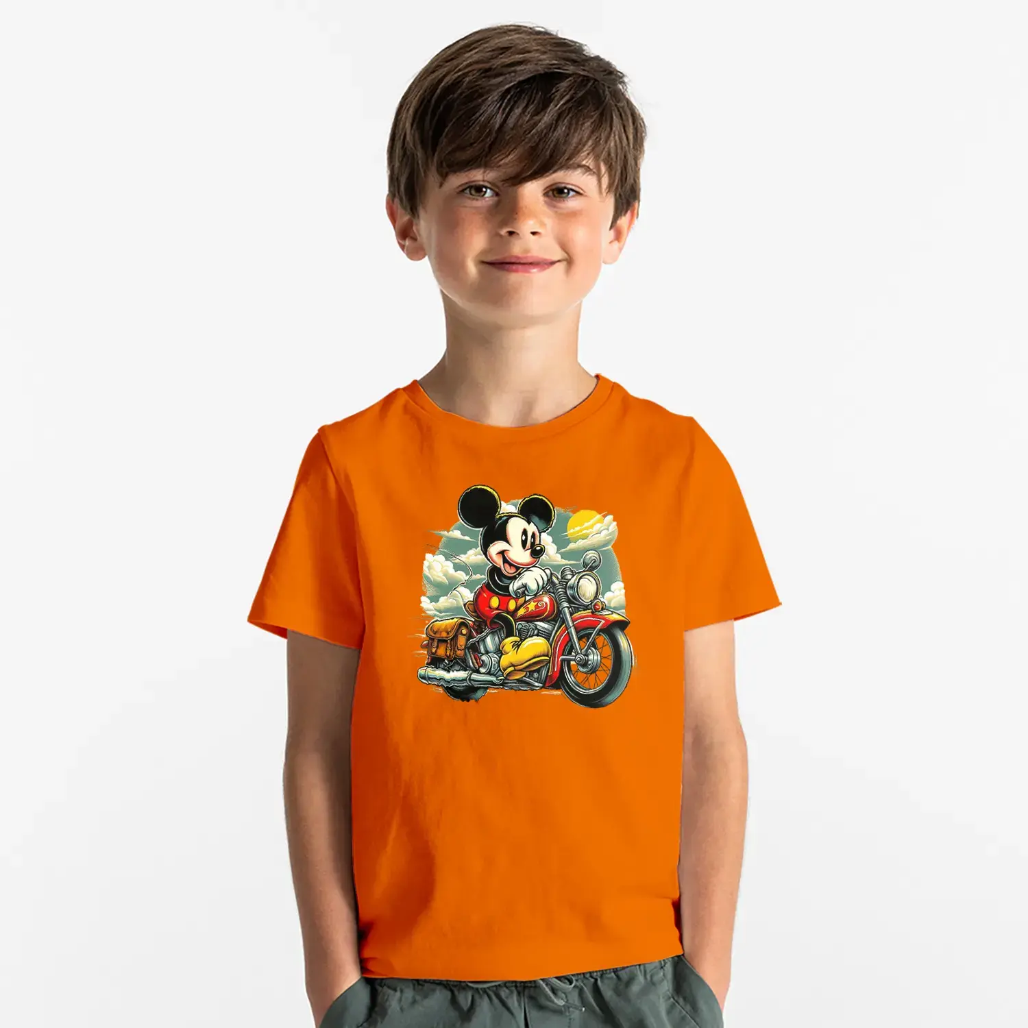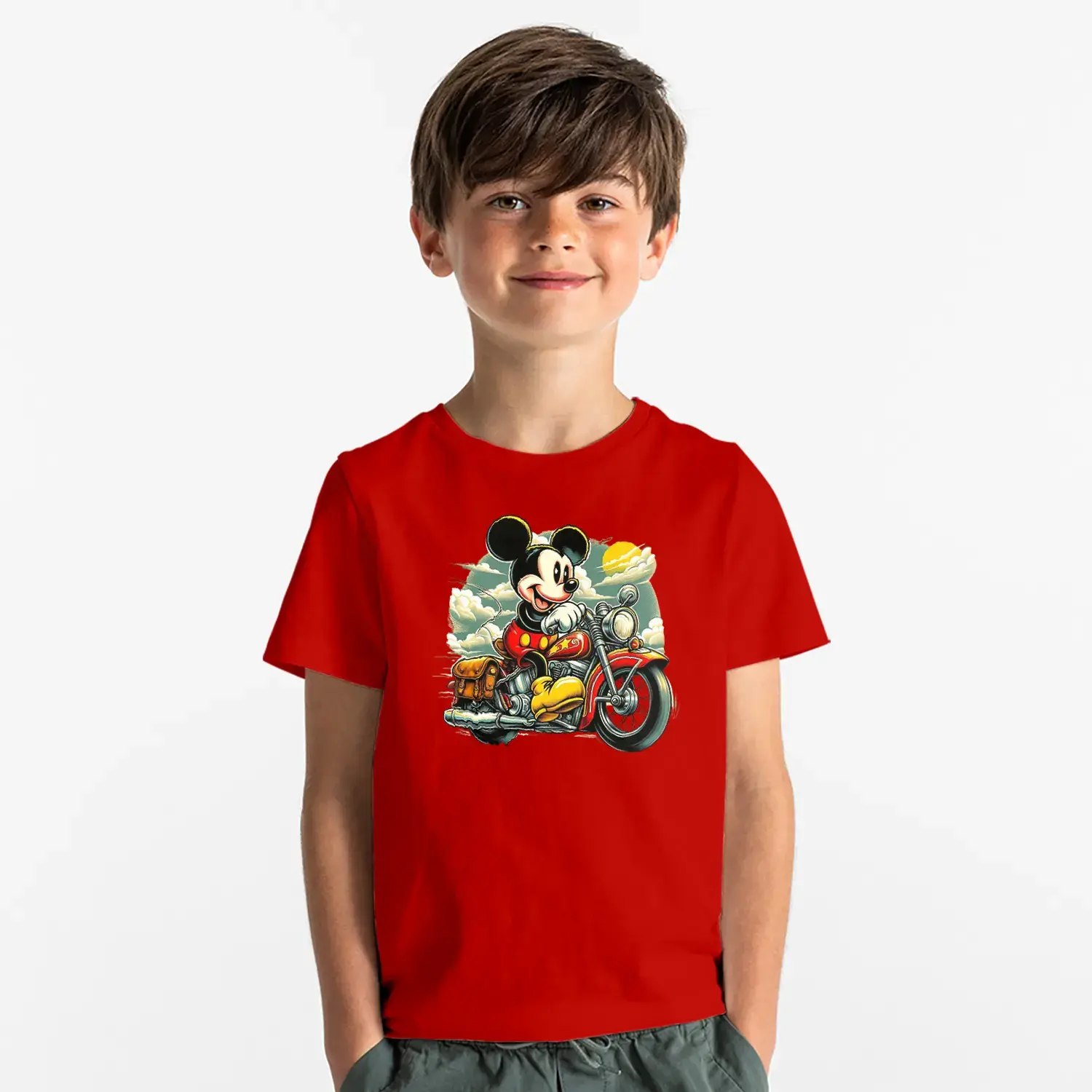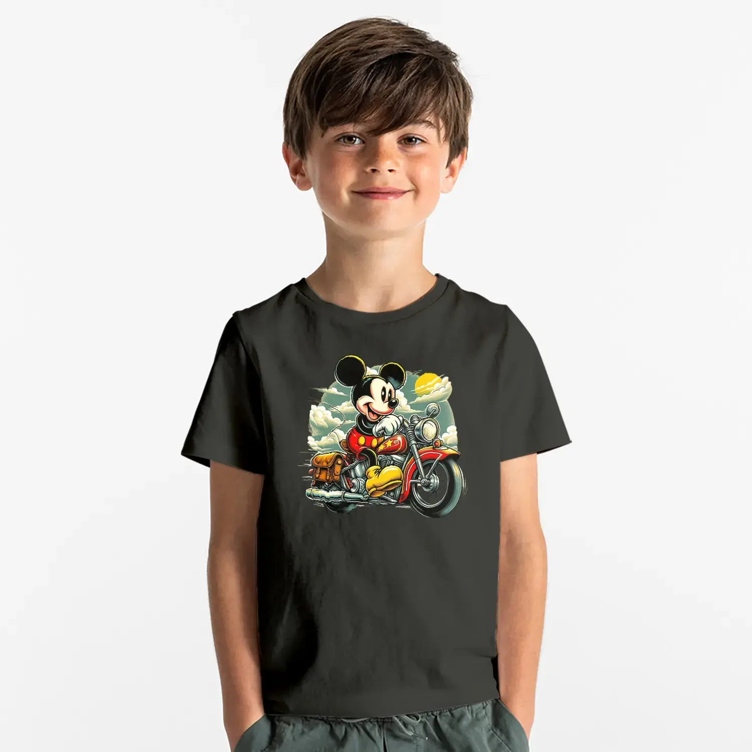 Motorcu Fare Baskılı Erkek Çocuk Tişört