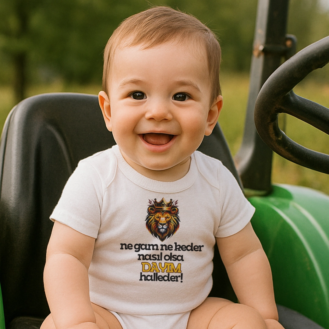 Ne Gam Ne Keder Nasıl Olsa Dayım Halleder Aslanlı Body Baskılı Zıbın