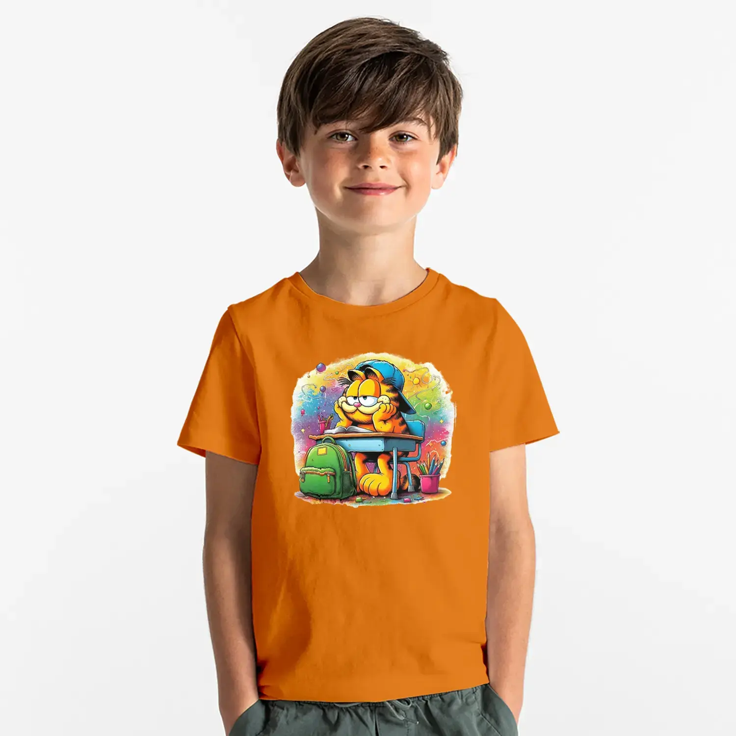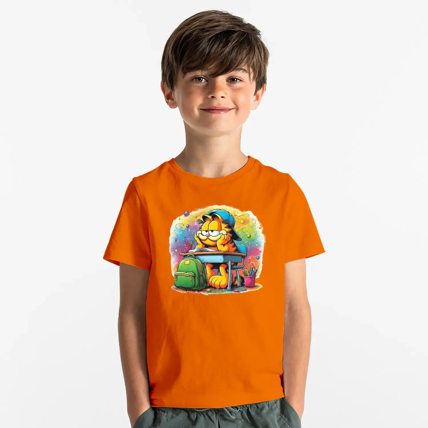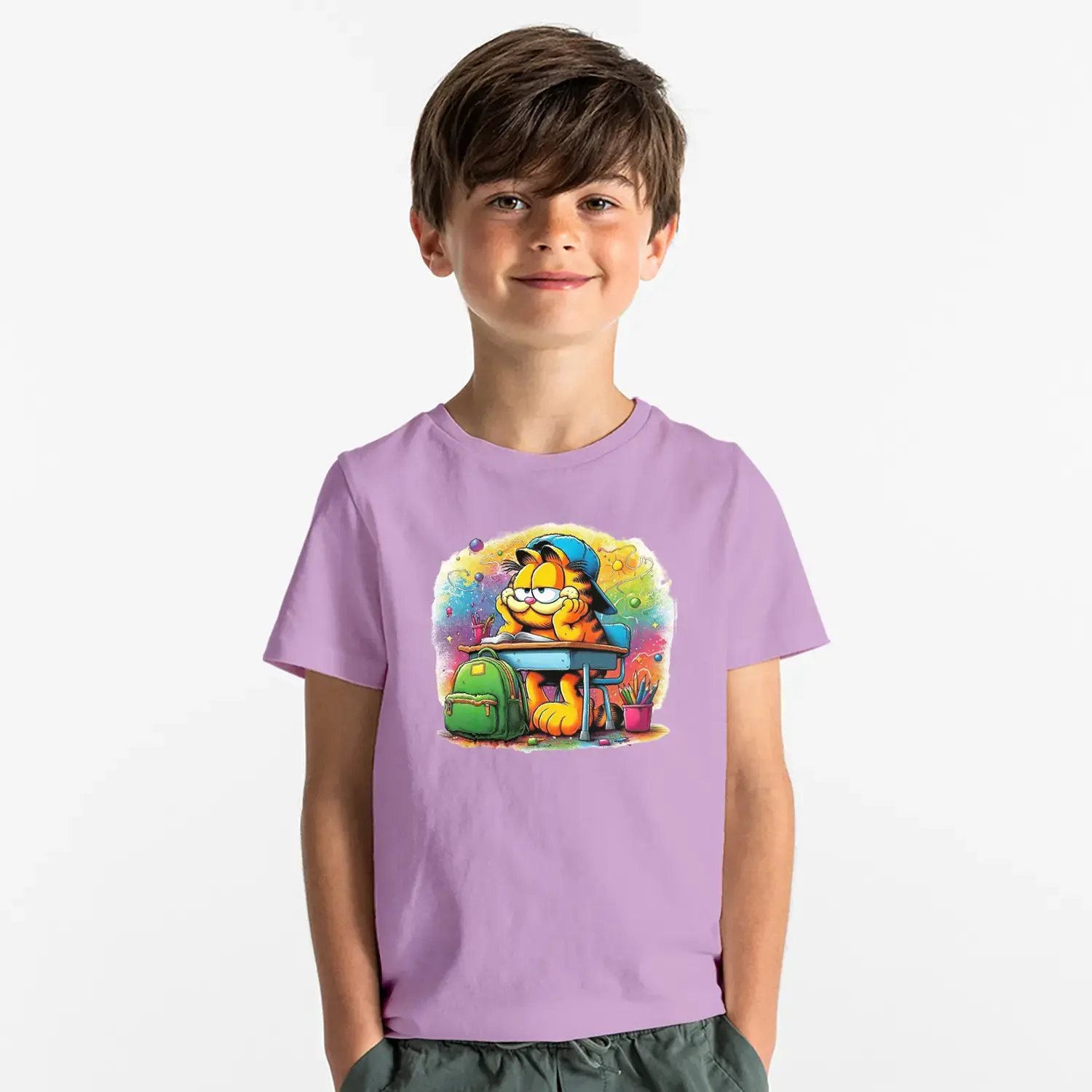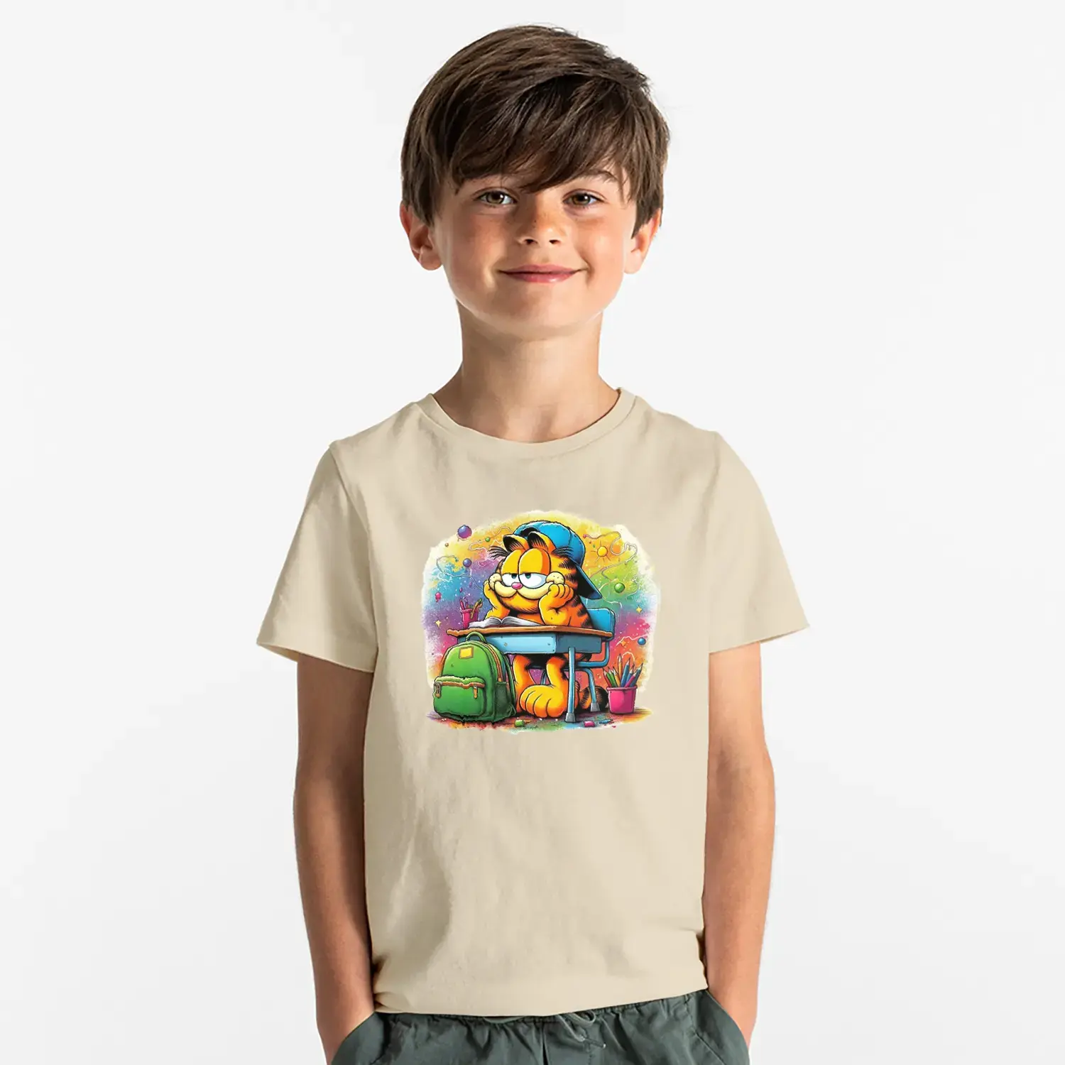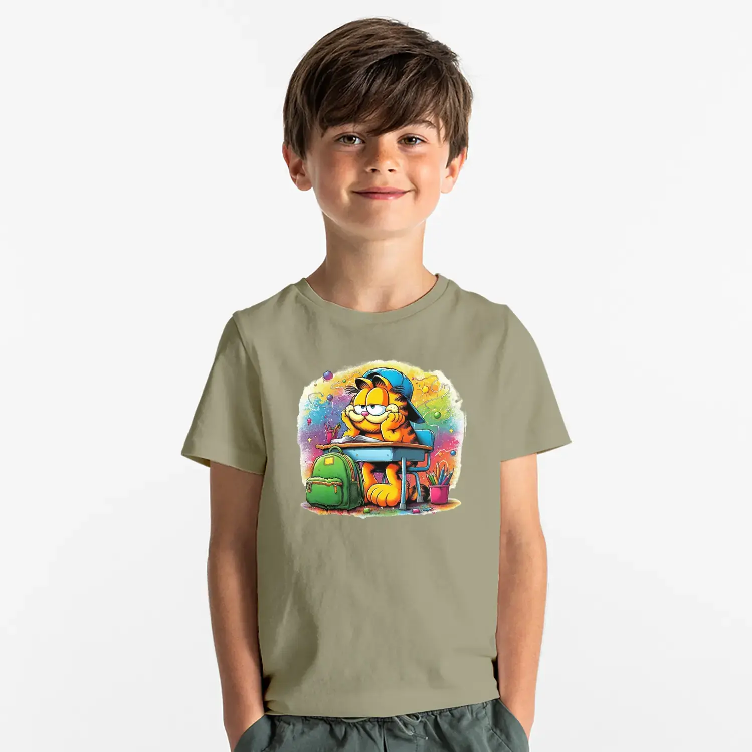 Okul Temalı Sevimli Kedi Çizgi Karakter Baskılı Erkek Çocuk Tişört