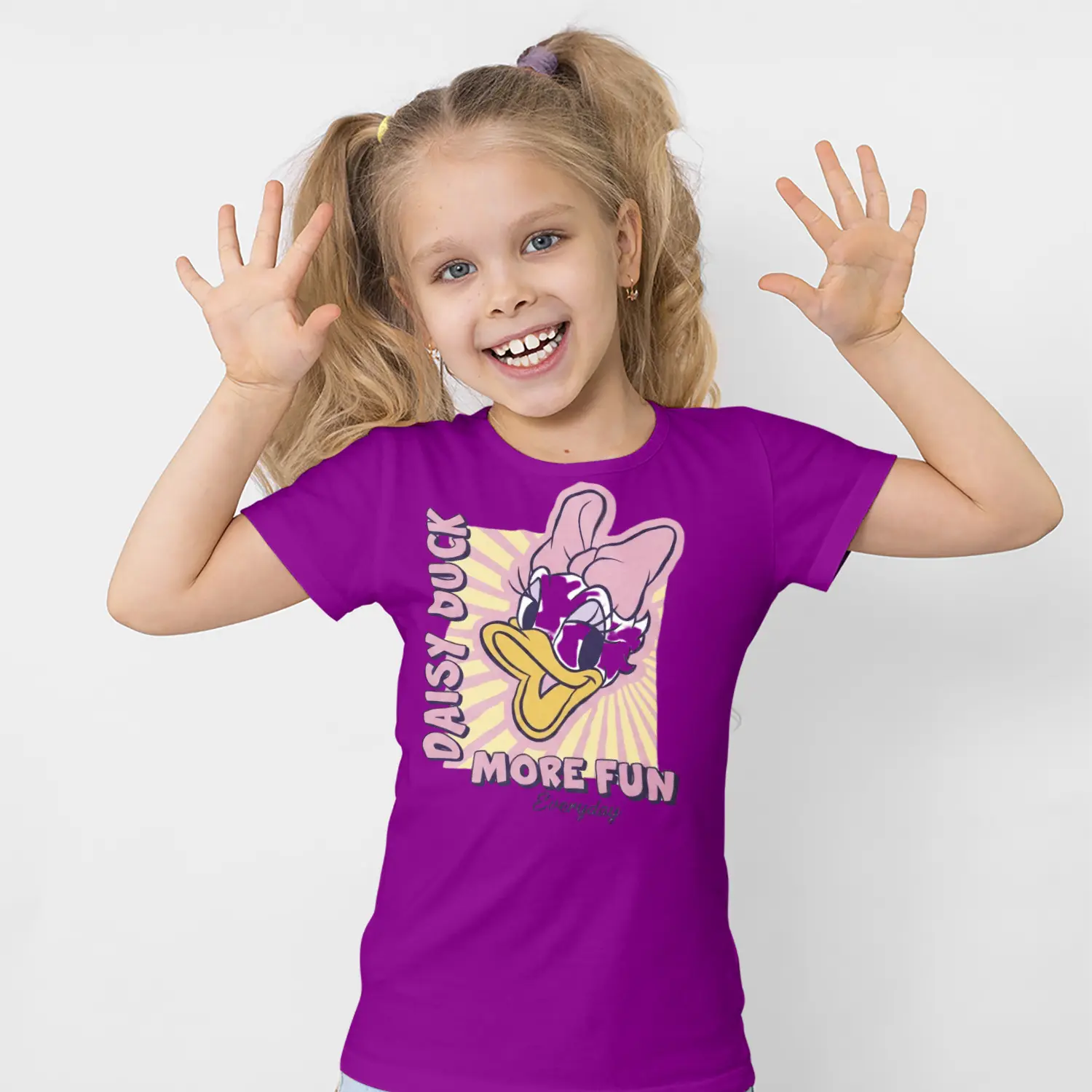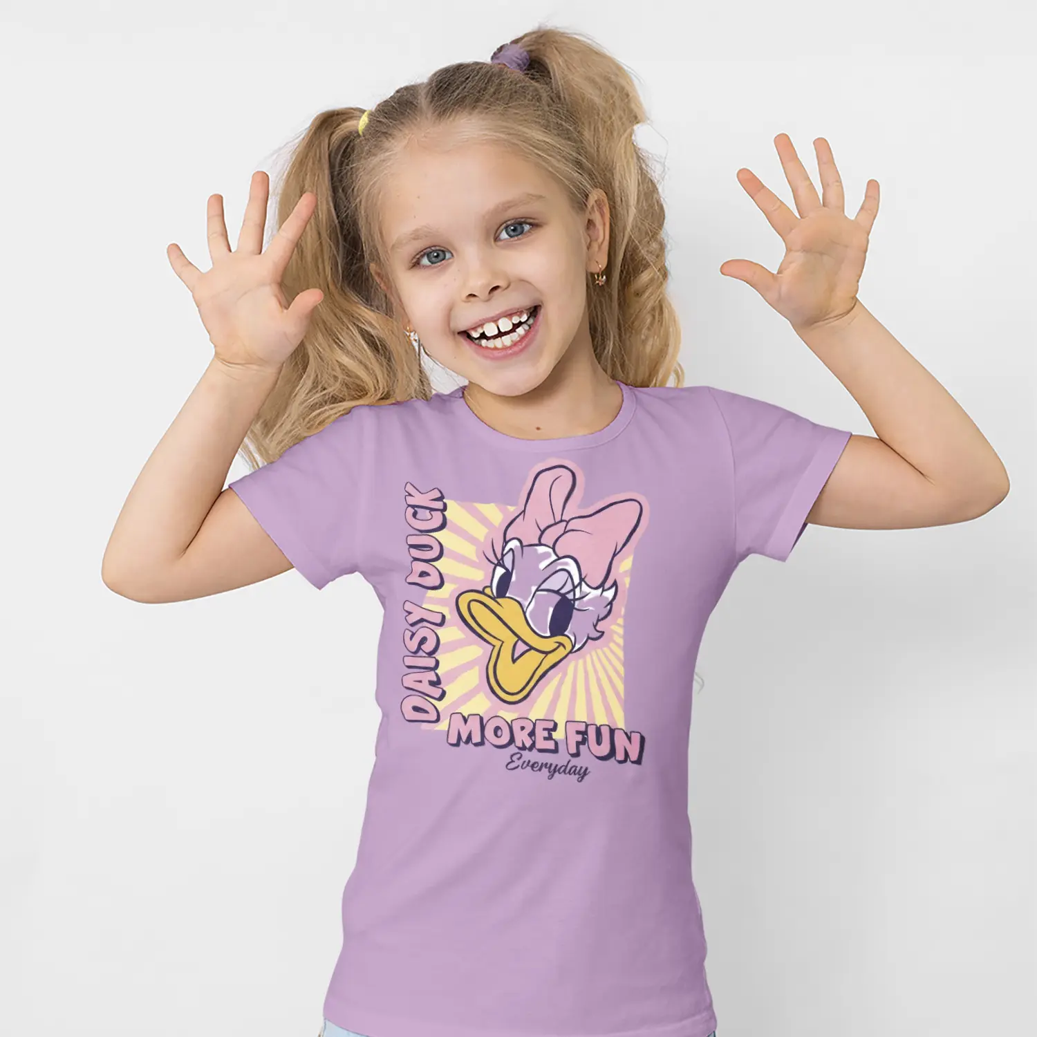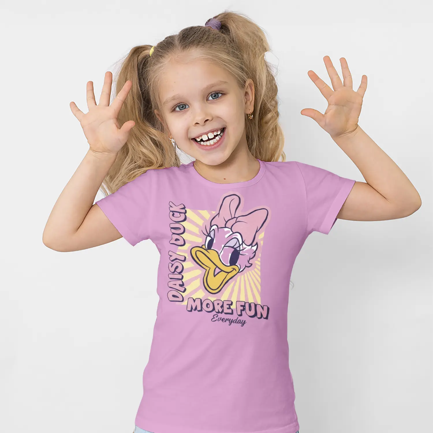Pembe Fiyonklu Ördek Karikatür More Fun Yazılı Baskılı Kız Çocuk Tişörtü