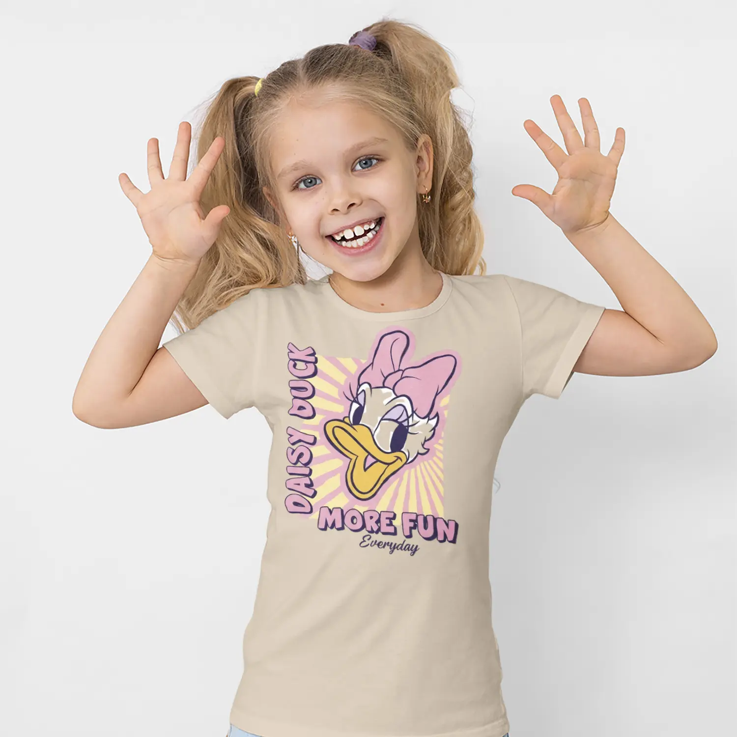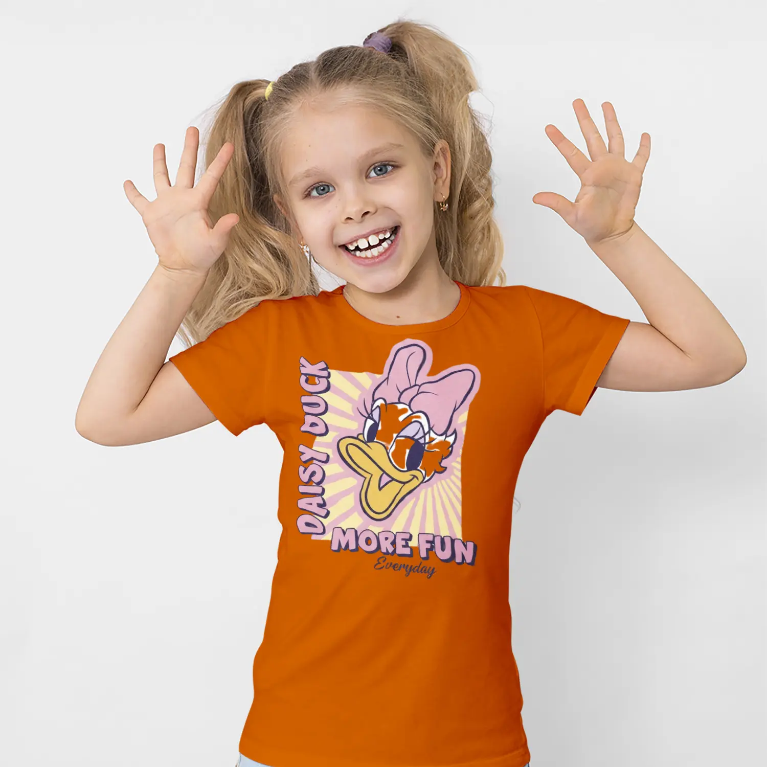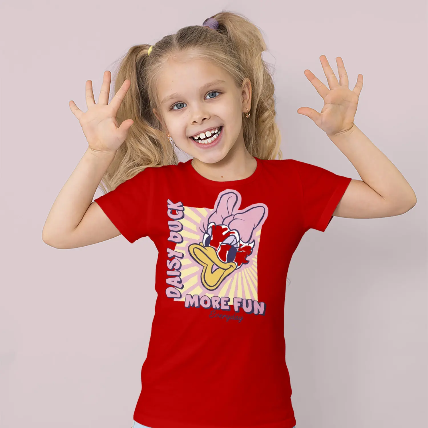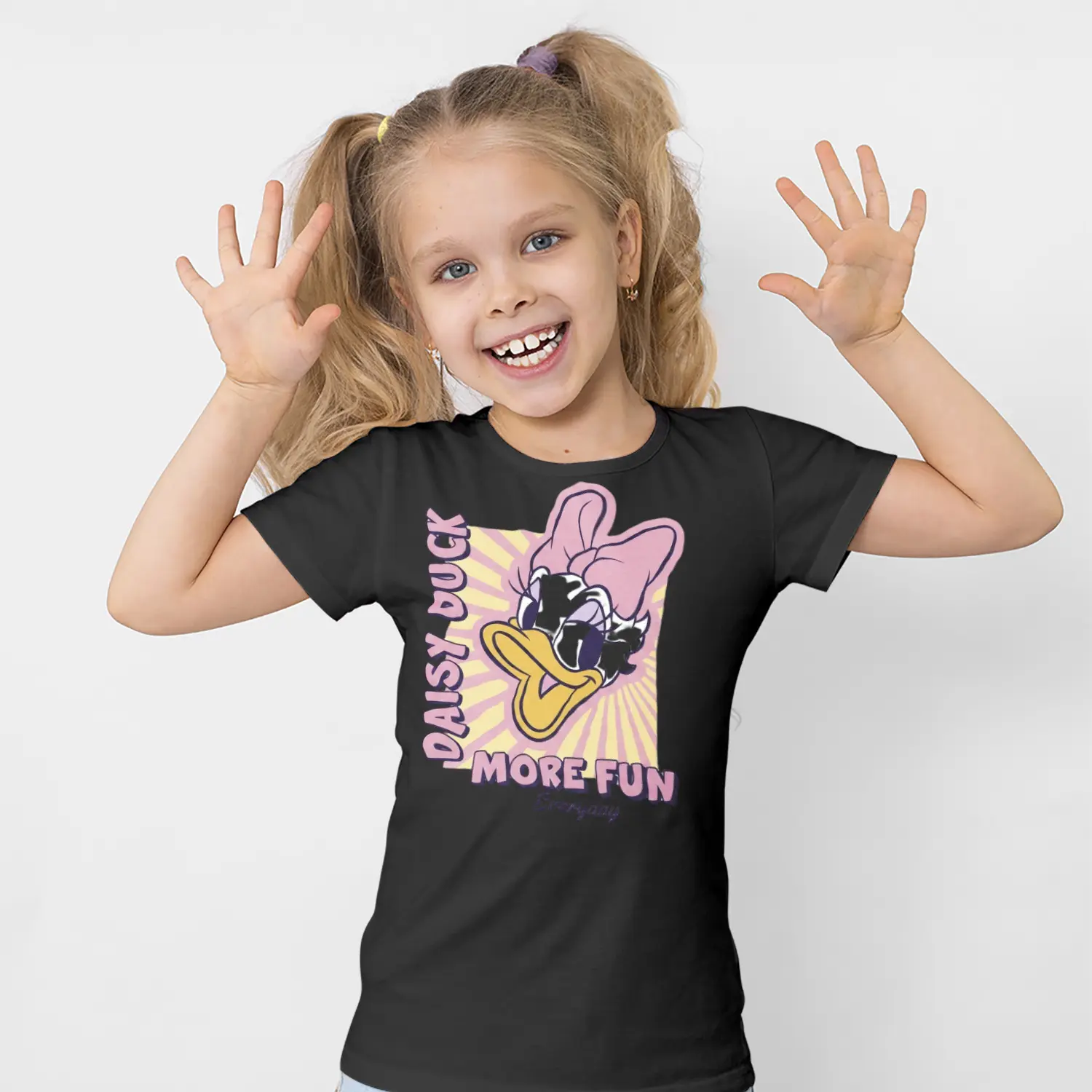Pembe Fiyonklu Ördek Karikatür More Fun Yazılı Baskılı Kız Çocuk Tişörtü